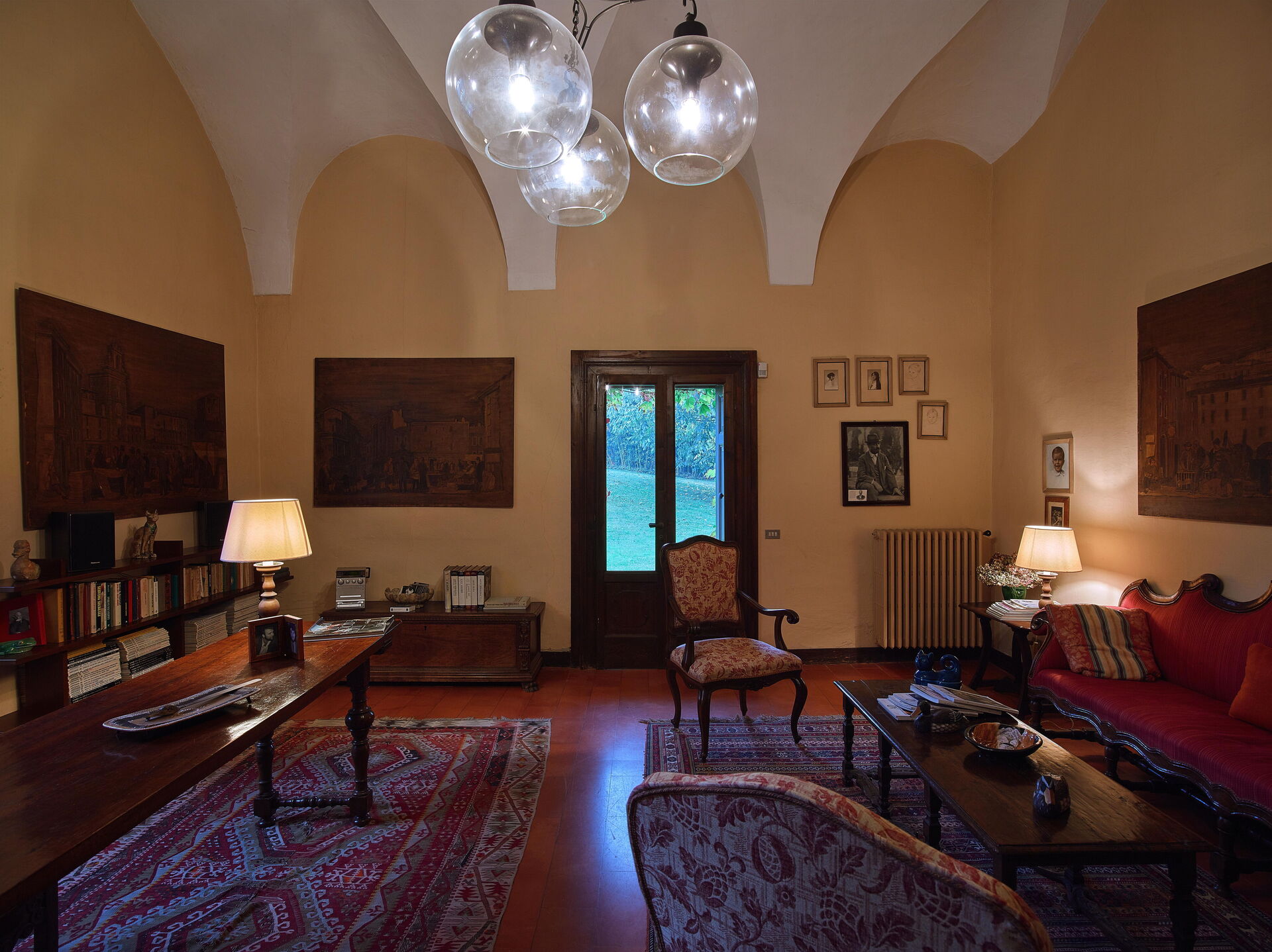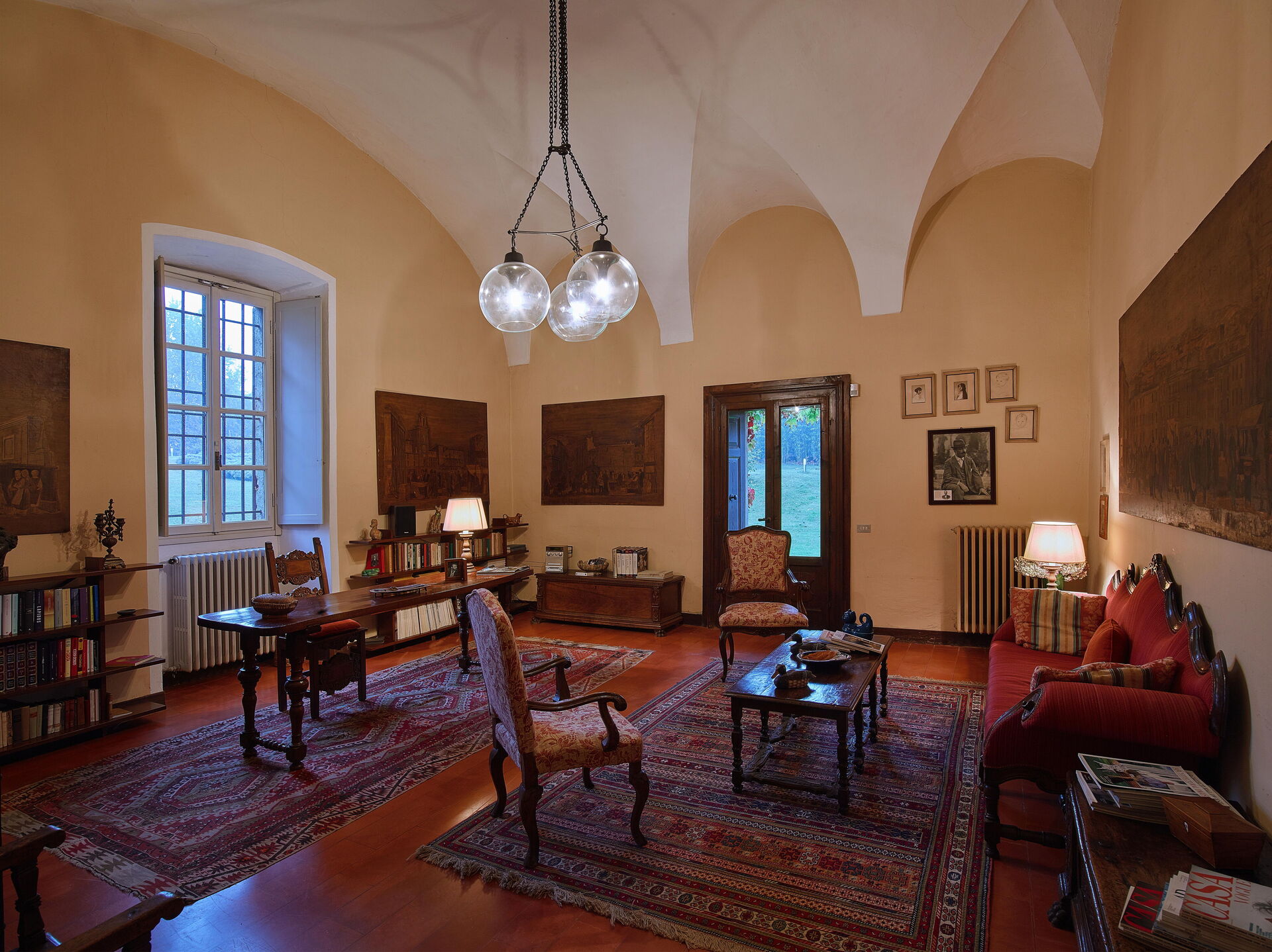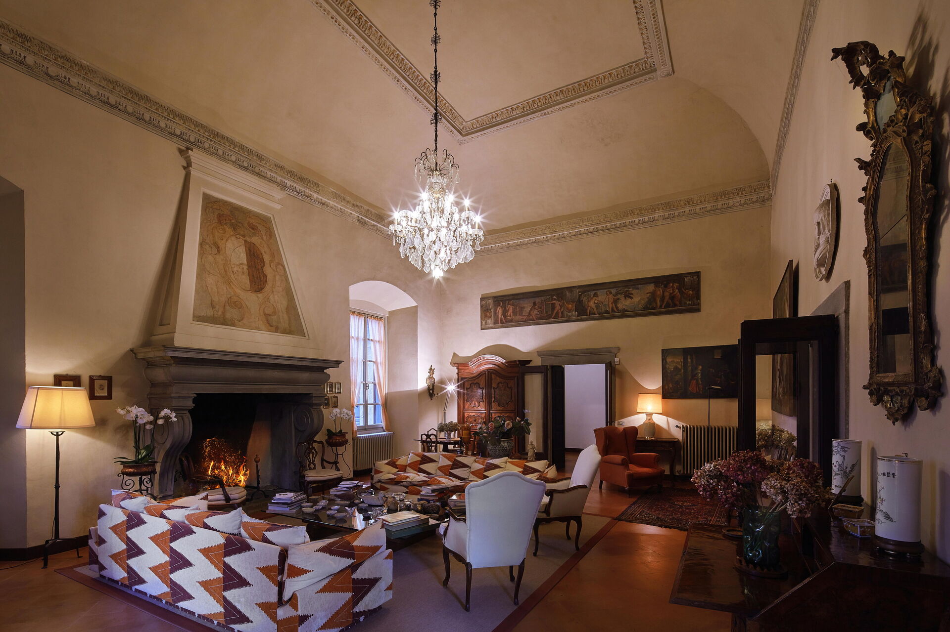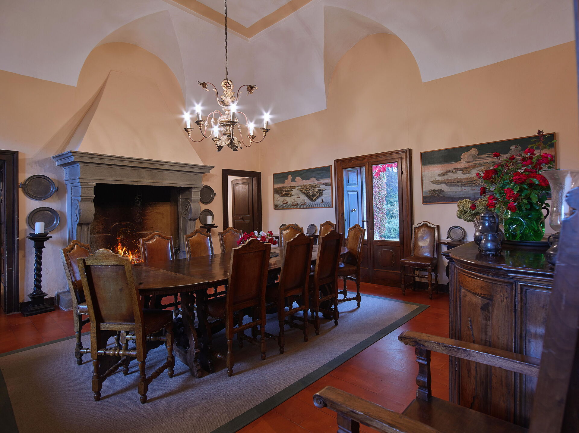 Im Erdgeschoss der Villa Franciacorta befindet sich das Hauptwohnzimmer, das mit Sesseln und Sofas eingerichtet ist, die dem Raum Stil verleihen, und in dem es auch einen Kamin gibt. Man kann sich auch in der Bibliothek entspannen, die mit einem Schreibtisch und einem Sofa ausgestattet ist. Ebenfalls im Erdgeschoss befinden sich zwei weitere Aufenthaltsräume/Arbeitszimmer. Im Erdgeschoss der Villa Franciacorta befinden sich eine große, voll ausgestattete Küche und zwei Esszimmer, die im Stil des 17. Jahrhunderts eingerichtet sind. Außerdem gibt es ein Service-Bad.
