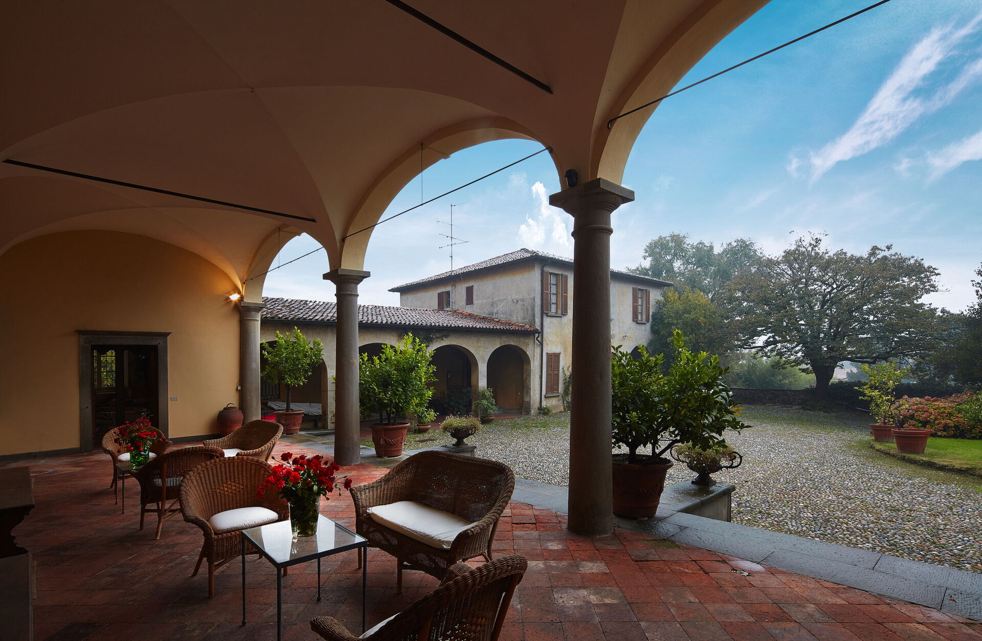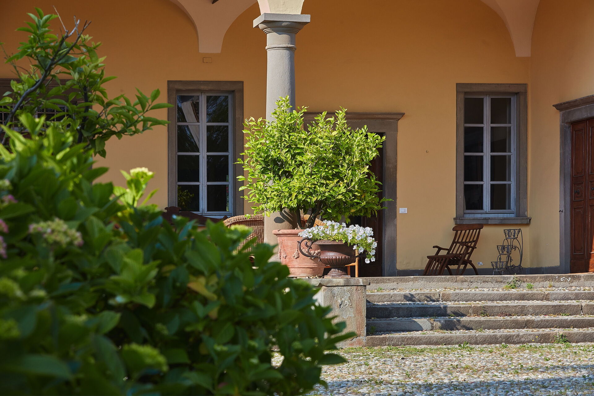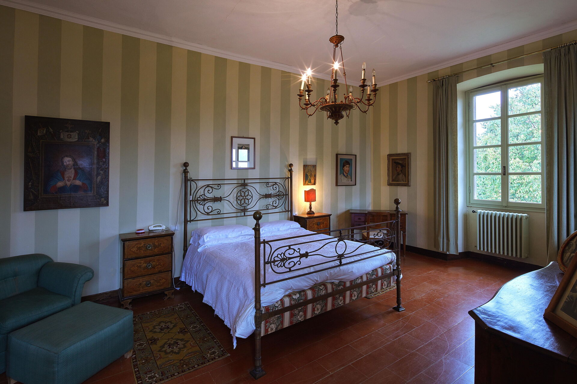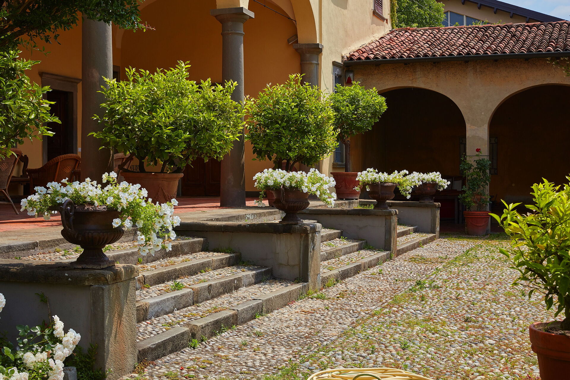 Im Erdgeschoss der Villa Franciacorta befindet sich das Hauptwohnzimmer, das mit Sesseln und Sofas eingerichtet ist, die dem Raum Stil verleihen, und in dem es auch einen Kamin gibt. Man kann sich auch in der Bibliothek entspannen, die mit einem Schreibtisch und einem Sofa ausgestattet ist. Ebenfalls im Erdgeschoss befinden sich zwei weitere Aufenthaltsräume/Arbeitszimmer. Im Erdgeschoss der Villa Franciacorta befinden sich eine große, voll ausgestattete Küche und zwei Esszimmer, die im Stil des 17. Jahrhunderts eingerichtet sind. Außerdem gibt es ein Service-Bad.