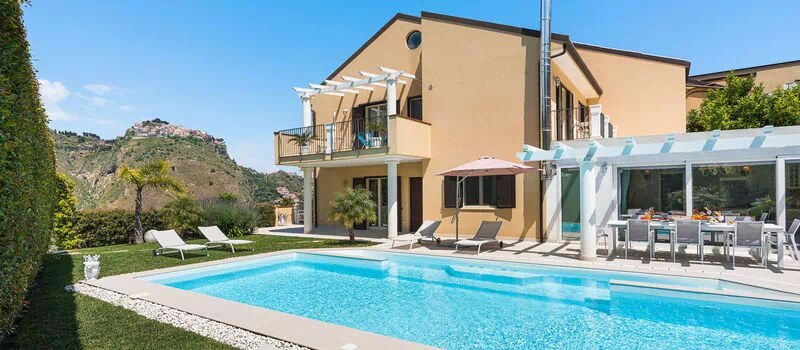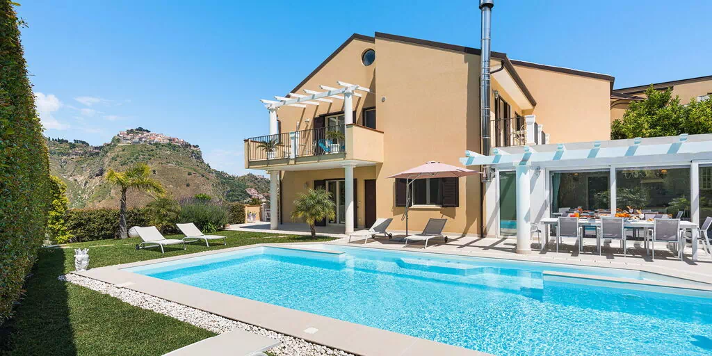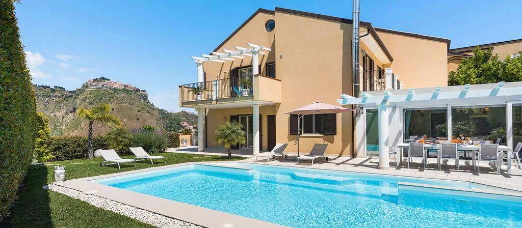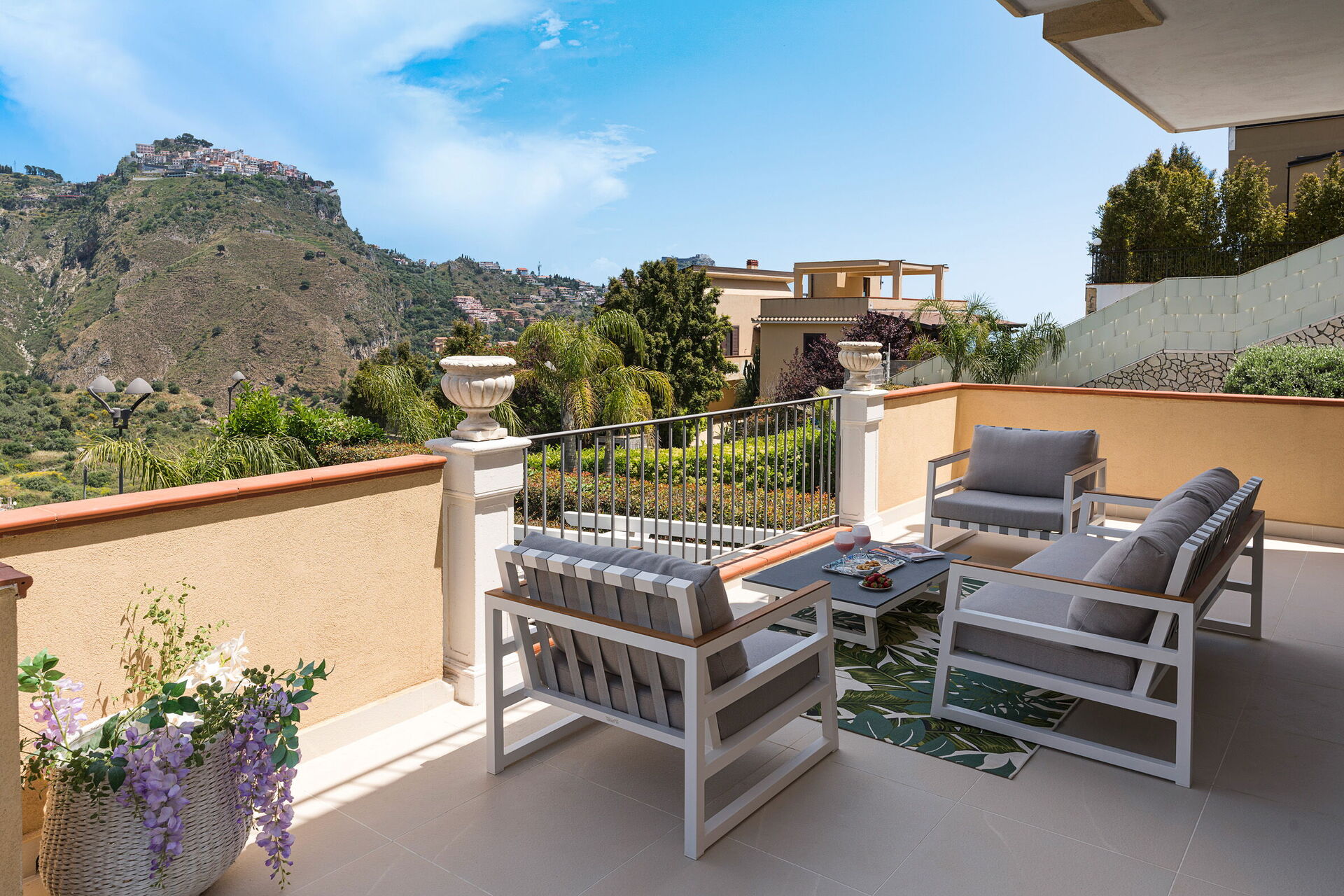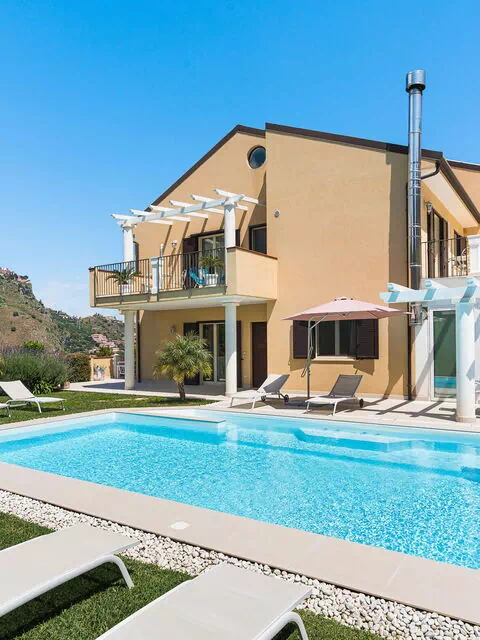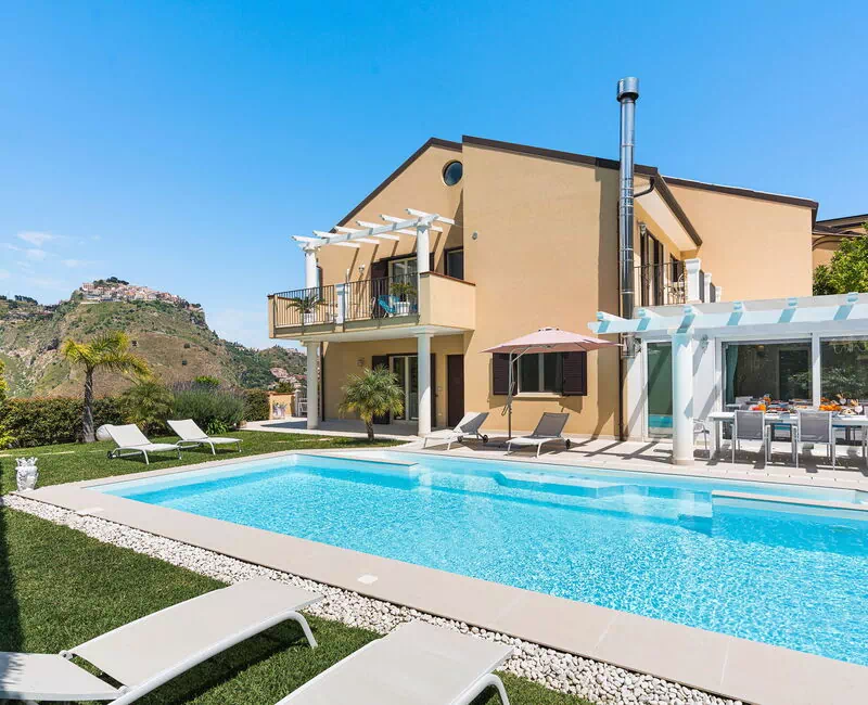 Casamonte ist eine Villa mit einem Salzpool mit Hydromassagebereich (5 x 10 m, Tiefe 1,40 m), gelegen in Panoramalage in einer ruhigen Wohngegend, nur wenige Kilometer vom bezaubernden Touristenort Taormina im Osten Siziliens entfernt. Die Villa erstreckt sich über drei Etagen und ist von Terrassen und einem Garten mit verschiedenen Ecken zum Entspannen im Freien und einem Grillplatz umgeben. Schöne Aussicht auf Taormina und Castelmola. Strategische Lage, die es ermöglicht, das historische Zentrum von Taormina, die Strände von Giardini Naxos, Isola Bella und Mazzarò in nur wenigen Autominuten zu erreichen. Kleine Dörfer an den Hängen des Ätna sowie die Städte Catania, Syrakus und Ortigia sind ebenfalls leicht erreichbar und einen Besuch wert.