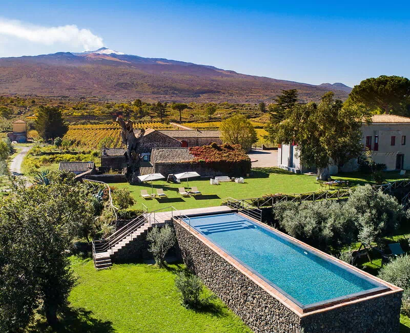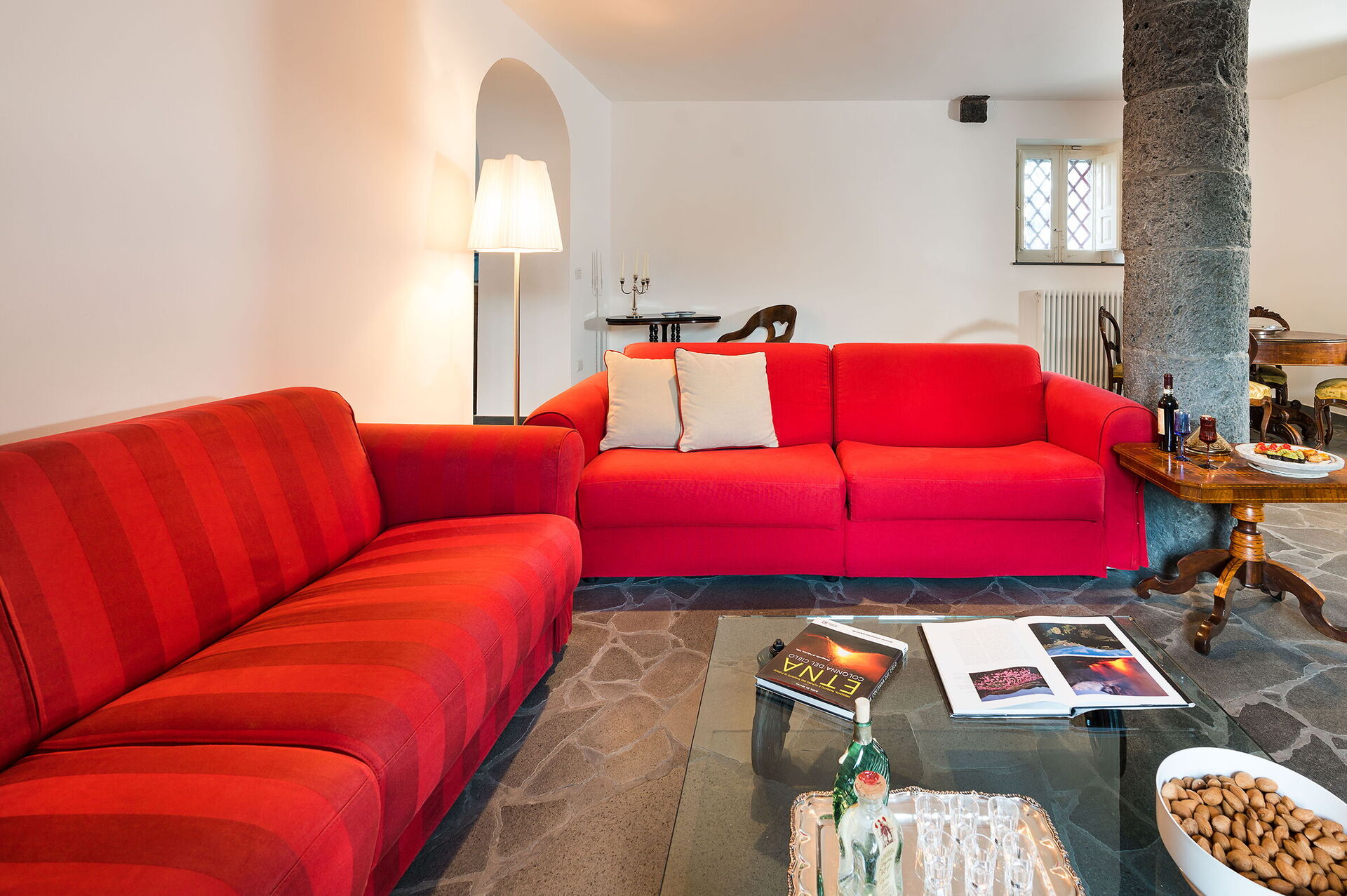 Dimora Vulcano ist ein wunderschöner Landsitz mit einem salzgereinigten Infinity-Pool (5 x 15 m, Tiefe 0,60–1,50 m), eingebettet in die natürliche Schönheit der Umgebung von Castiglione di Sicilia, einem der schönsten Dörfer Italiens. Seine dominante Lage bietet einen spektakulären Blick auf das Alcantara-Flusstal, den Nebrodi-Park und den majestätischen Ätna. Das Anwesen wurde mit großer Sorgfalt renoviert, wobei sein ursprünglicher Charme erhalten blieb und traditionelle Elemente mit modernen Möbeln kombiniert wurden. Der gepflegte Garten mit Rasen ist eine Oase der Ruhe. Idealer Ausgangspunkt für die Erkundung der umliegenden Naturschönheiten, einschließlich des Vulkans Ätna mit seiner einzigartigen Landschaft zwischen Weinbergen, Lavaflüssen und Trockenmauern. Darüber hinaus bietet die Nähe zu malerischen Dörfern wie Castiglione di Sicilia, Randazzo, Linguaglossa und Piedimonte sowie renommierten Küstenorten wie Giardini Naxos, Taormina, Aci Trezza, Aci Castello, Catania und Siracusa ein breites Spektrum an kulturellen Aktivitäten und gastronomische Erlebnisse