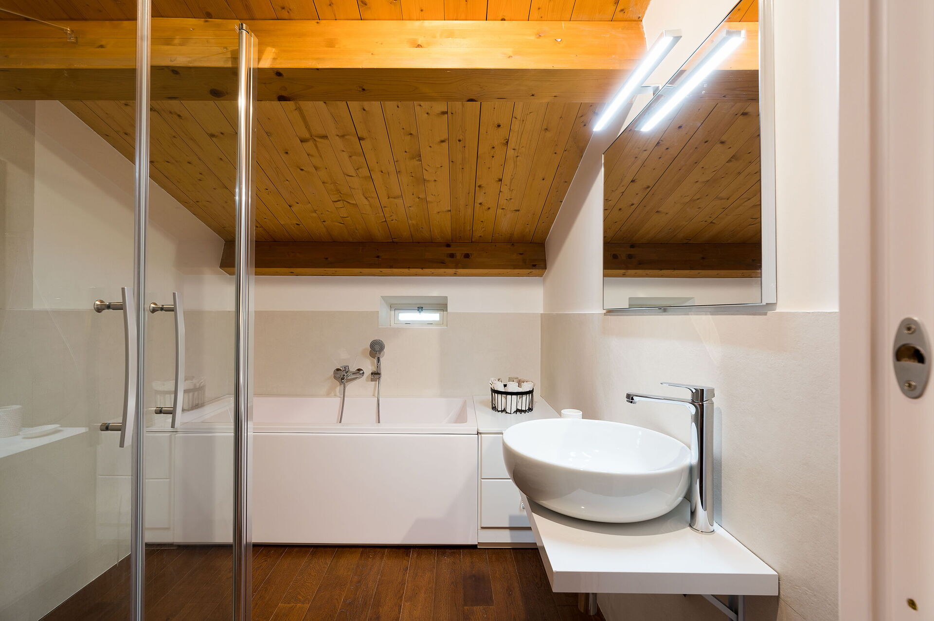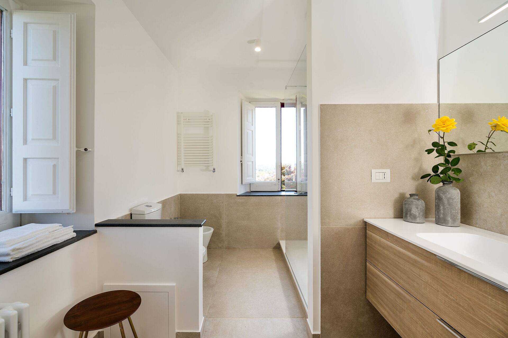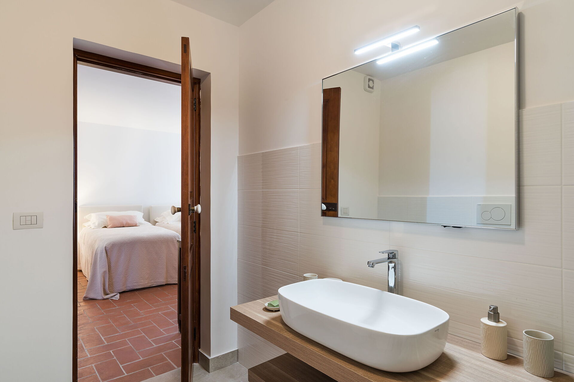 Klimaanlage, Fön, Bidet, Krippe, Dusche, Internet, WiFi Internet, Doppelwaschbecken, Waschmaschine, Doppelbett, Sessel, Ausgang auf die Terrasse, WC