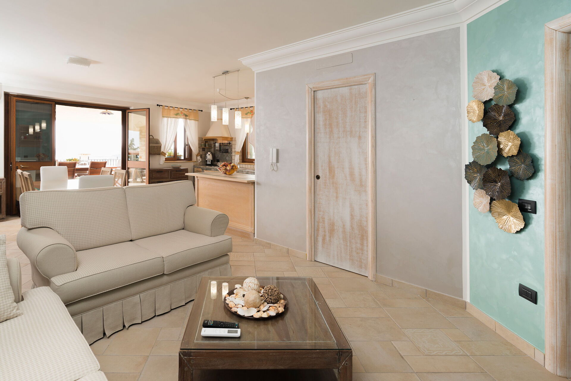 Klimaanlage, gut ausgestattete Küche, 2 Sofa, Bügeleisen, Ofen, Tiefkühler, Kühlschrank, Internet, WiFi Internet, Spülmaschine, Italienische Kaffeemaschine, Amerikanische Kaffeemaschine, Herd, Rauchmelder, Kinderhochstuhl, Esstisch, TV, Toaster, Ausgang auf die Terrasse, Fliegengitter