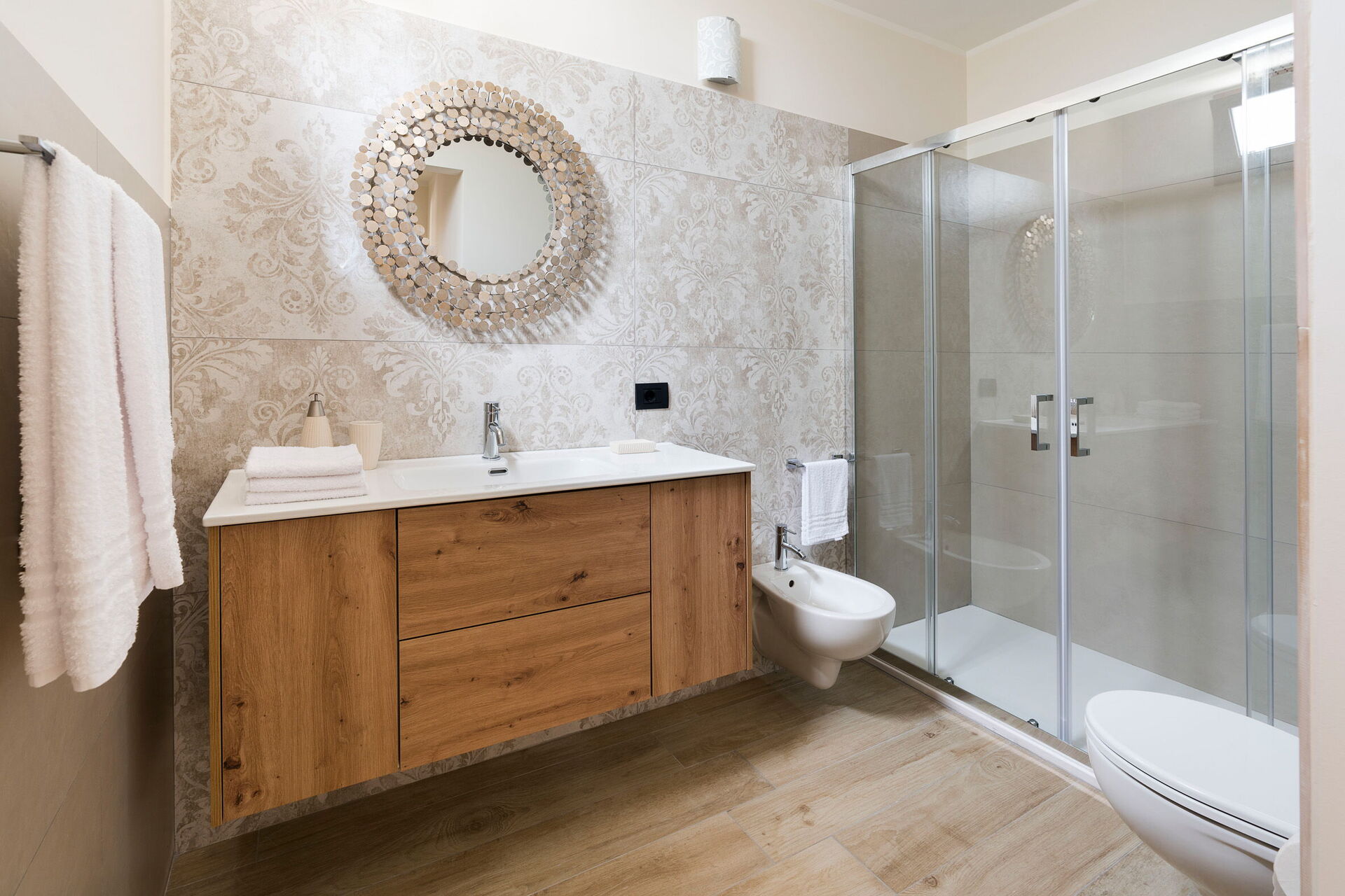 Klimaanlage, Fön, Bidet, Krippe, Dusche, Internet, WiFi Internet, Doppelwaschbecken, Waschmaschine, Doppelbett, TV, Ausgang auf die Terrasse, WC, Fliegengitter