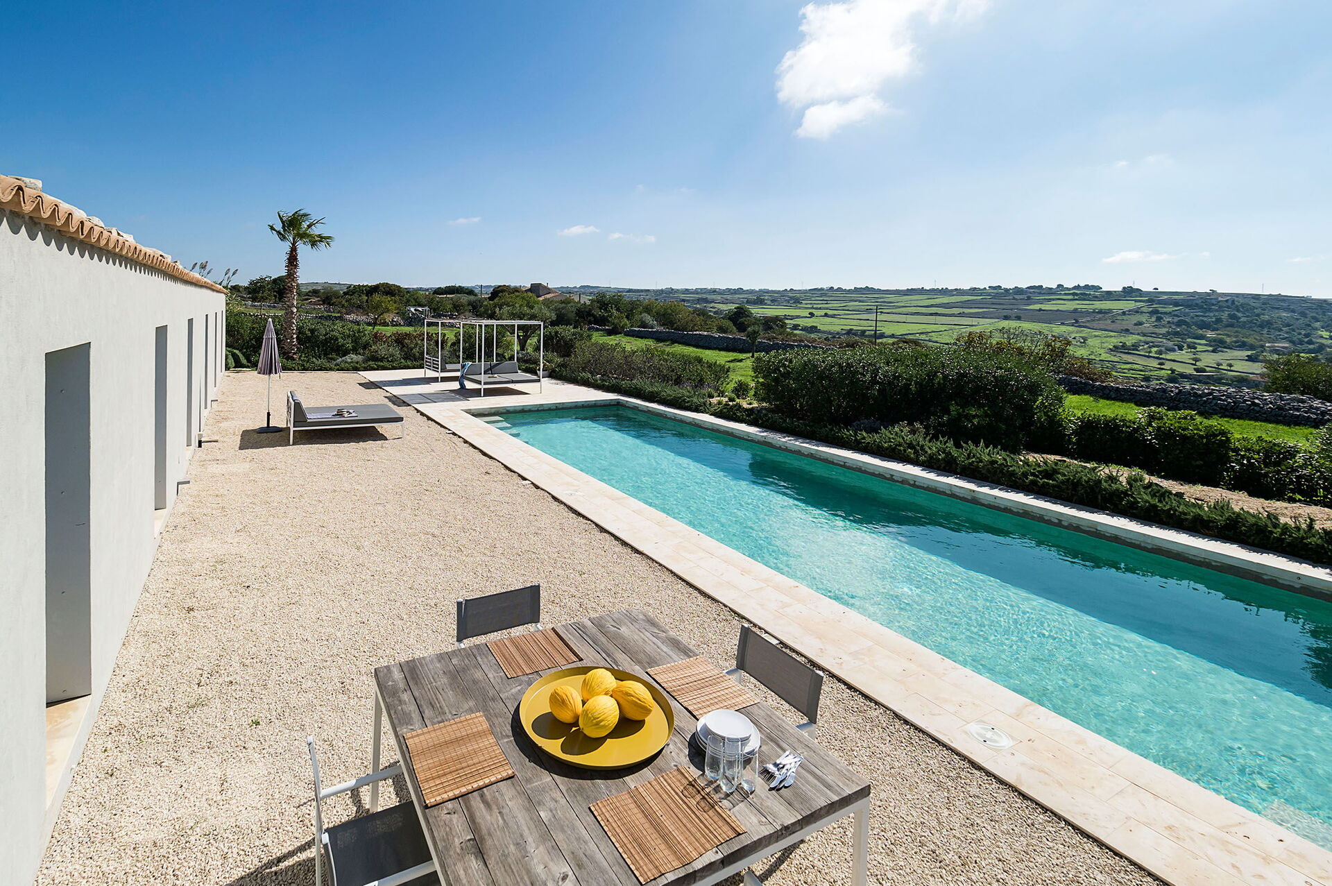 Villa Carmelita ist eine prächtige Residenz mit einem Salzpool (5 x 14 m, Tiefe 1,50 m), eingebettet in die friedliche Landschaft von Ragusa, in der Nähe des eindrucksvollen Schlosses Donnafugata im Südosten Siziliens. Das Haus erstreckt sich über das Erdgeschoss und bietet verschiedene moderne Annehmlichkeiten. Sein nach außen offenes Design mit einem gepflegten umliegenden Garten und einem privaten Swimmingpool bietet eine einladende und entspannende Atmosphäre. Dank der strategischen Lage sind die Barockstädte des Val di Noto die zum UNESCO-Weltkulturerbe gehören und für ihre historische und künstlerische Architektur bekannt sind, bequem erreichbar. Darüber hinaus bietet die Nähe zu den Stränden von Punta Secca, Marina di Ragusa, Donnalucata und Sampieri die Möglichkeit, das Meer und die natürliche Schönheit der Gegend zu genießen.