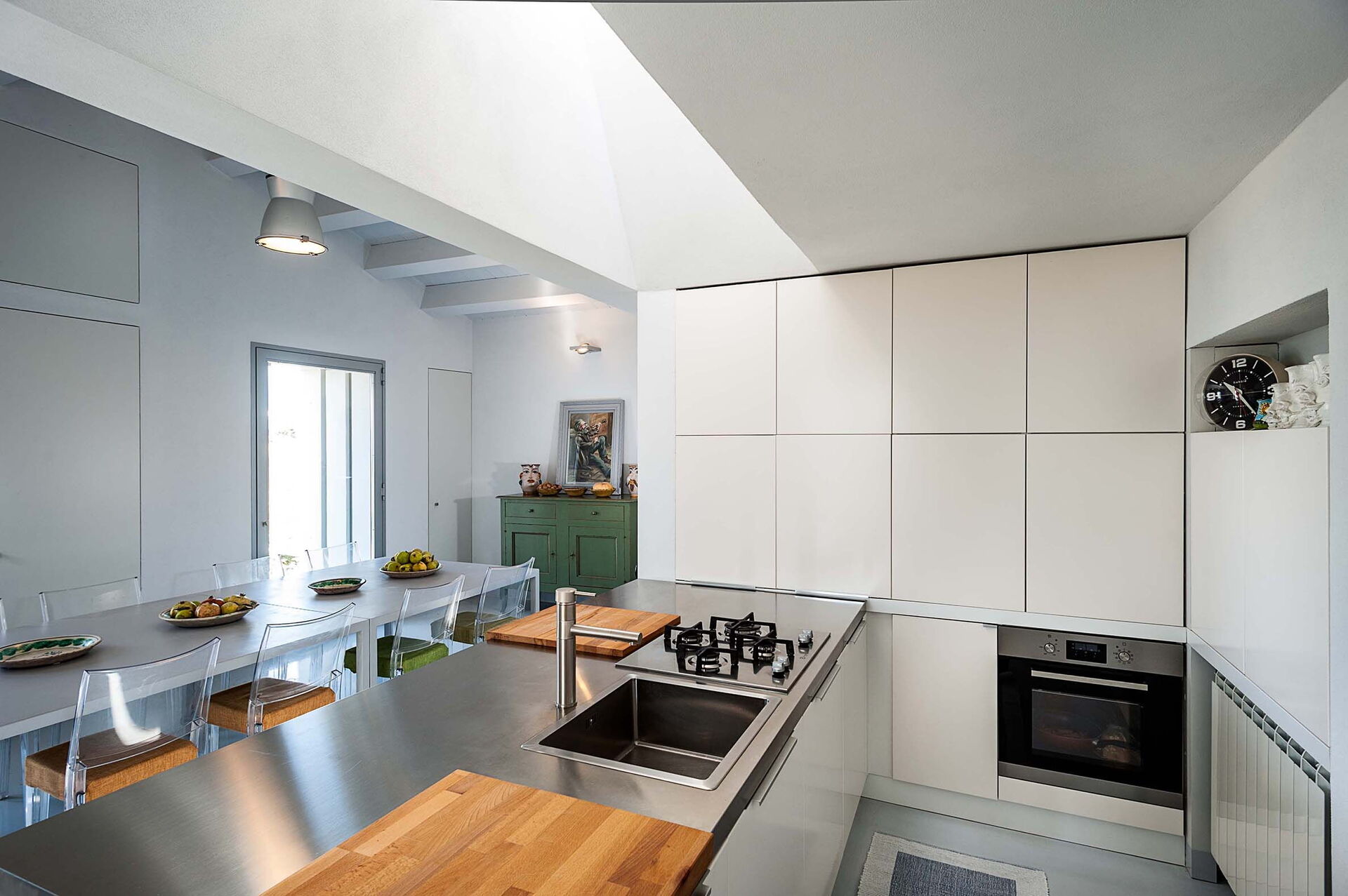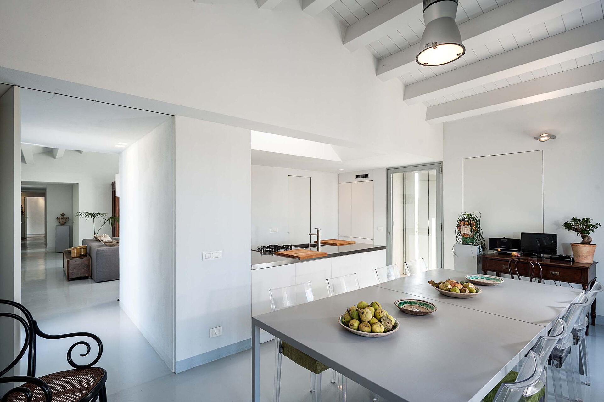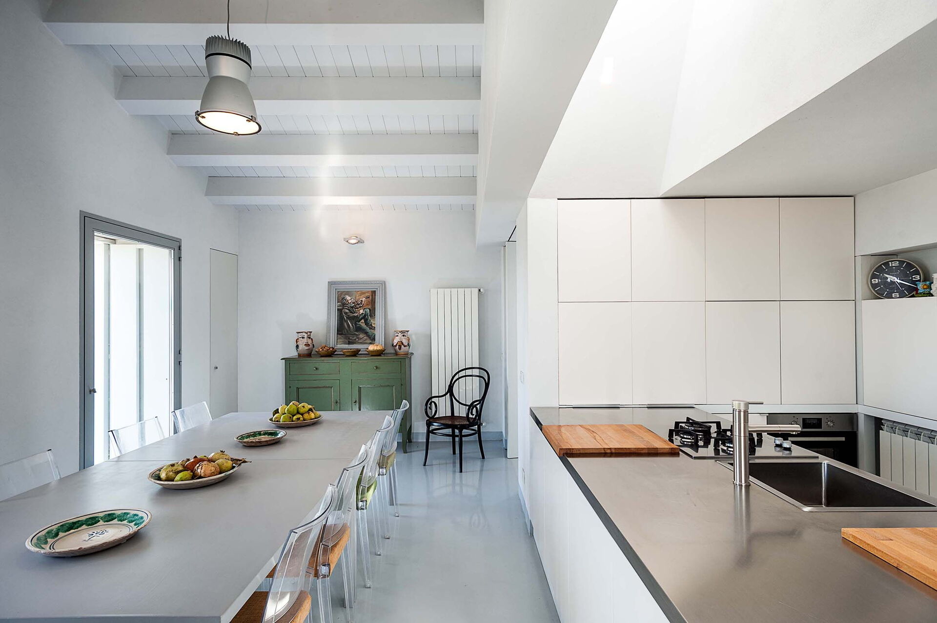 Internet, WiFi Internet, Deckenventilator, gut ausgestattete Küche, Bügeleisen, Ofen, Tiefkühler, Kühlschrank, Spülmaschine, Italienische Kaffeemaschine, Amerikanische Kaffeemaschine, Mikrowelle, Herd, CO2 Detektor, Rauchmelder, Kinderhochstuhl, Toaster, Deckenventilator