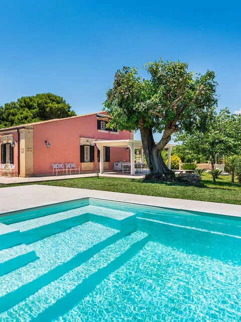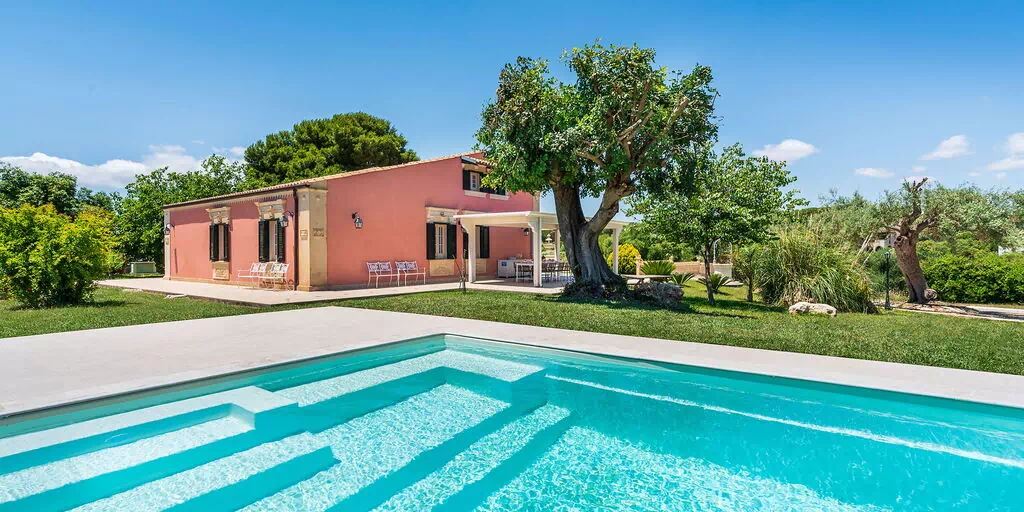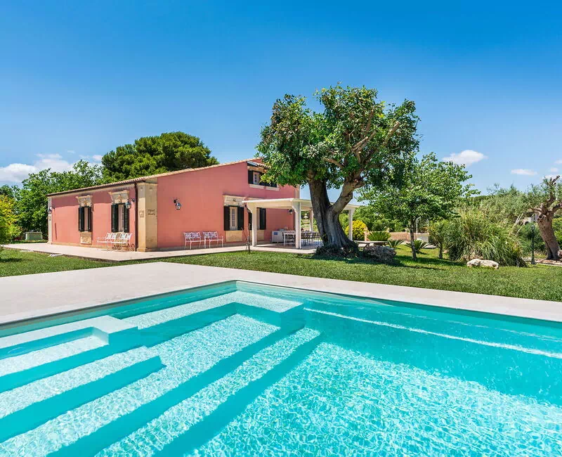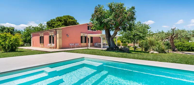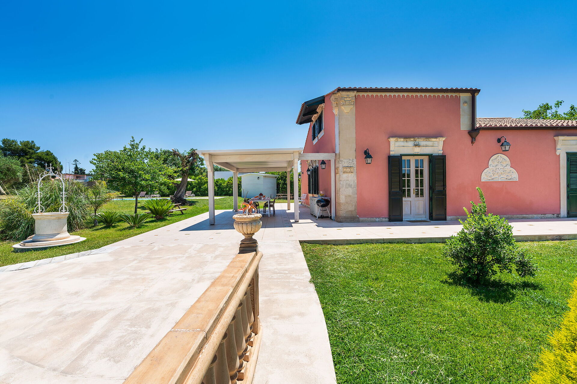 Casa Desiderio ist eine elegante Residenz mit einem schönen privaten Swimmingpool (3,70 x 9,50 m, Tiefe 1,40 m) in der Nähe des Sandstrandes von Fontane Bianche, einem bekannten Badeort südlich von Syrakus auf Sizilien. Die Villa erstreckt sich über 2 Etagen und verfügt über einen großen, gepflegten Garten mit gut ausgestatteten Terrassen zum Entspannen und einem Grill für Mahlzeiten im Freien mit Blick auf die umliegende Landschaft. Ideale Lage für einen erholsamen Strandurlaub, nur 300 m vom Meer entfernt und zu Fuß erreichbar. Auch ein praktischer Ausgangspunkt für den Besuch anderer schöner Orte im Osten Siziliens, darunter Syrakus, Noto, Modica, Ragusa Ibla, Scicli, das Naturschutzgebiet Vendicari, Portopalo, Marzamemi, Taormina und der Ätna-Park mit seinen wunderschönen Dörfern.
