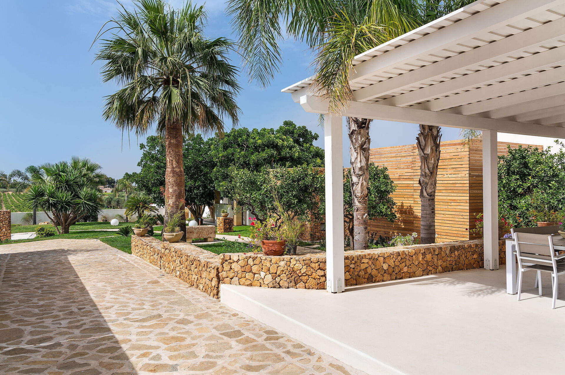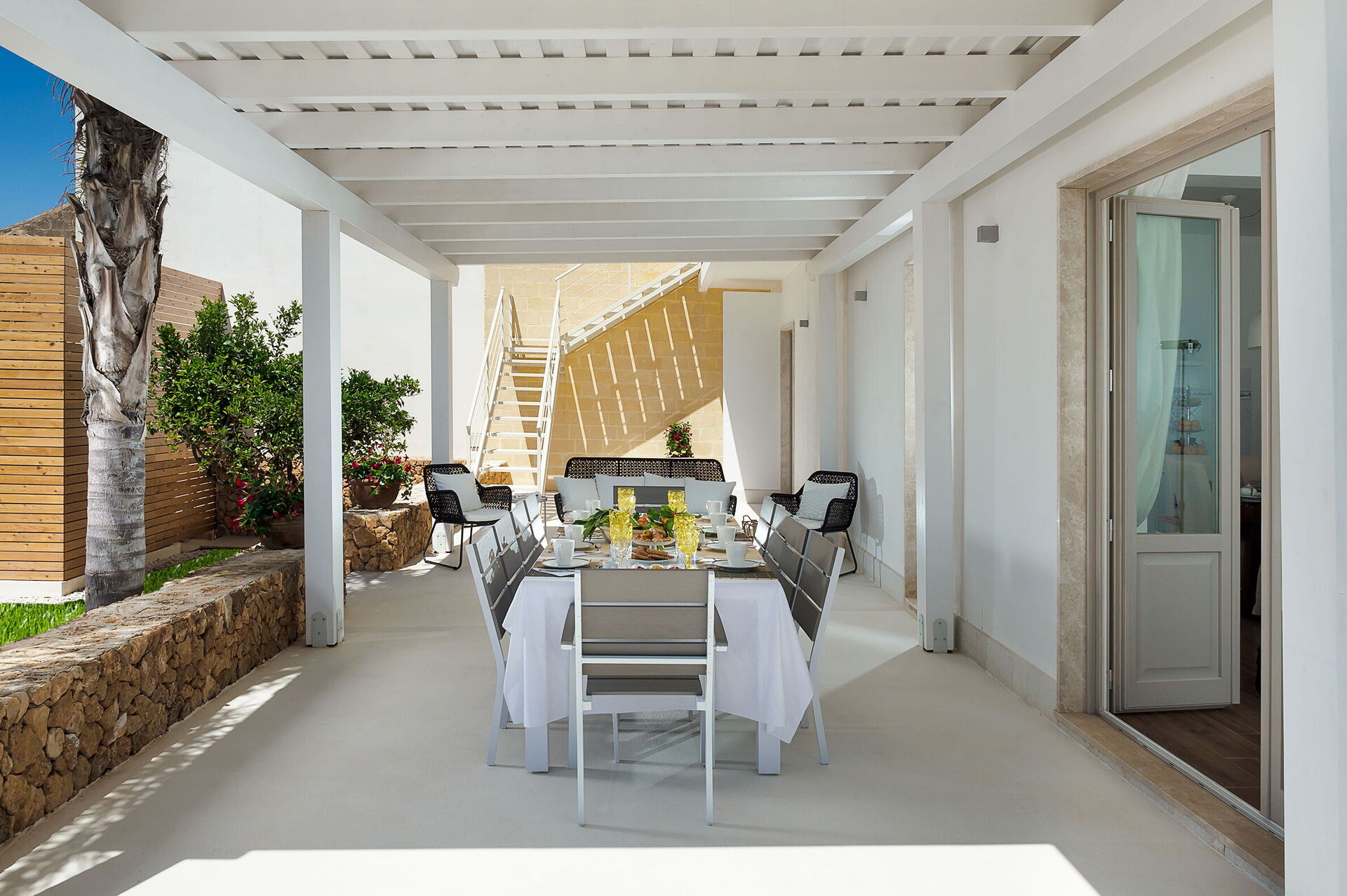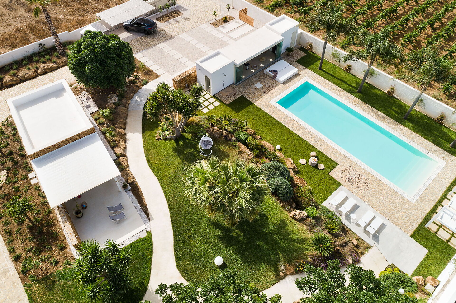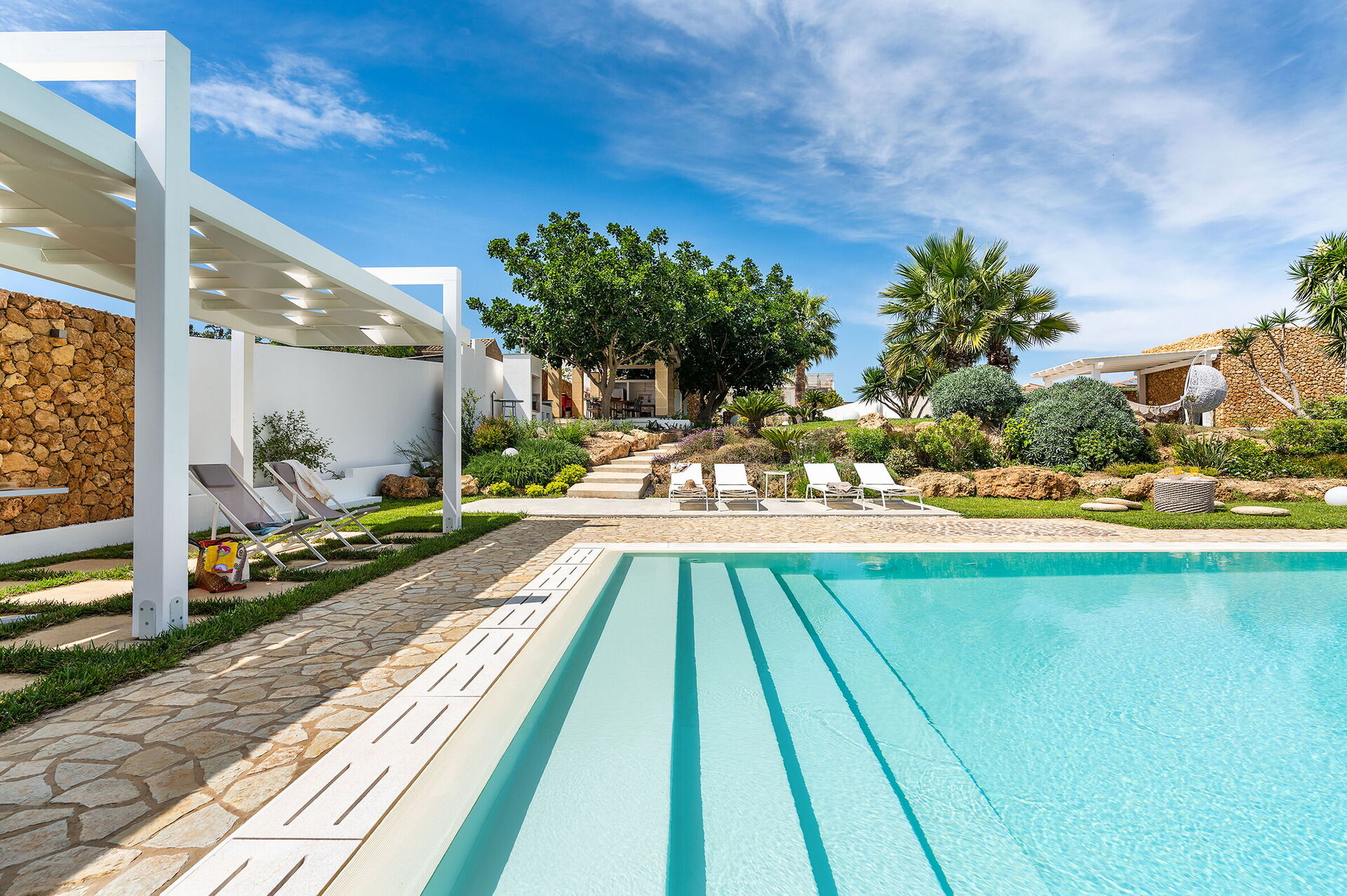 Casa Ocra ist eine bezaubernde moderne Villa mit einem großen, mit Salz gereinigten Infinity-Pool (6x16 m, Tiefe 1,00-1,60 m), gelegen in einer ruhigen Wohngegend, nur wenige Autominuten vom Meer und dem Strand von Marausa Lido entfernt, im westlichen Teil von Sizilien. Der Poolbereich wird durch ein türkisches Bad und einen Fitnessbereich ergänzt und sorgt für Elemente der Entspannung und des Wohlbefindens. Das Haus ist von einem schönen Garten mit Rasen, Aroma- und Zierpflanzen umgeben. Die Villa bietet außerdem eine Veranda mit Essbereich und eine gut ausgestattete Außenküche mit Herd, Backofen, Kühlschrank, Geschirrspüler und Grill. Folgende Dienstleistungen sind auf Anfrage und gegen Gebühr verfügbar: Bootsausflüge, Auto- und Bootsverleih. Möglichkeit zum Wandern, Vogelbeobachten und Radfahren auf den Routen im nahegelegenen Saline-Reservat. Idealer Standort für die Erkundung verschiedener Sehenswürdigkeiten im Westen Siziliens wie Erice, Trapani, Marsala, die Ägadischen Inseln, das Zingaro-Reservat und archäologische Stätten wie Segesta, Mothia und Selinunte.