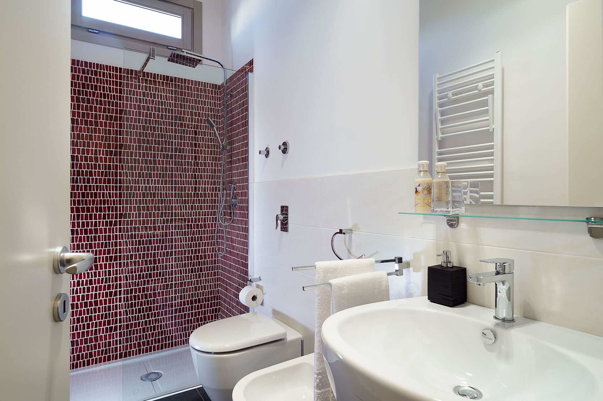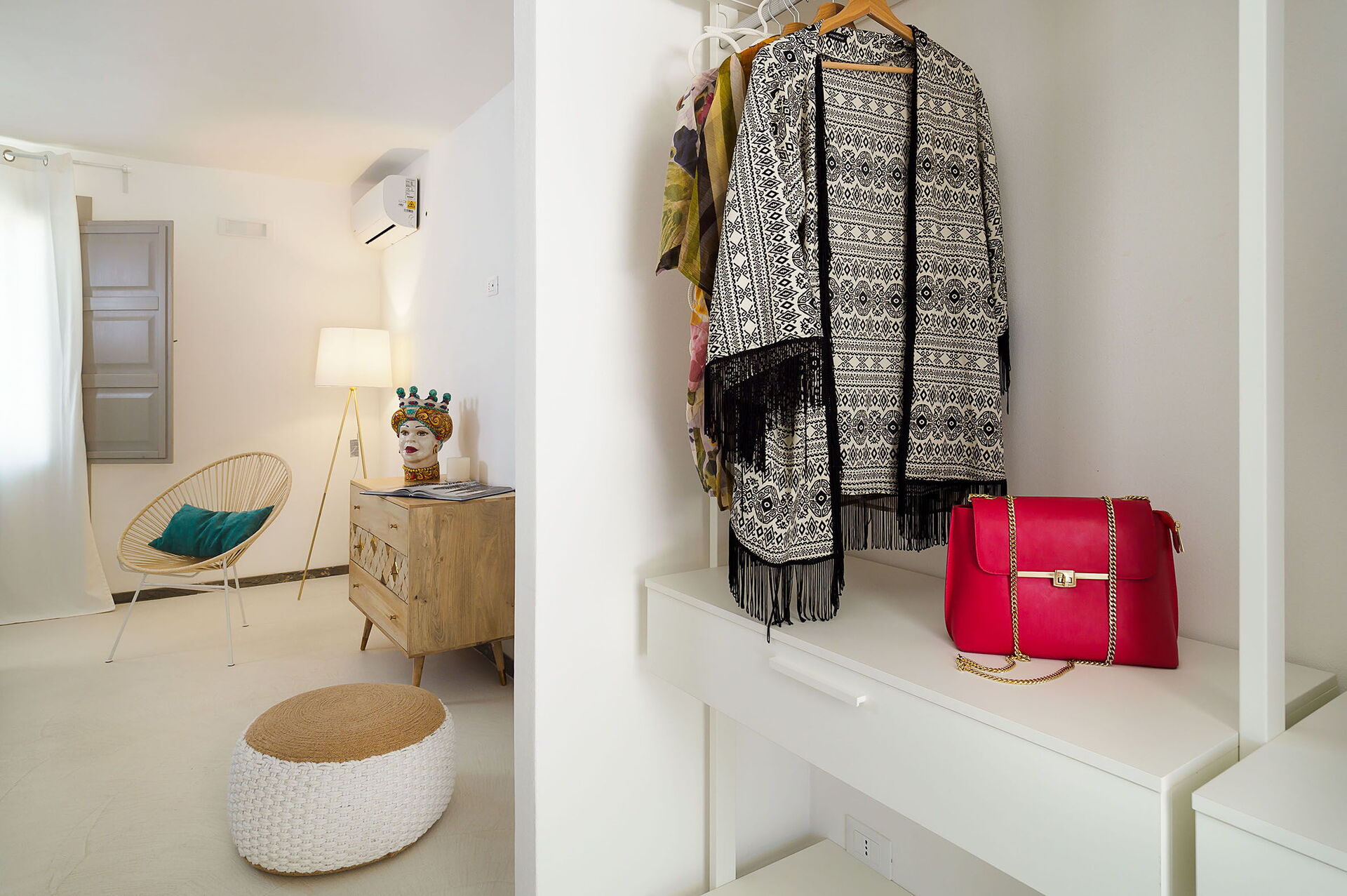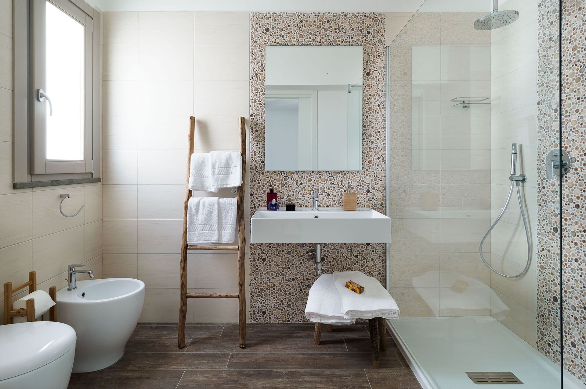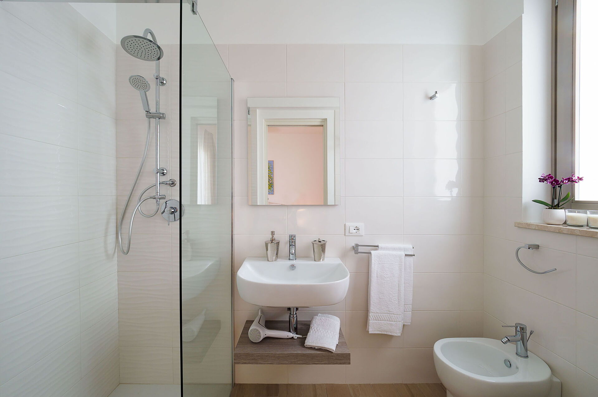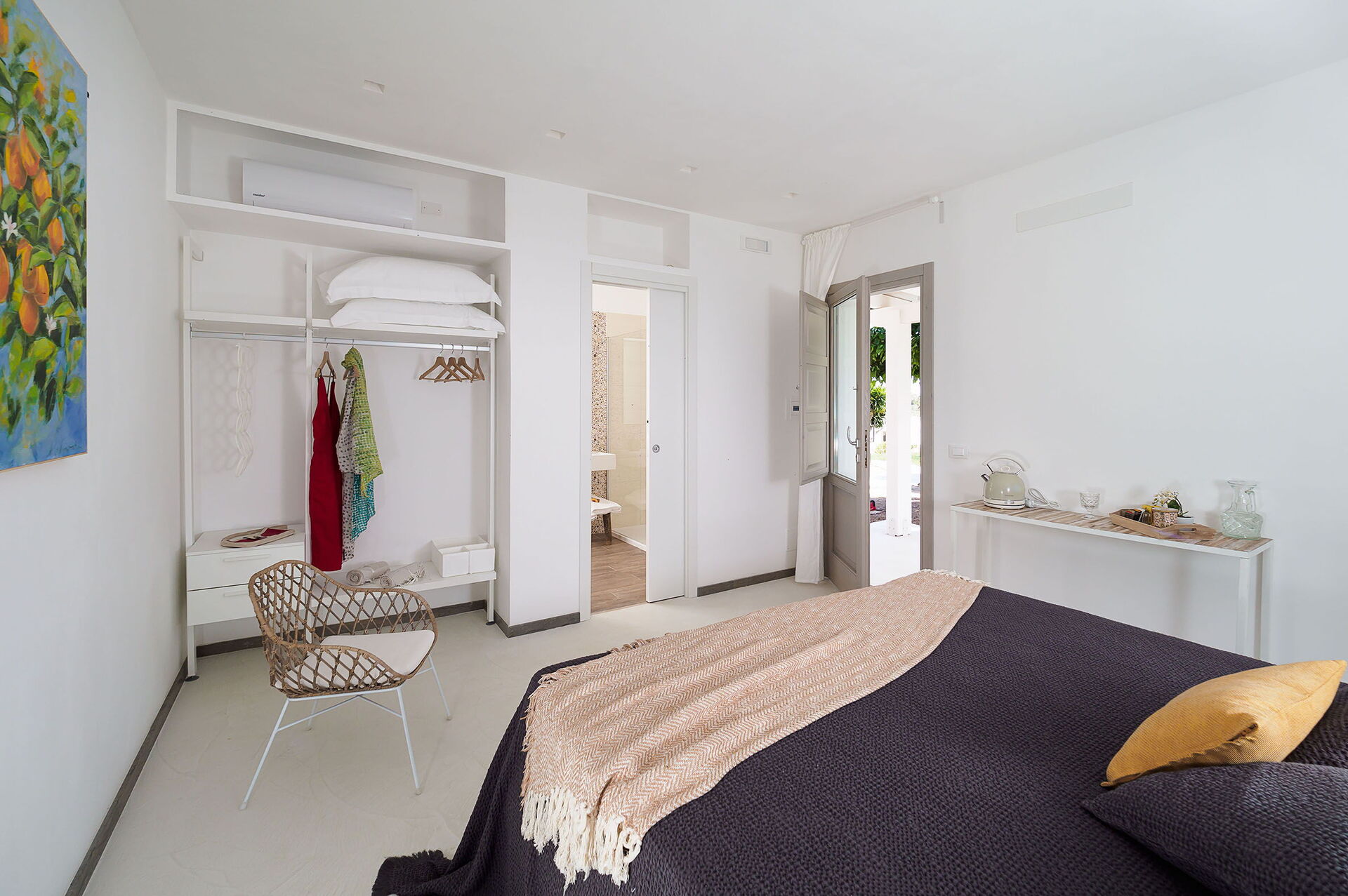 Klimaanlage, Fön, Bidet, Dusche, Internet, WiFi Internet, Waschbecken, großes Doppelbett, Sessel, Ausgang auf die Terrasse, WC