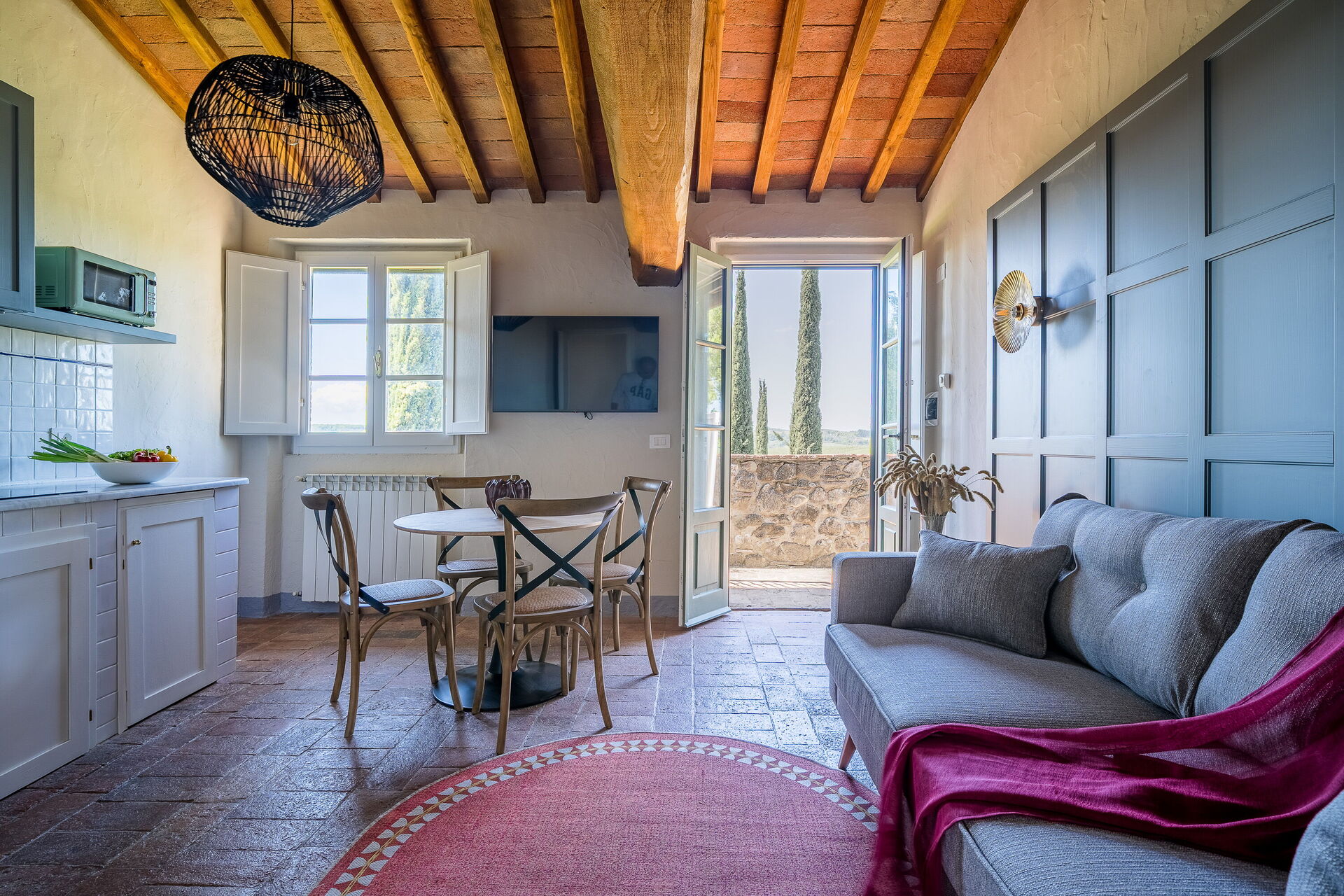 gut ausgestattete Küche, Kühlschrank, WiFi Internet, Mikrowelle, Herd, Esstisch, TV, Amerikanische Kaffeemaschine