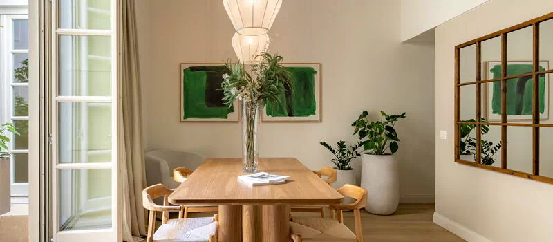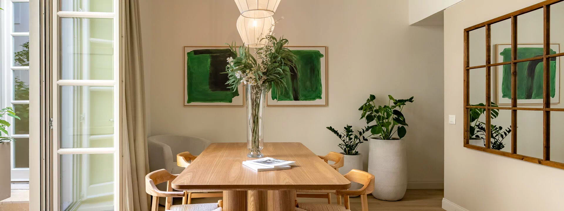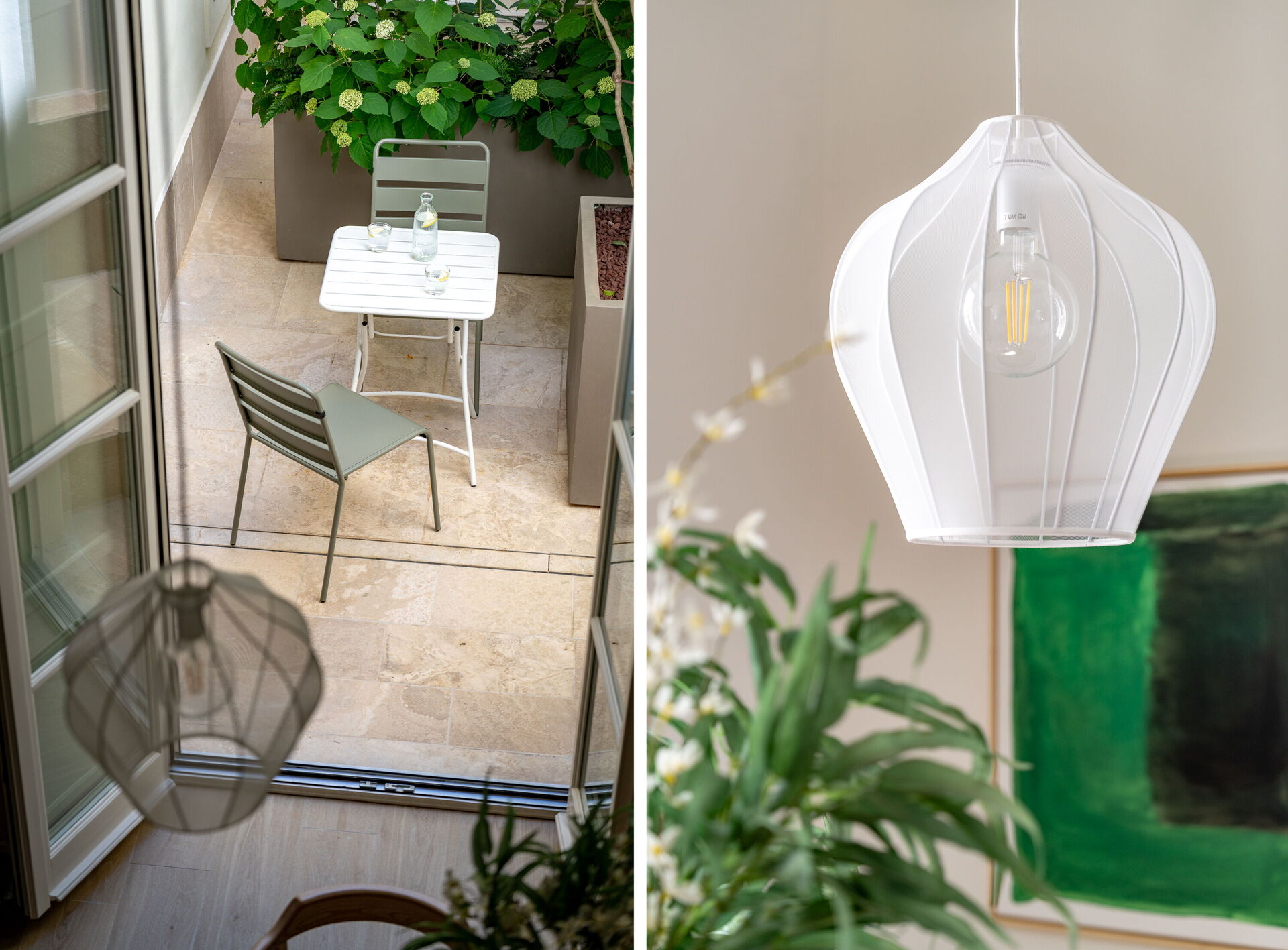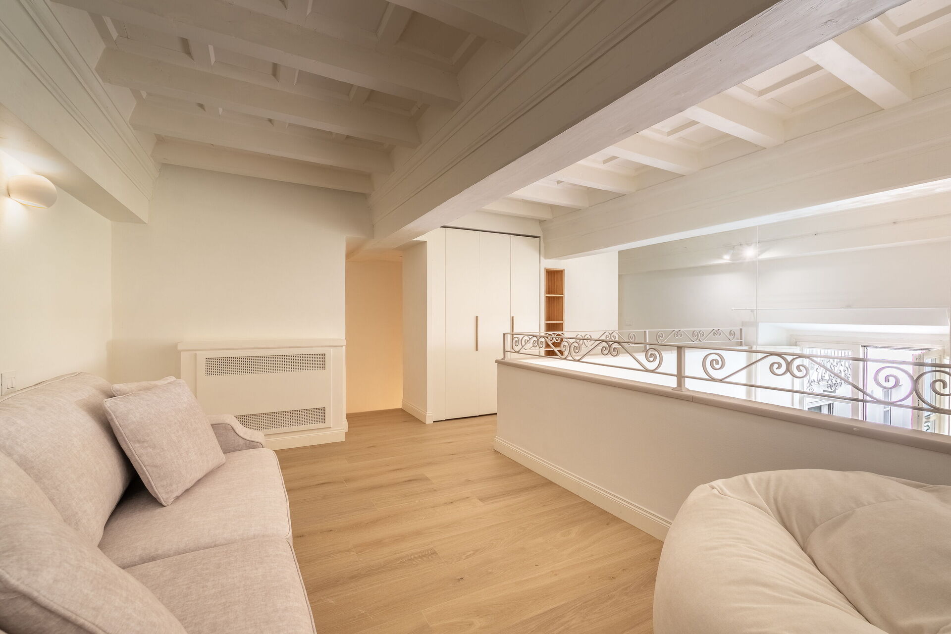 Wohnung auf zwei Ebenen, bestehend aus einem hellen Wohnzimmer mit kleinem Garten, Küche, Mezzanin mit Schlafsofa, Schlafzimmer mit Doppelbett, Bad