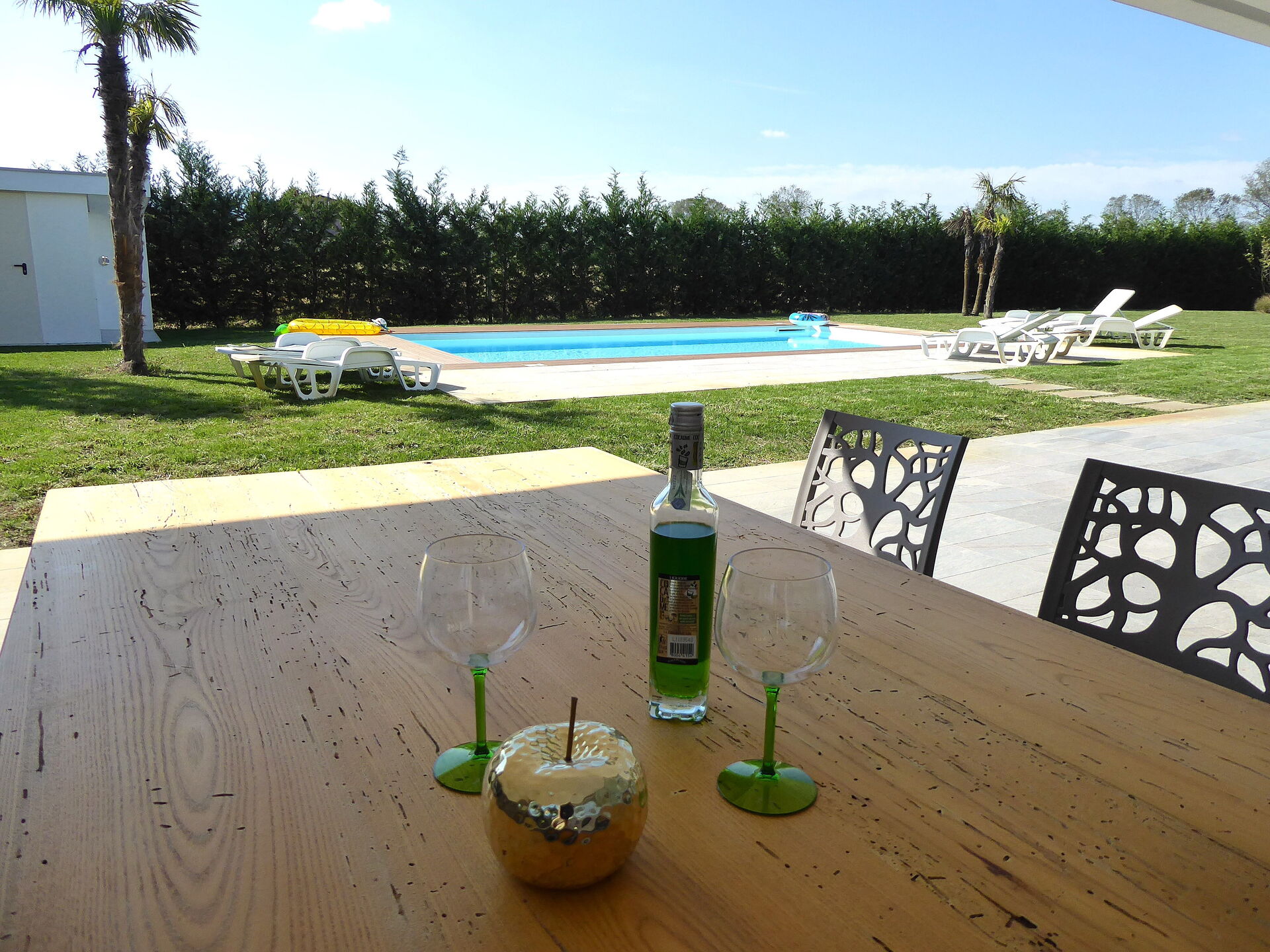 Klimaanlage, gut ausgestattete Küche, Sofa, Tiefkühler, Kühlschrank, Futon, WiFi Internet, Spülmaschine, Amerikanische Kaffeemaschine, Mikrowelle, Esstisch, Satelliten-TV, Ausgang auf den Garten