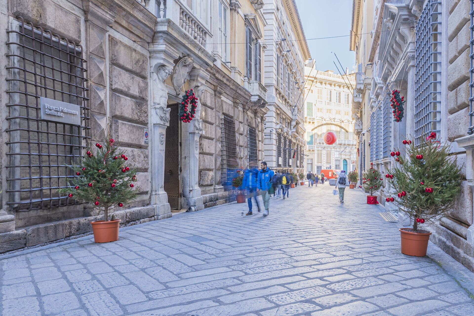 Cette rue abrite le précieux système muséal des Musei di Strada Nuova, qui relie trois importants palais génois : le Palazzo Doria Tursi (Palazzo Grimaldi Niccolò), inclus dans les Palazzi dei Rolli et siège de l'administration municipale de la ville, où se trouve le violon ayant appartenu à Paganini ; le Palazzo Bianco (Palazzo Grimaldi Luca), où sont rassemblés les chefs-d'œuvre du Caravage ; et le Palazzo Rosso (Palazzo Brignole Sale Rodolfo et Francesco).