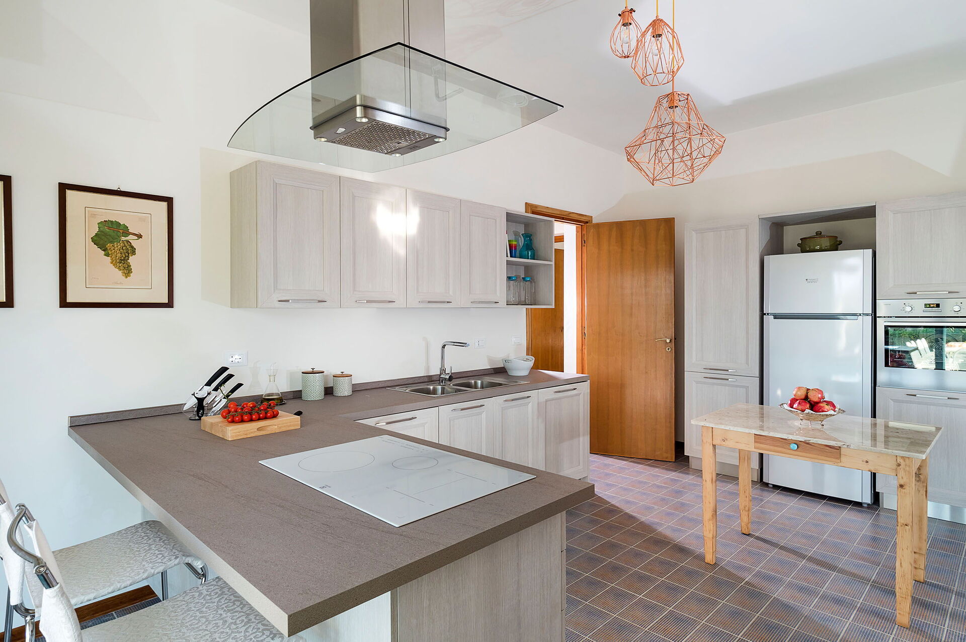 Maison principale: Rez-de-chaussée: séjour, salle à manger, salon, cuisine, 4 chambres doubles avec salle de bain avec douche, 1 chambre double, 1 salle de bain avec douche. Dépendance: Rez-de-chaussée: 2 chambres doubles avec salle de bain avec douche, kitchenette, patio.