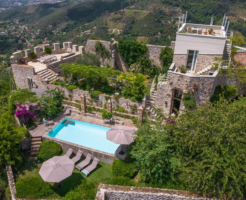 La Villa Maestosa avec piscine privée chauffée au sel (28°) (4x8 m, profondeur 1,20 m), est située au sommet d'une colline à seulement 10 minutes en voiture de la côte toscane. La résidence représente une combinaison parfaite entre le charme historique d'un château médiéval et le confort moderne. La maison est entourée d'un grand jardin enrichi de lavandes, de roses, de citrons et d'orangers disposés sur différents niveaux. Les terrasses offrent des lieux idéaux pour se détendre et profiter pleinement du panorama environnant. La propriété a été soigneusement rénovée pour offrir une expérience unique aux clients. Il est toutefois conseillé que les invités soient des adultes ou des personnes capables de gérer les marches et la structure du lieu. La villa est accessible via un garage privé, situé à environ 300 mètres de la propriété. Les clients seront accompagnés jusqu'à la porte d'entrée de la villa via un véhicule dédié. À côté du corps principal de la villa, il y a une annexe qui peut offrir une intimité supplémentaire aux clients. Emplacement idéal pour explorer la Toscane, riche en beautés naturelles, en villages charmants et en lieux d'intérêt historique et culturel. Les splendides plages de sable fin et doré de la Versilia comme celles de Lido di Camaiore, Marina di Pietrasanta et Forte dei Marmi se trouvent à une courte distance.