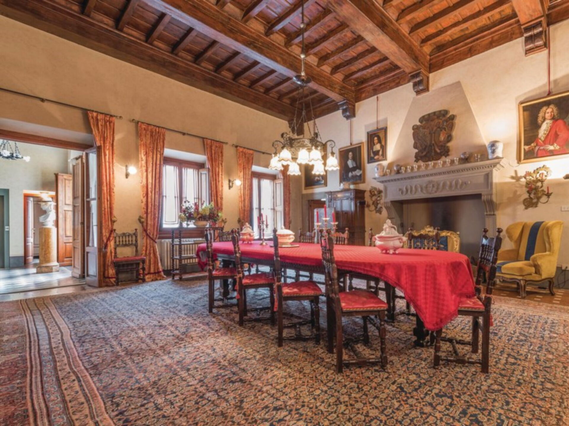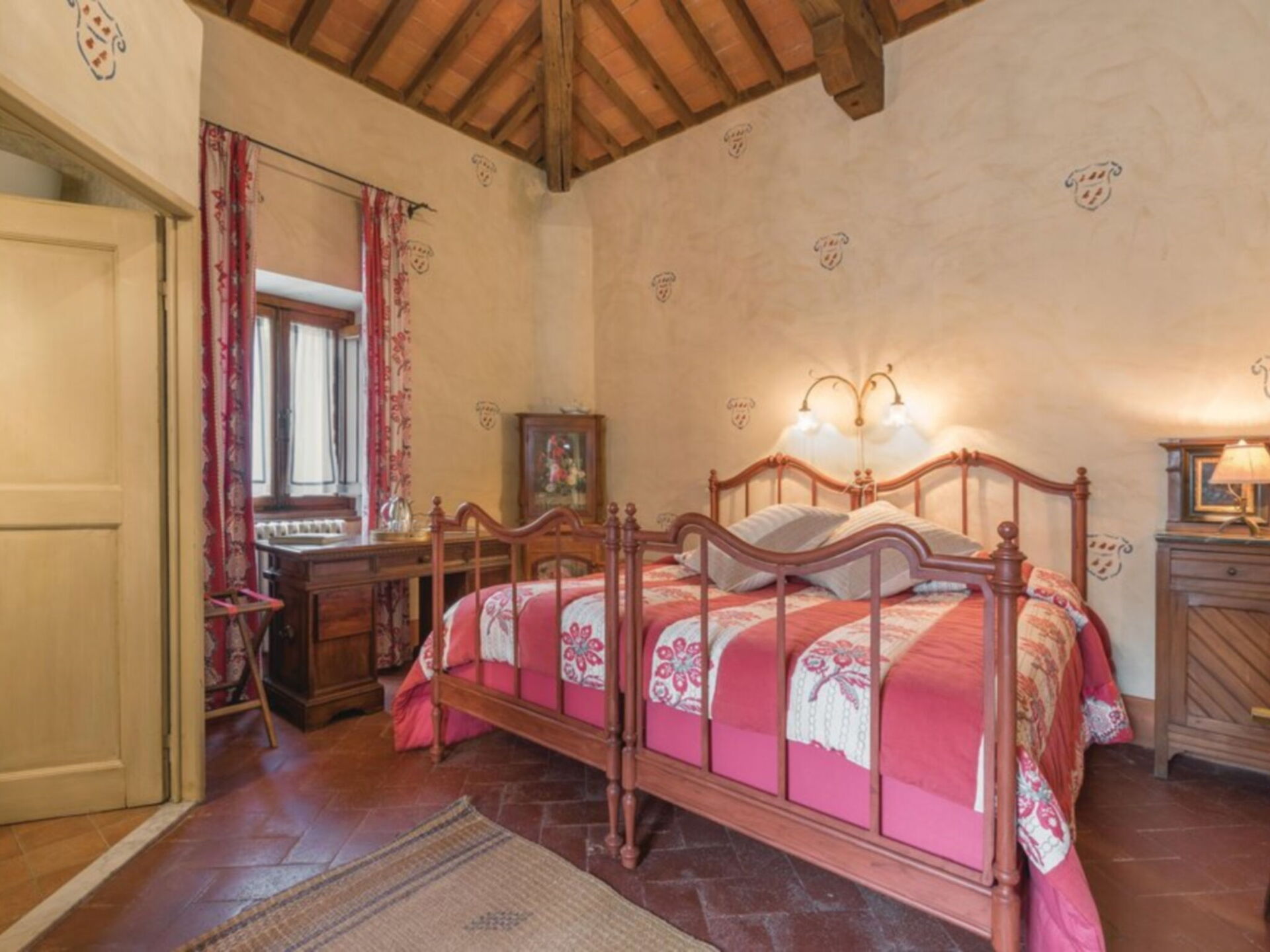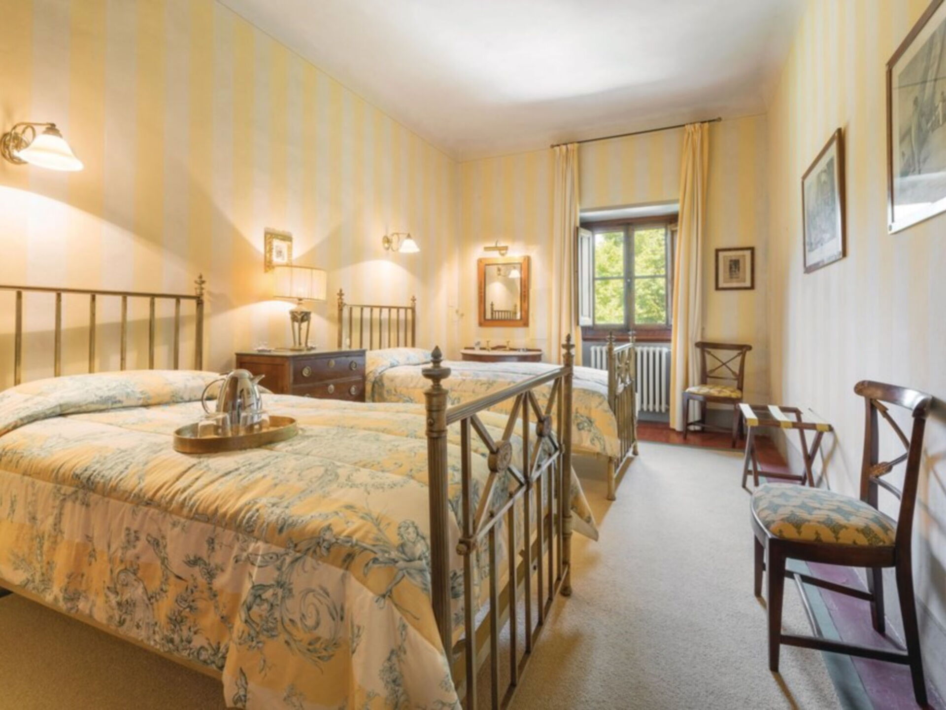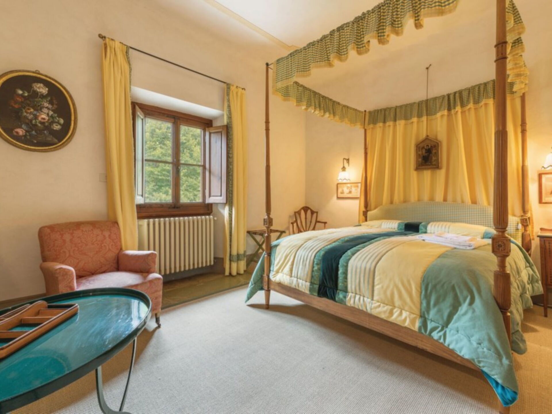 Ancienne villa privée du XVIIIe siècle sur trois étages avec ascenseur, récemment rénovée en conservant le style d'origine, les grandes chambres avec plafonds en bois "à caissons" et sols en terre cuite, élégamment meublées avec de nombreux meubles d'époque. La propriété est immergée dans la vallée verdoyante du Mugello, à seulement 20 kilomètres de Florence. La position de la villa vous permet de rejoindre facilement les principaux autres centres de la région tels que Sienne, Lucques, Pise; Des liaisons ferroviaires sont également possibles à partir de la gare Borgo San Lorenzo. La Villa est entourée d'un grand parc partiellement clôturé de 20.000 m². où il y a aussi une ferme avec une cour clôturée où vit une famille. La Villa dispose également d'une piscine de forme ovale équipée à l'usage exclusif des hôtes (8m. X 4.5m. Profondeur 160cm.). L'établissement possède également un espace extérieur équipé pour les déjeuners et dîners en plein air. Internet Wi-Fi gratuit. Parking privé sur la propriété. A l'arrière de la Villa se trouve la maison du gardien en charge de l'entretien du parc et de la piscine. La Villa est à 7 km. à partir de "Borgo San Lorenzo", à 10 km. de "Vicchio" (lieu de naissance de Giotto et Beato Angelico), à 20 km. de Florence, à 18 km. du "Barberino Designer Outlet" (plus de 100 magasins de grandes marques de mode italienne et internationale) et du lac de "Bilancino" (canoë, voile, planche à voile), 13 km. du "Golf Club Poggio dei Medici", à 10 km. de l'école d'équitation.