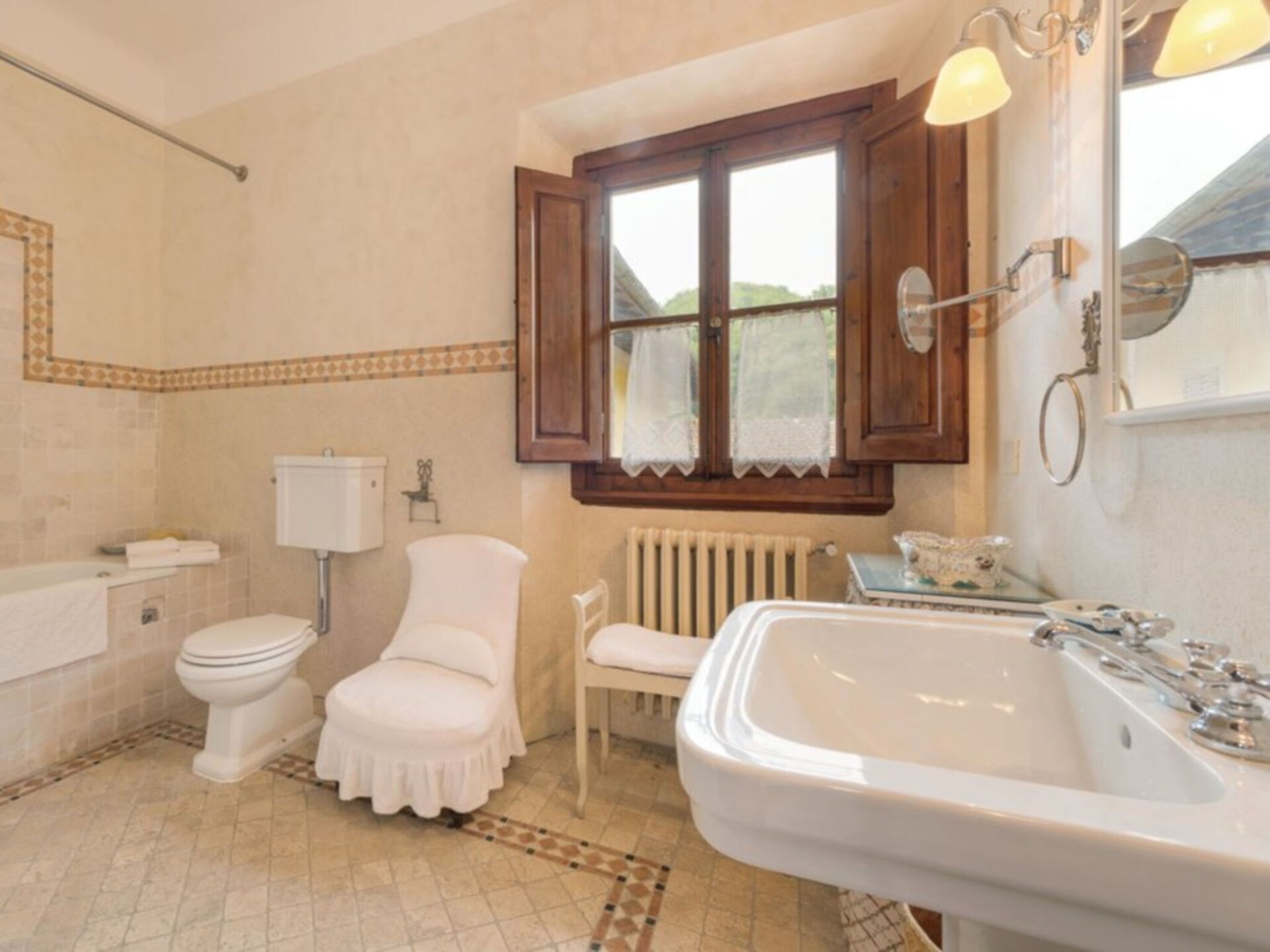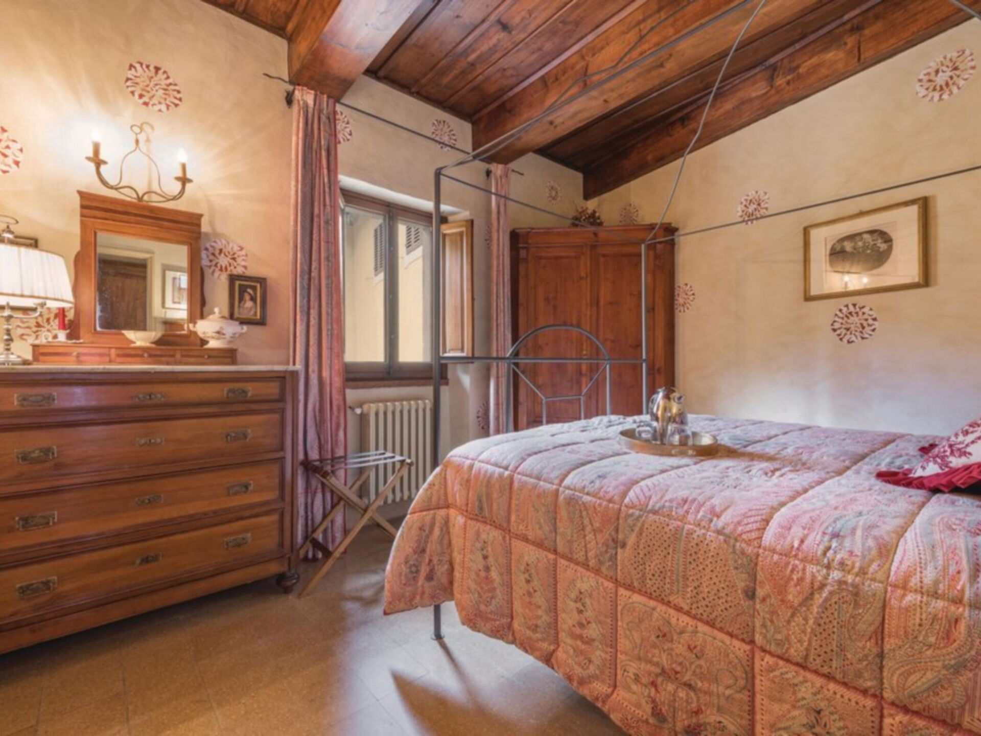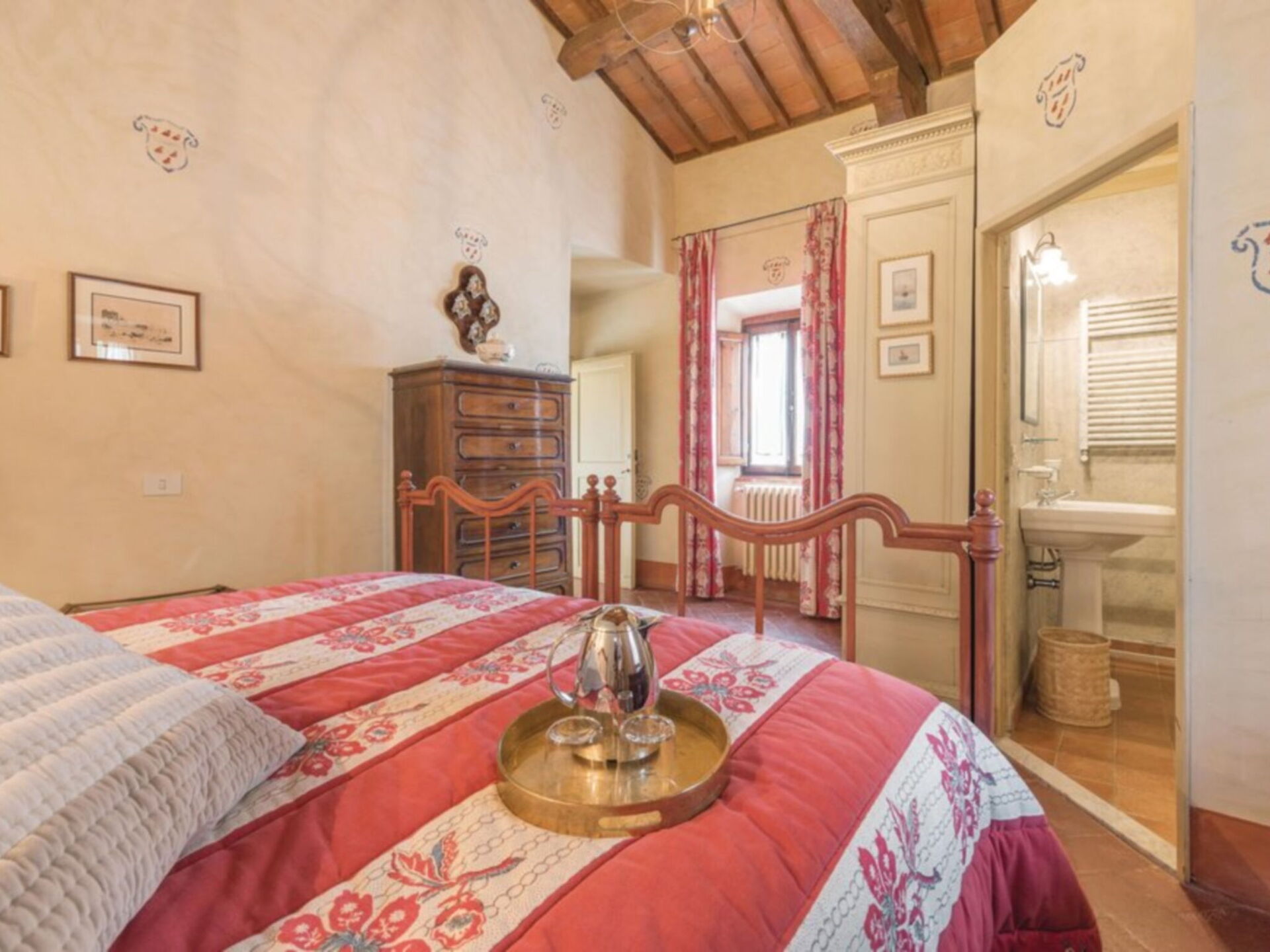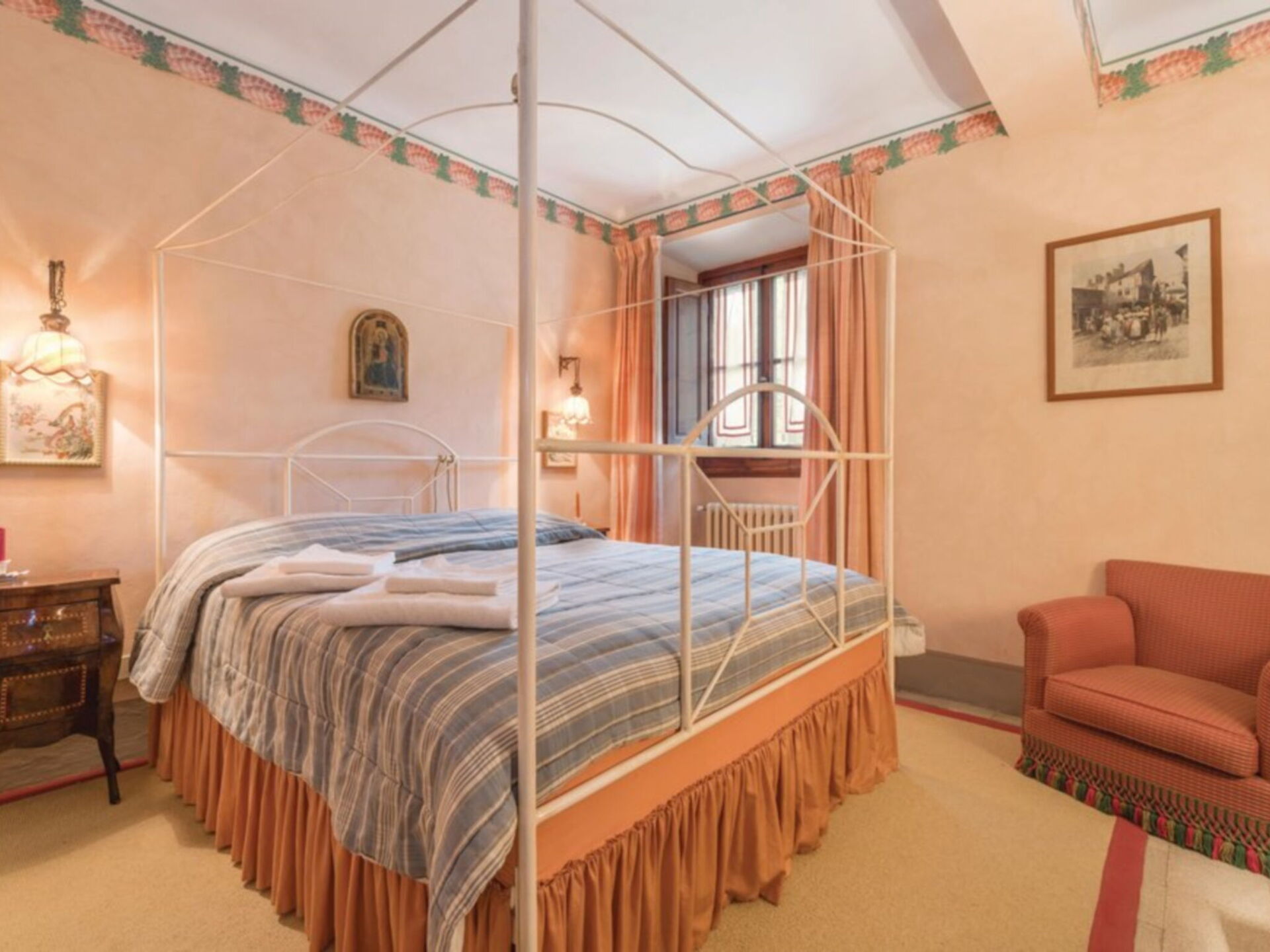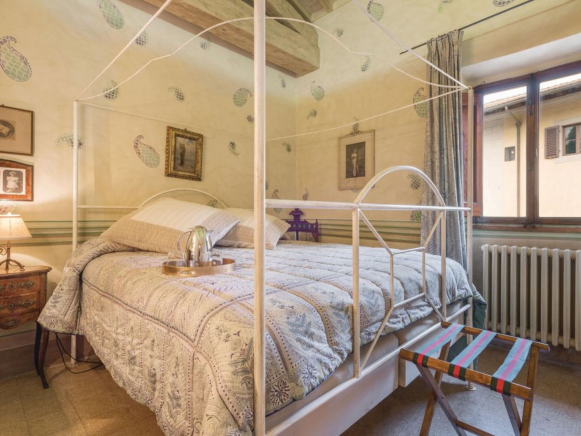 Ancienne villa privée du XVIIIe siècle sur trois étages avec ascenseur, récemment rénovée en conservant le style d'origine, les grandes chambres avec plafonds en bois "à caissons" et sols en terre cuite, élégamment meublées avec de nombreux meubles d'époque. La propriété est immergée dans la vallée verdoyante du Mugello, à seulement 20 kilomètres de Florence. La position de la villa vous permet de rejoindre facilement les principaux autres centres de la région tels que Sienne, Lucques, Pise; Des liaisons ferroviaires sont également possibles à partir de la gare Borgo San Lorenzo. La Villa est entourée d'un grand parc partiellement clôturé de 20.000 m². où il y a aussi une ferme avec une cour clôturée où vit une famille. La Villa dispose également d'une piscine de forme ovale équipée à l'usage exclusif des hôtes (8m. X 4.5m. Profondeur 160cm.). L'établissement possède également un espace extérieur équipé pour les déjeuners et dîners en plein air. Internet Wi-Fi gratuit. Parking privé sur la propriété. A l'arrière de la Villa se trouve la maison du gardien en charge de l'entretien du parc et de la piscine. La Villa est à 7 km. à partir de "Borgo San Lorenzo", à 10 km. de "Vicchio" (lieu de naissance de Giotto et Beato Angelico), à 20 km. de Florence, à 18 km. du "Barberino Designer Outlet" (plus de 100 magasins de grandes marques de mode italienne et internationale) et du lac de "Bilancino" (canoë, voile, planche à voile), 13 km. du "Golf Club Poggio dei Medici", à 10 km. de l'école d'équitation.