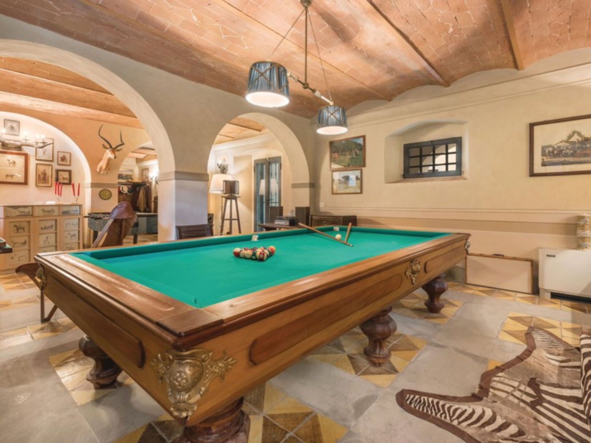 Au rez-de-chaussée: entrée; salle de jeux; salle de billard; loggia couverte.