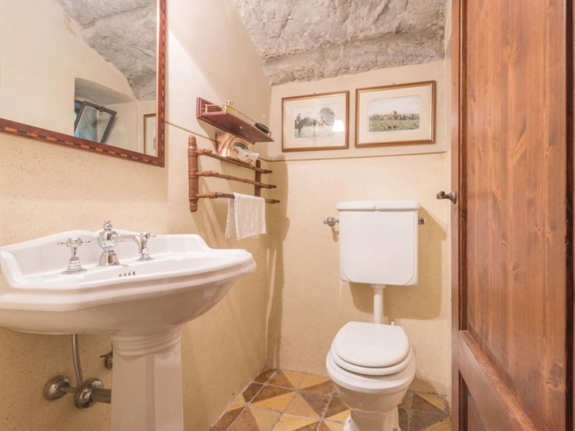 Au premier étage: séjour; salon / séjour avec cheminée et TV; 1 salle de bain de service (toilette); grande salle à manger; salle de petit déjeuner avec TV (à partir d'ici via un escalier, vous pouvez accéder à la buanderie / salle de repassage); cuisine avec cinq feux, four électrique, four à bois, réfrigérateur, congélateur, machine à café, lave-vaisselle; 2 chambres doubles chacune avec lit double et salle de bain avec douche (wc / bidet); 1 chambre double avec lit double et salle de bain avec baignoire (WC / bidet).