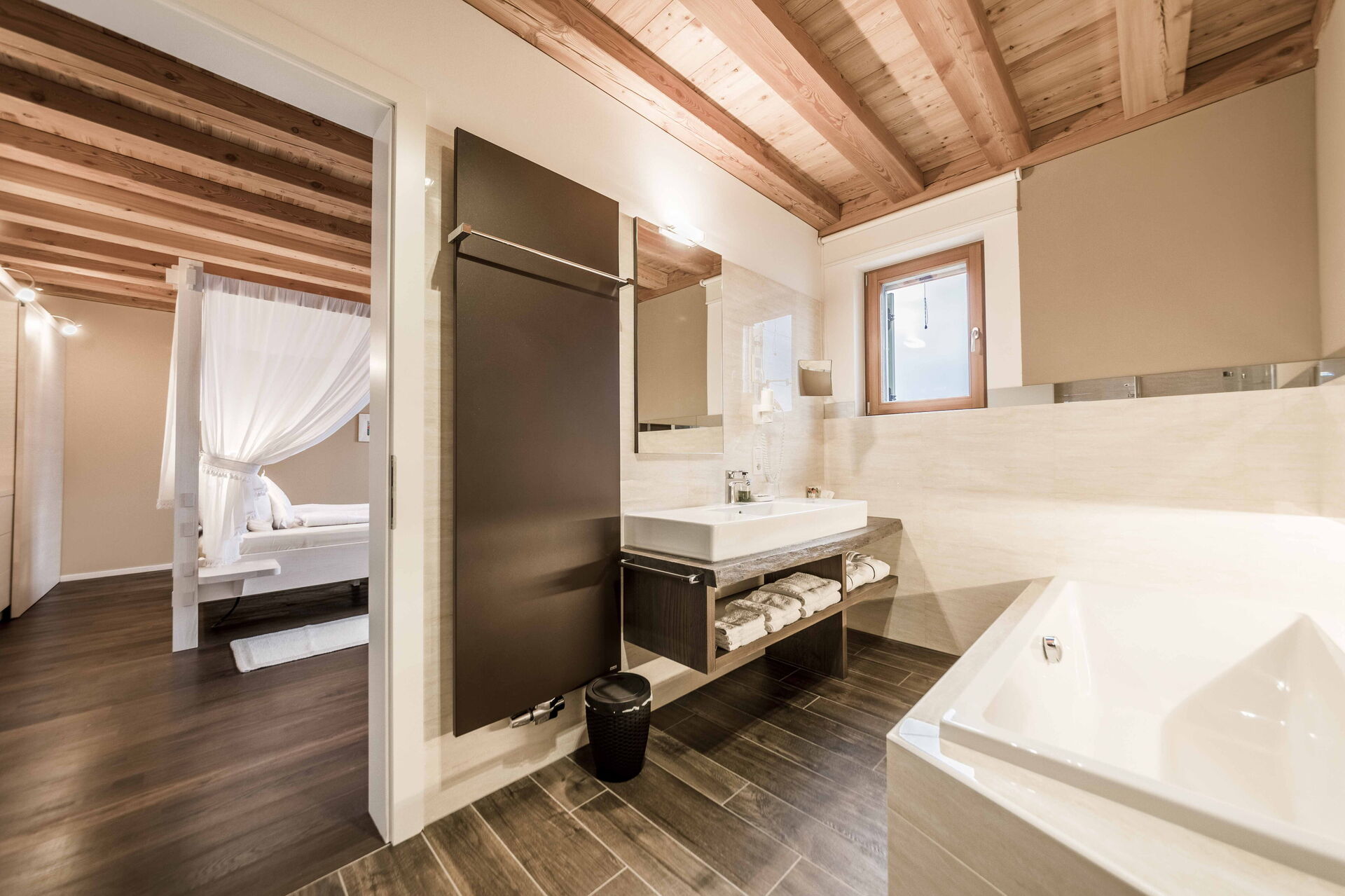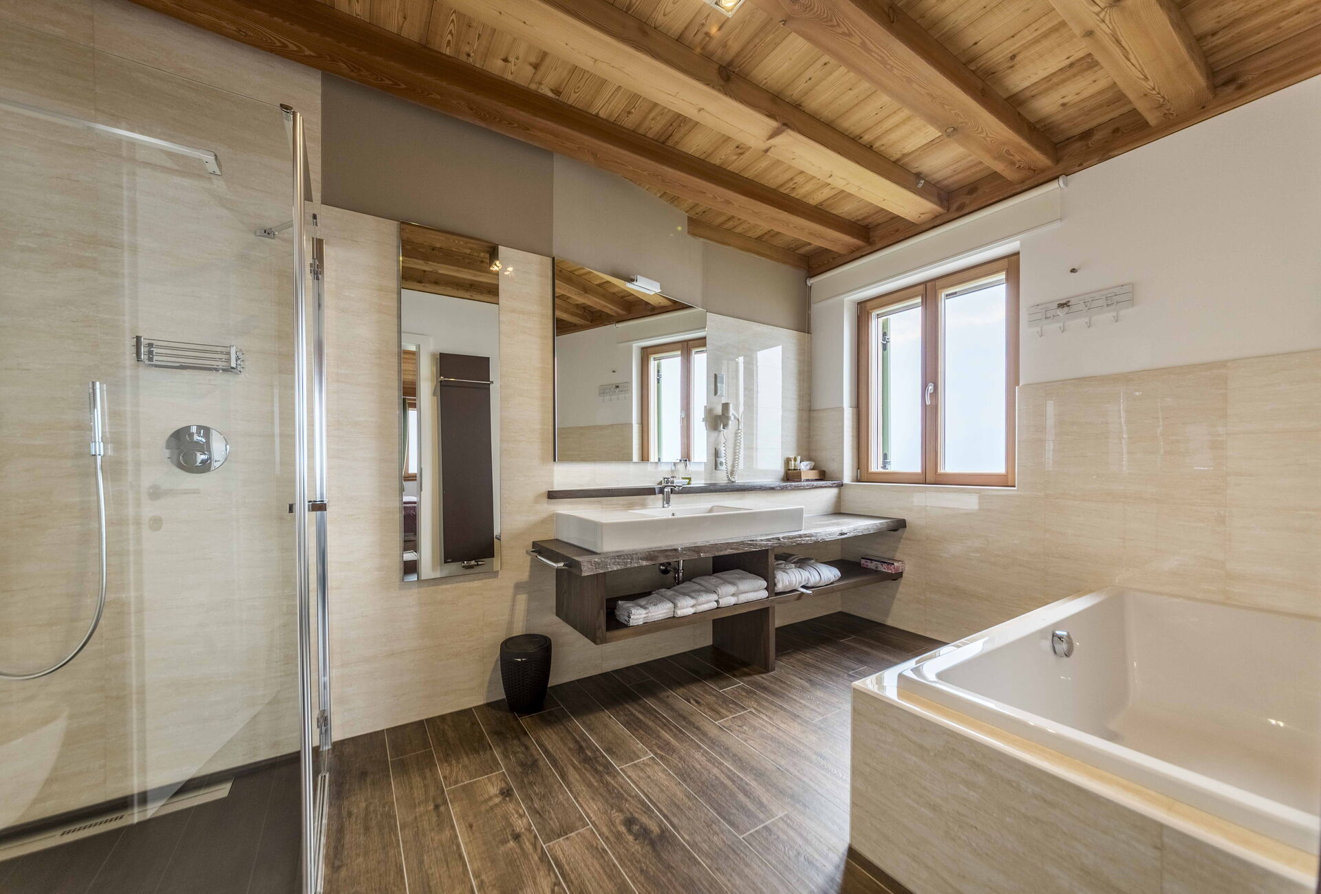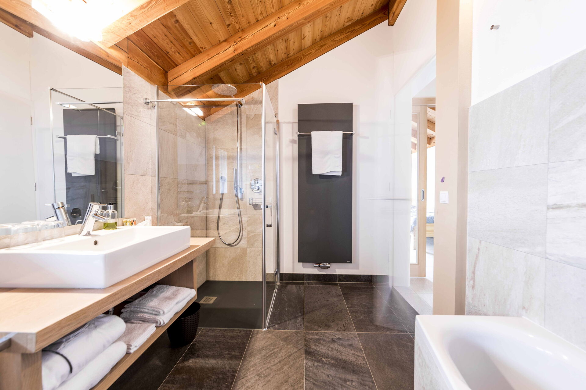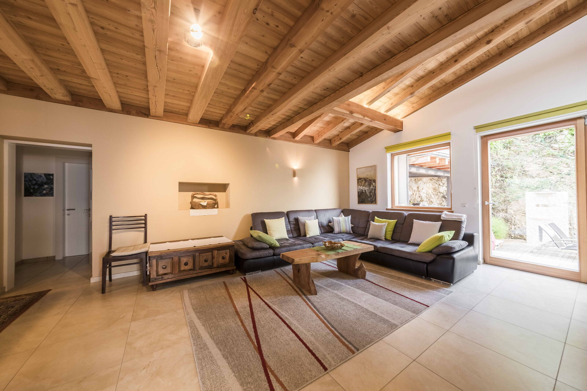 Au premier étage, il y a 2 chambres avec salle de bain privée tandis qu'à l'étage la zone nuit offre 2 autres chambres, toutes avec vue sur le lac et avec salle de bain partagée. L'environnement ici est également vraiment unique : des poutres en bois, comme dans le reste de la maison, pour les plafonds mais aussi du bois pour les sols et la plupart des meubles. Un mélange parfait qui rend l'ensemble de l'environnement vraiment respectueux de l'environnement.