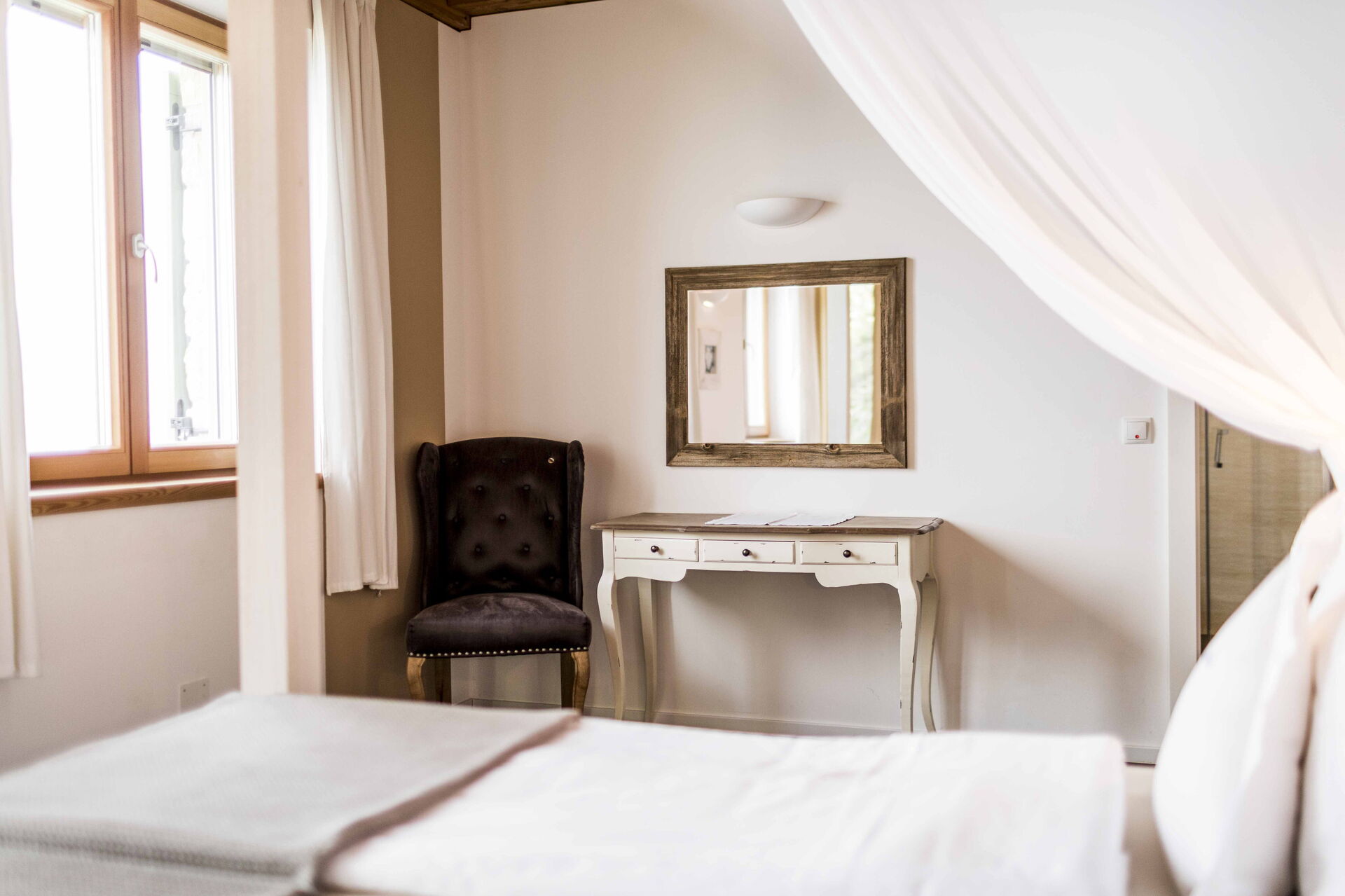 Toujours à l'extérieur, vous serez entouré d'oliviers centenaires, dont on obtient une excellente huile, et d'espaces verts où vous pourrez récolter des goyaves d'ananas, des baies de goji et même des dattes chinoises. Un Eden pour l'explosion de couleurs et de senteurs où vous pourrez, pendant votre séjour, vivre en toute sécurité en toute intimité. Pour les plus petits, il y a aussi une aire de jeux.