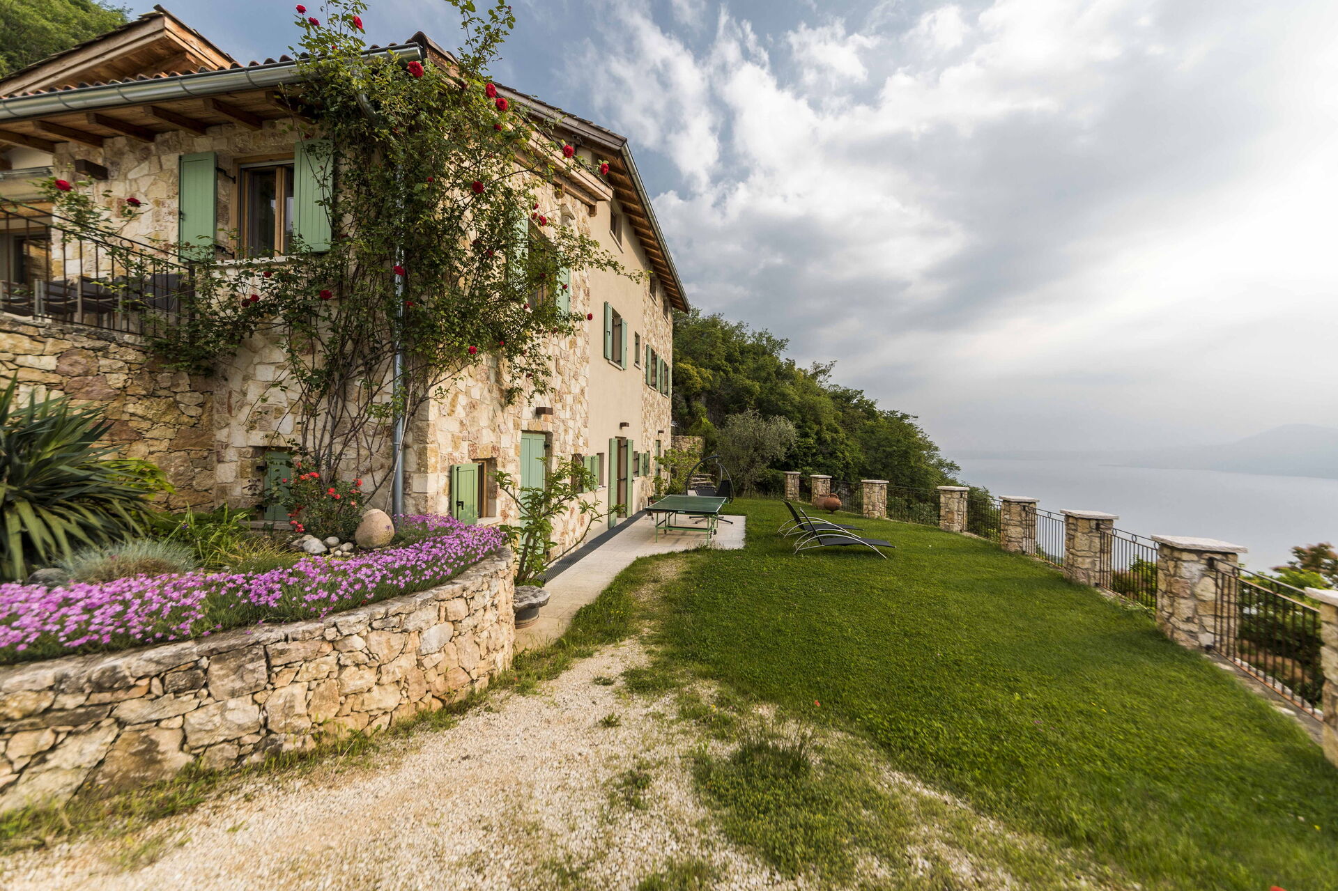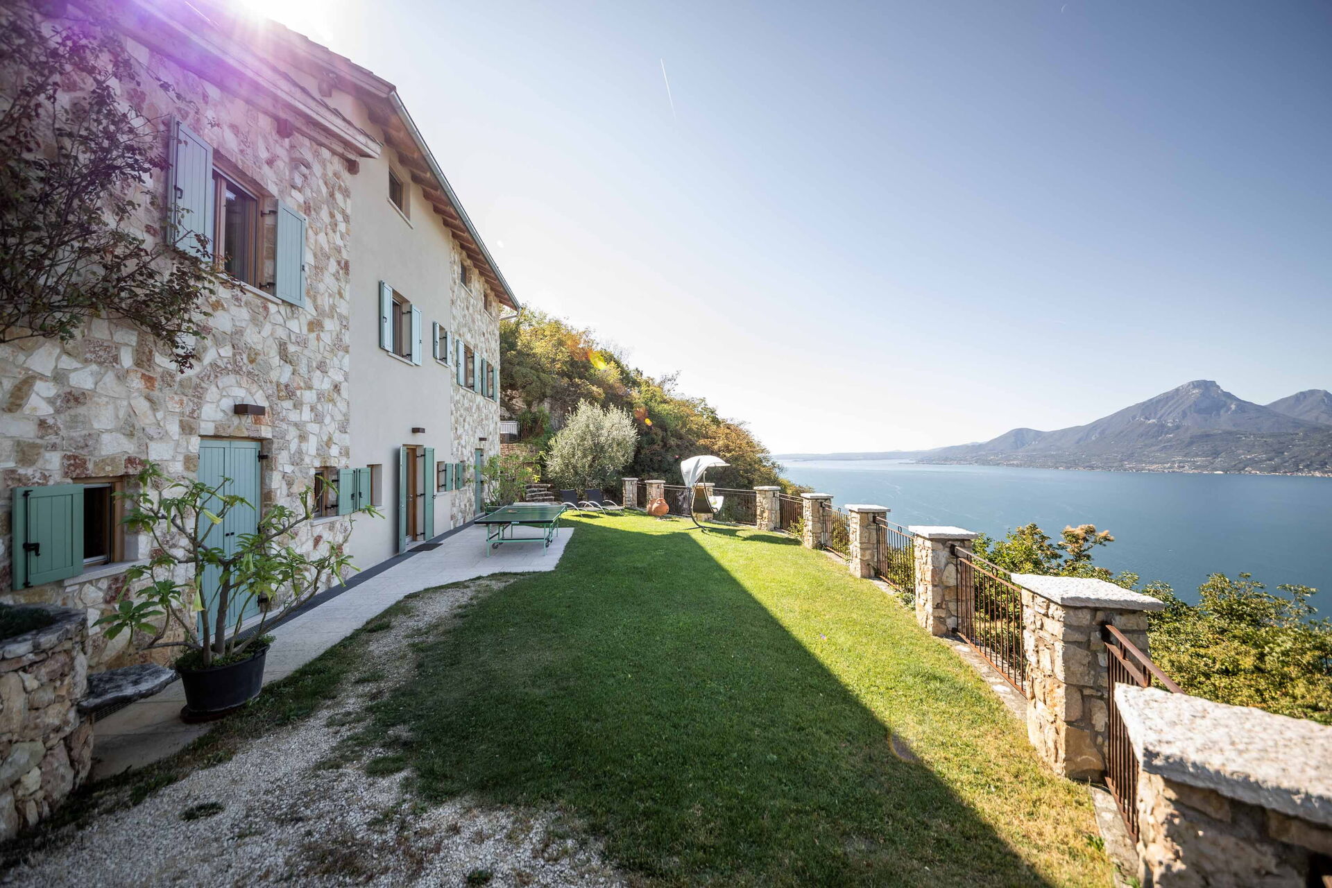 Les eaux du lac de Garde sont à seulement trois cents mètres à pied. Près de la villa, vous trouverez un club de voile et une location de bateau à moteur. Vous pouvez également faire de la randonnée le long d'anciens chemins de pierre romains mais aussi des balades en VTT ou vous pouvez prendre le téléphérique qui vous mènera au sommet du Monte Baldo d'où vous pourrez profiter d'une vue unique. Les eaux du lac accueillent tous types de sports nautiques: ski nautique, planche à voile, kitesurf, canyoning. En voiture, il vous faudra dix minutes pour rejoindre les principales villes de la région. Vérone est à moins de 50 kilomètres, tout comme Sirmione.