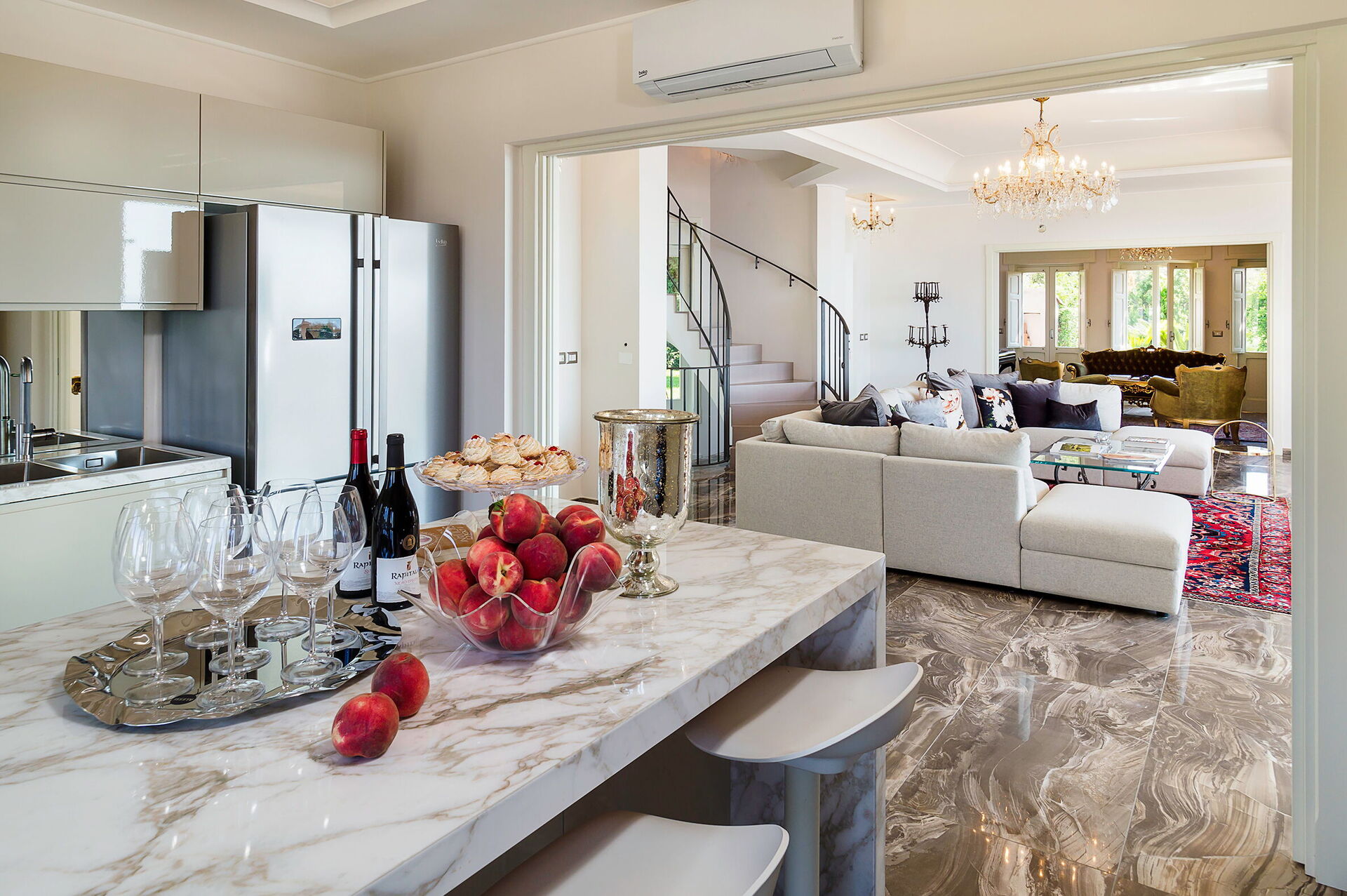 Aria condizionata, Cucina ben attrezzata, Divano, Forno, Freezer, Frigo, Internet, Internet WiFi, Lavastoviglie, Macchina da caffè (Italiana), Macchina da caffè americano, Microonde, Piano Cottura, Rilevatore di CO2, Rilevatore di fumo, Seggiolone, Tostapane, Uscita sulla terrazza, Zanzariere