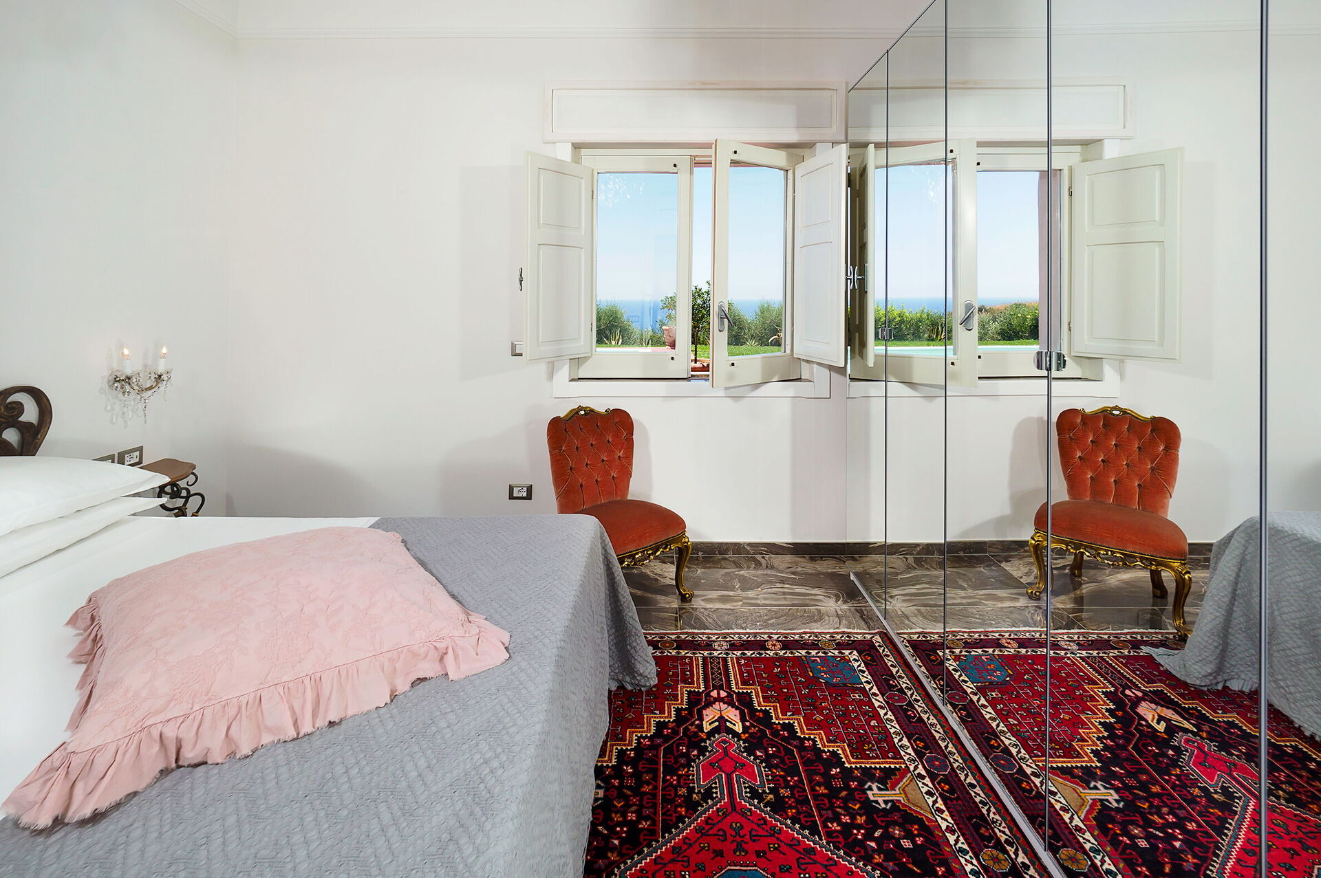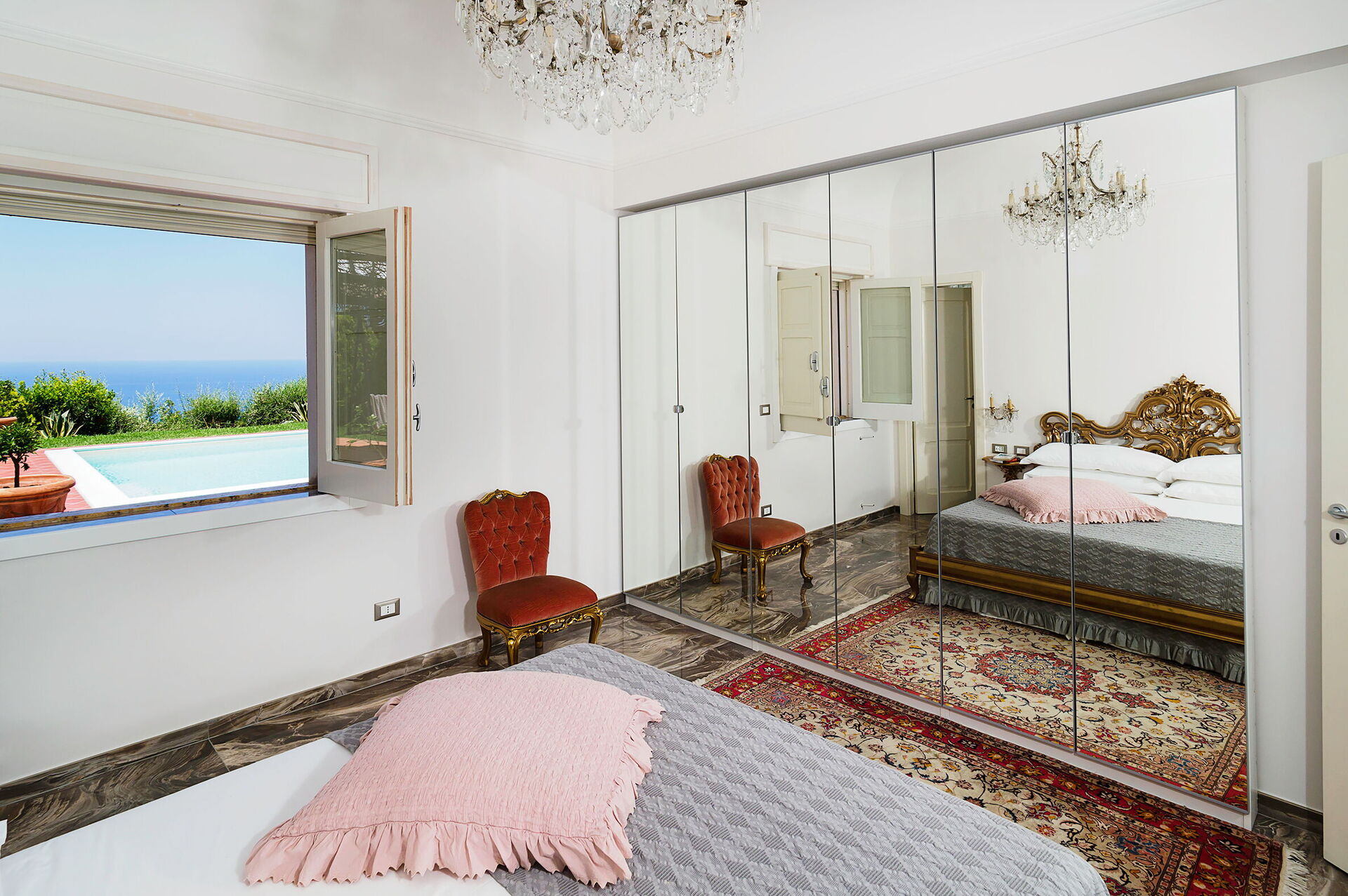 Villa Ester è una dimora lussuosa con grande giardino rigoglioso con piscina (6x12 m, profondità 1,40 m) situata nei pressi di Capo d’Orlando, una rinomata località balneare sulla costa nord della Sicilia. La villa è in una posizione tranquilla, soleggiata e panoramica offrendo un'incantevole vista sul mare e sulle Isole Eolie, particolarmente bella al tramonto. È dotata di varie comodità, tra cui aria condizionata e internet Wi-Fi, è elegante e raffinata, di recente costruzione, con una combinazione perfetta di arredi e materiali pregiati. Pavimenti in marmo, pezzi d'antiquariato e lampadari sontuosi caratterizzano gli spazi interni. Sono facilmente raggiungibili alcune delle principali attrazioni della zona, tra cui le spiagge di Capo d’Orlando, i paesini del Parco dei Nebrodi, Cefalù, l'area archeologica di Tindari, Taormina, l’Etna e le Isole Eolie.