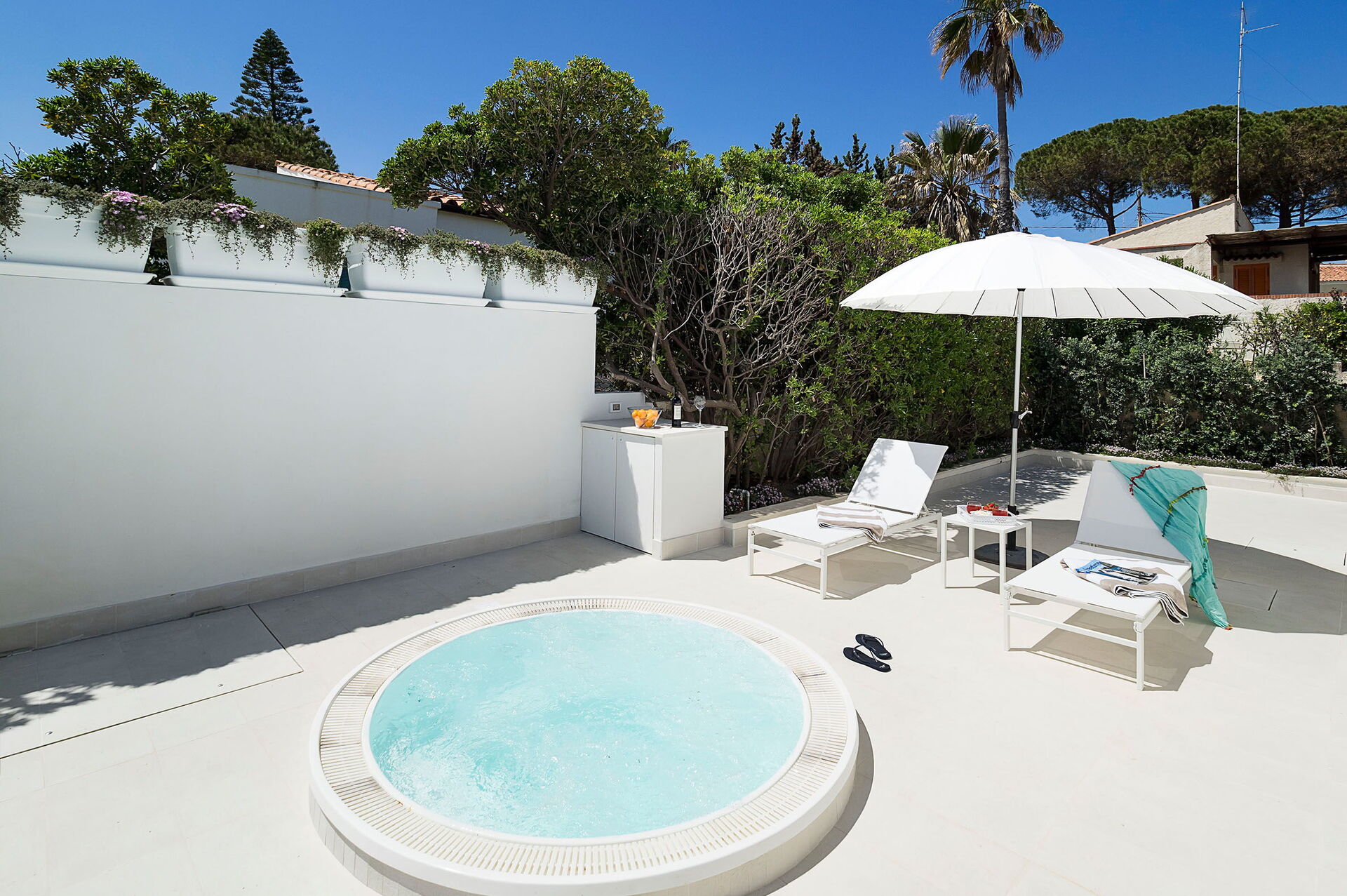 Mariposa è una villa moderna con vasca idromassaggio non riscaldata (2x2 m, profondità 0,50-1,20 m) sulla terrazza solarium con vista panoramica sul mare, situata a Fontane Bianche, una rinomata stazione balneare a sud di Siracusa, Sicilia. Mariposa si trova all'interno di un tranquillo complesso residenziale e gode di una posizione privilegiata di fronte al mare. La terrazza ed il giardino offrono un ambiente ideale per il relax ed il divertimento. La villa si estende su un unico livello ed è arredata con gusto e cura dei dettagli. La lunga spiaggia di sabbia di Fontane Bianche dista appena un chilometro dalla villa. Posizione ideale per esplorare alcune delle destinazioni più belle della Sicilia sud-orientale. Tra queste ci sono Siracusa, le città barocche della Val di Noto e le riserve naturali di Vendicari, Pantalica e Cassibile. Inoltre, sono facilmente raggiungibili anche Taormina ed il Parco dell'Etna.