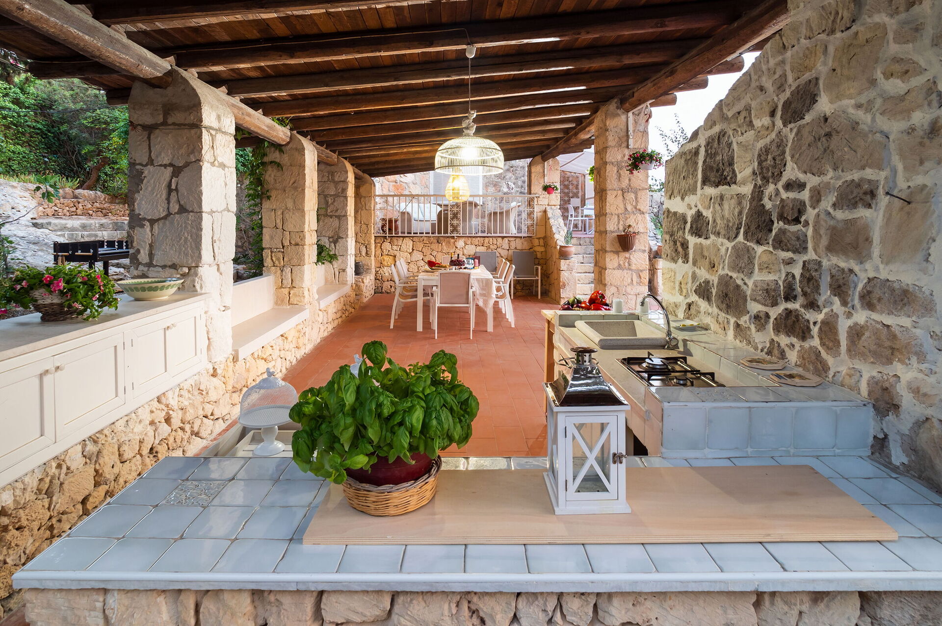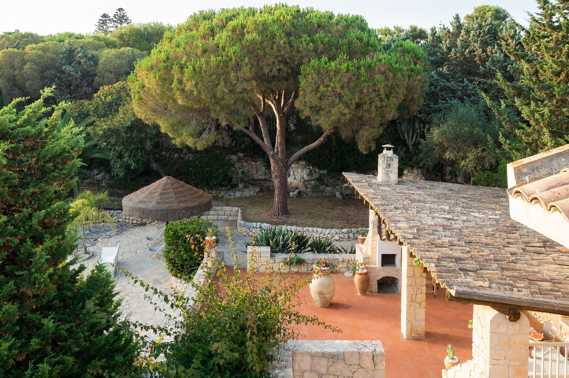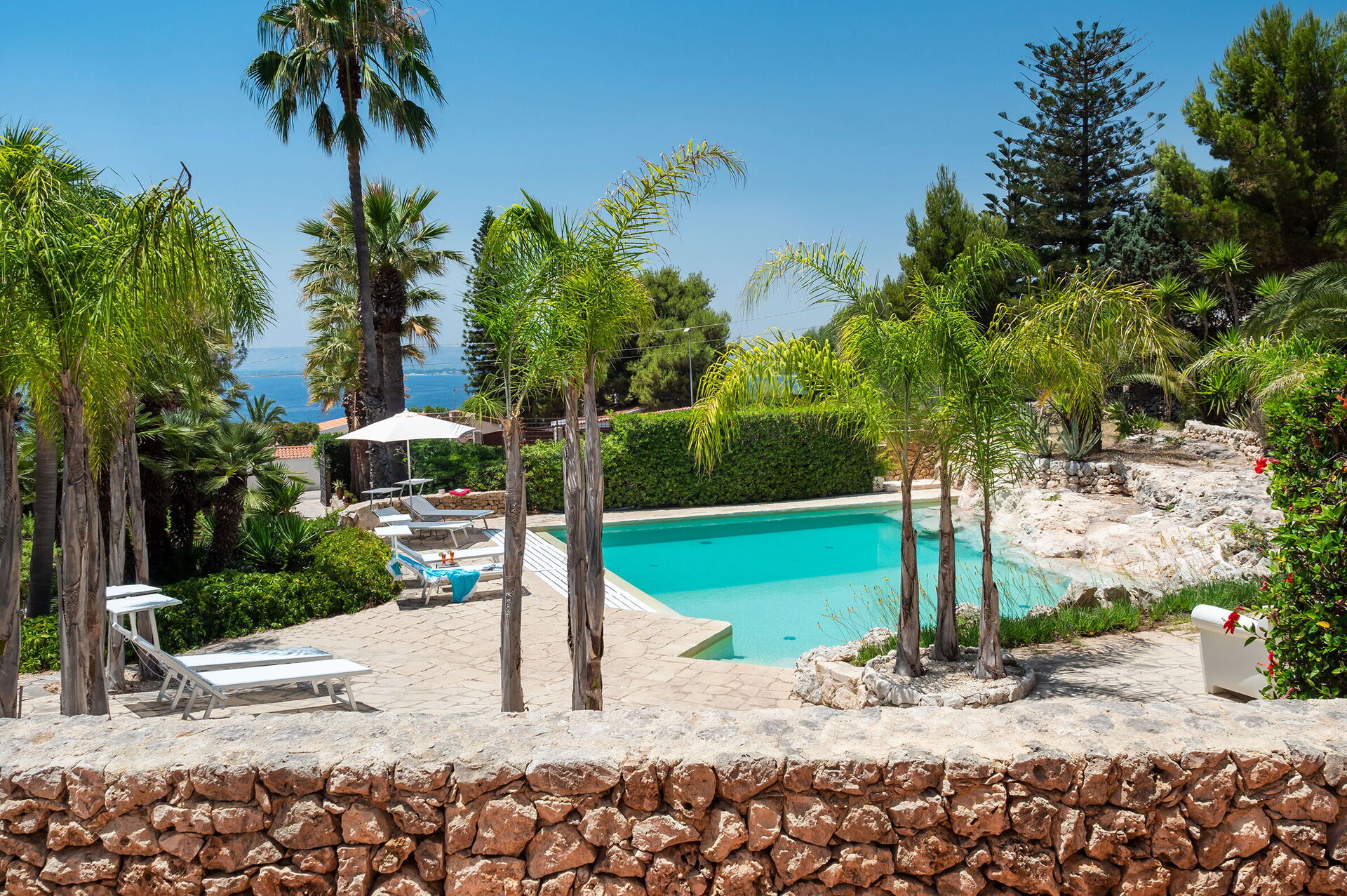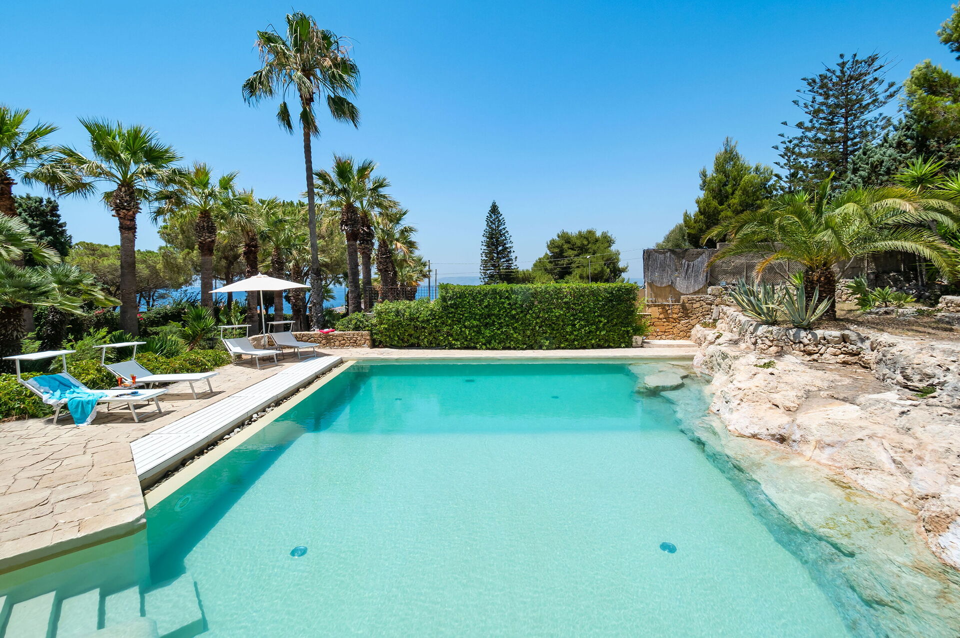 Lavanderia, terrazze, loggia con cucina esterna, barbecue e dining area, giardino, piscina, solarium.