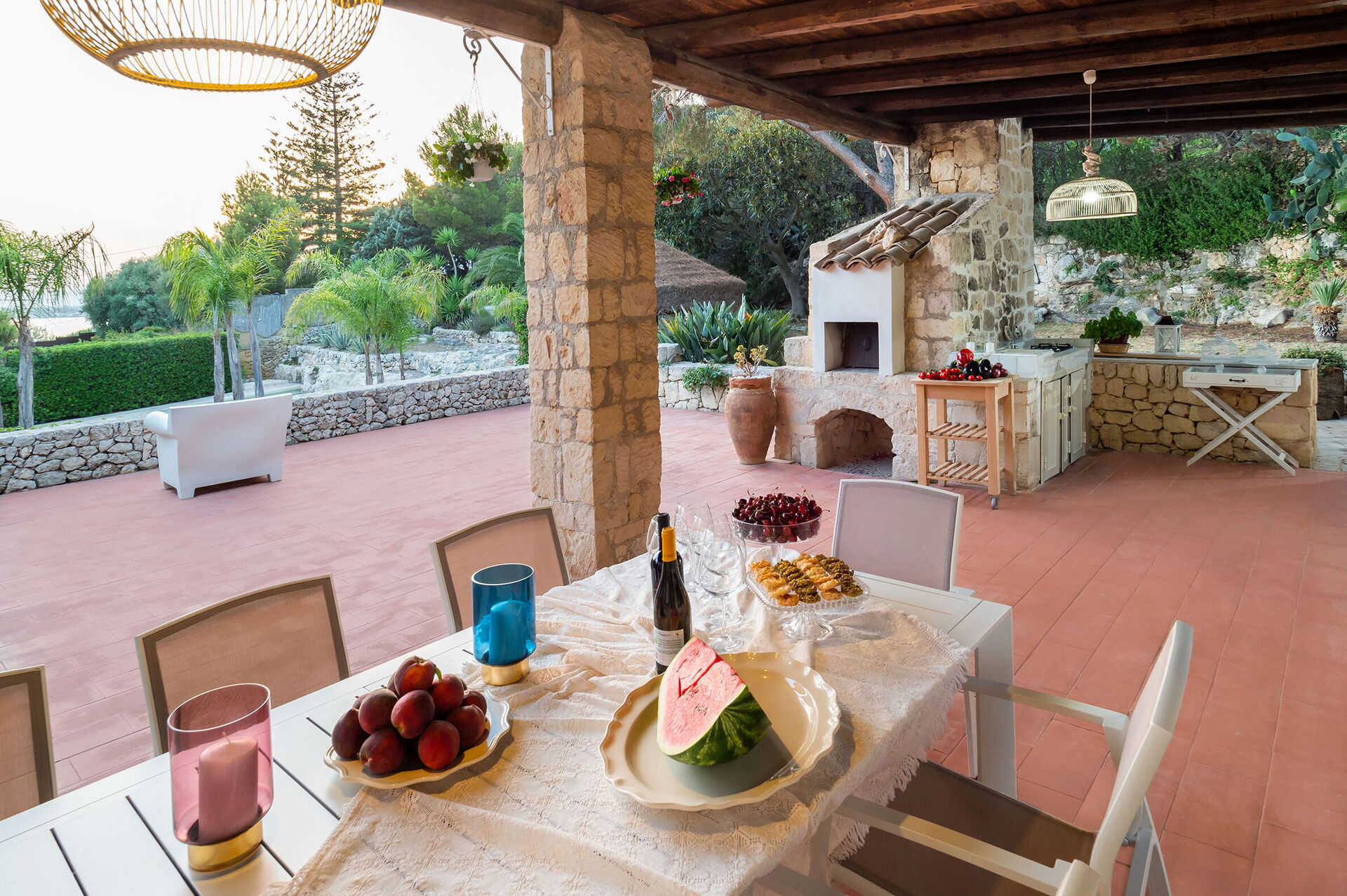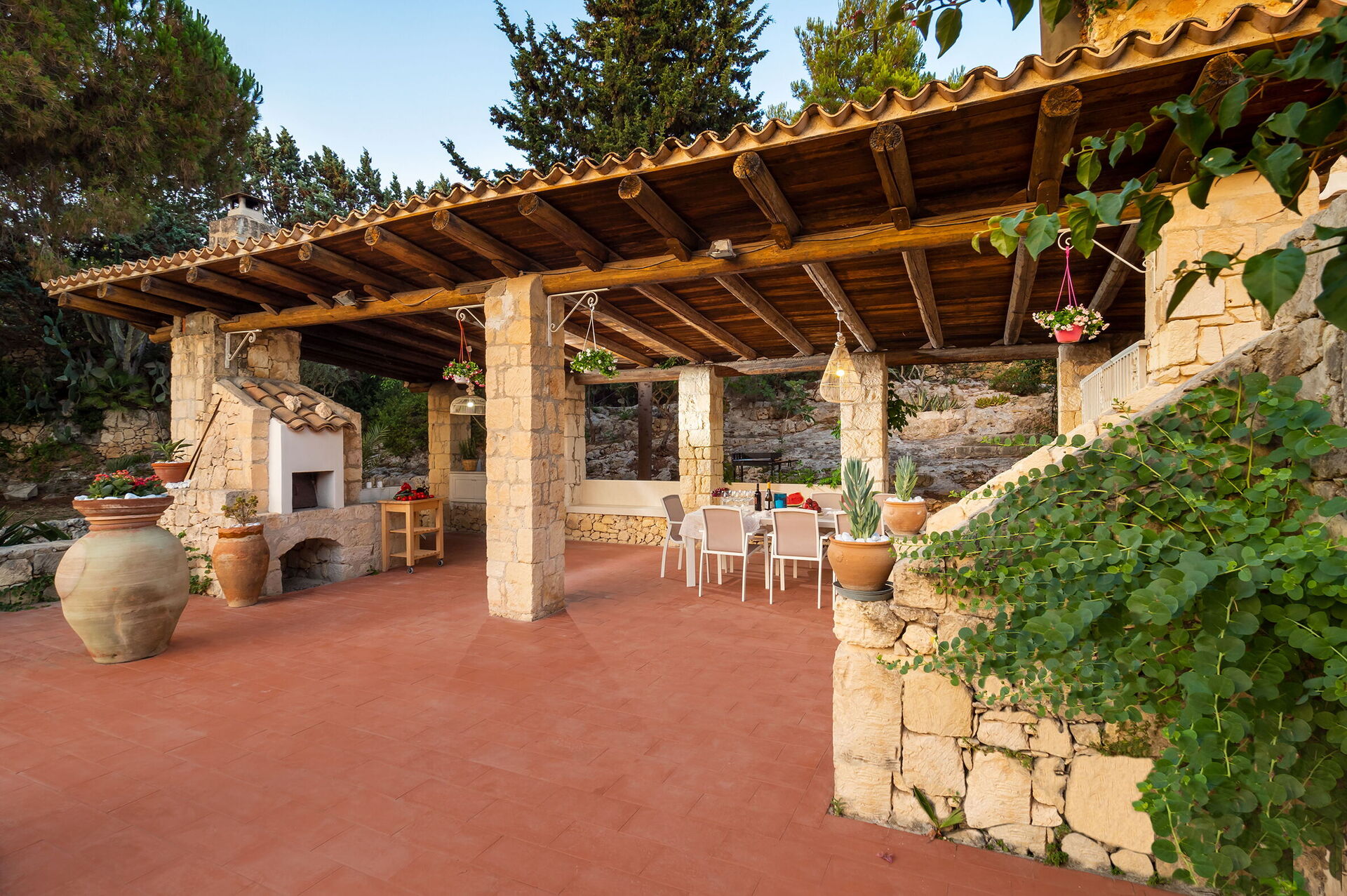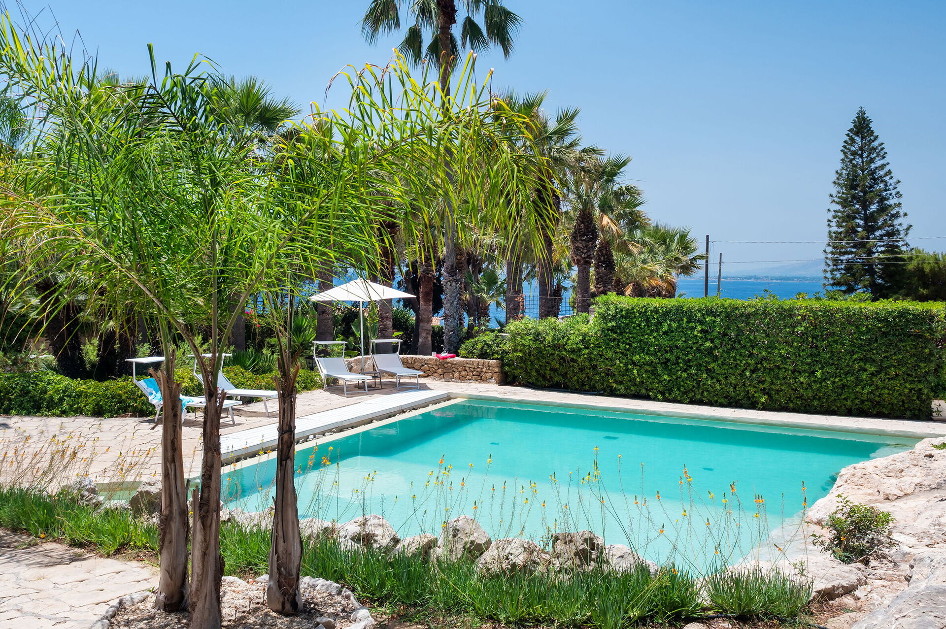 Villa Diamante è una meravigliosa residenza con piscina privata (7x10 m, profondità 1,20-1,80 m) con splendida vista sul mare, situata vicino alla costa rocciosa e al mare cristallino del Plemmirio, noto per la sua bellezza e la sua limpidezza, un'area marina protetta a sud di Siracusa, in Sicilia. Il giardino circostante è lussureggiante e piantumato con piante mediterranee, creando un'atmosfera suggestiva. La residenza dispone di un'ampia terrazza coperta con una cucina esterna, barbecue e forno a legna, ideale per momenti conviviali all'aperto. La proprietà si divide in casa principale su 2 piani e dependance. Su richiesta e a pagamento sono disponibili: noleggio di auto e barche, trasferimenti. Posizione ideale per raggiungere Siracusa e il suo centro storico, nonché alcune delle più belle spiagge della zona, come Arenella e Fontane Bianche. Sono inoltre a breve distanza attrazioni turistiche come la riserva naturale di Vendicari, i borghi marinari di Marzamemi e Portopalo, e le città barocche di Noto, Modica, Scicli e Ragusa Ibla. Possibilità di prenotare con prezzo ridotto soltanto 6 posti letto con 3 camere e 3 bagni, chiudendo la dependance.