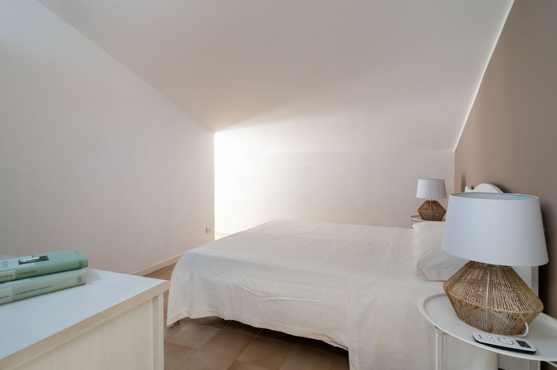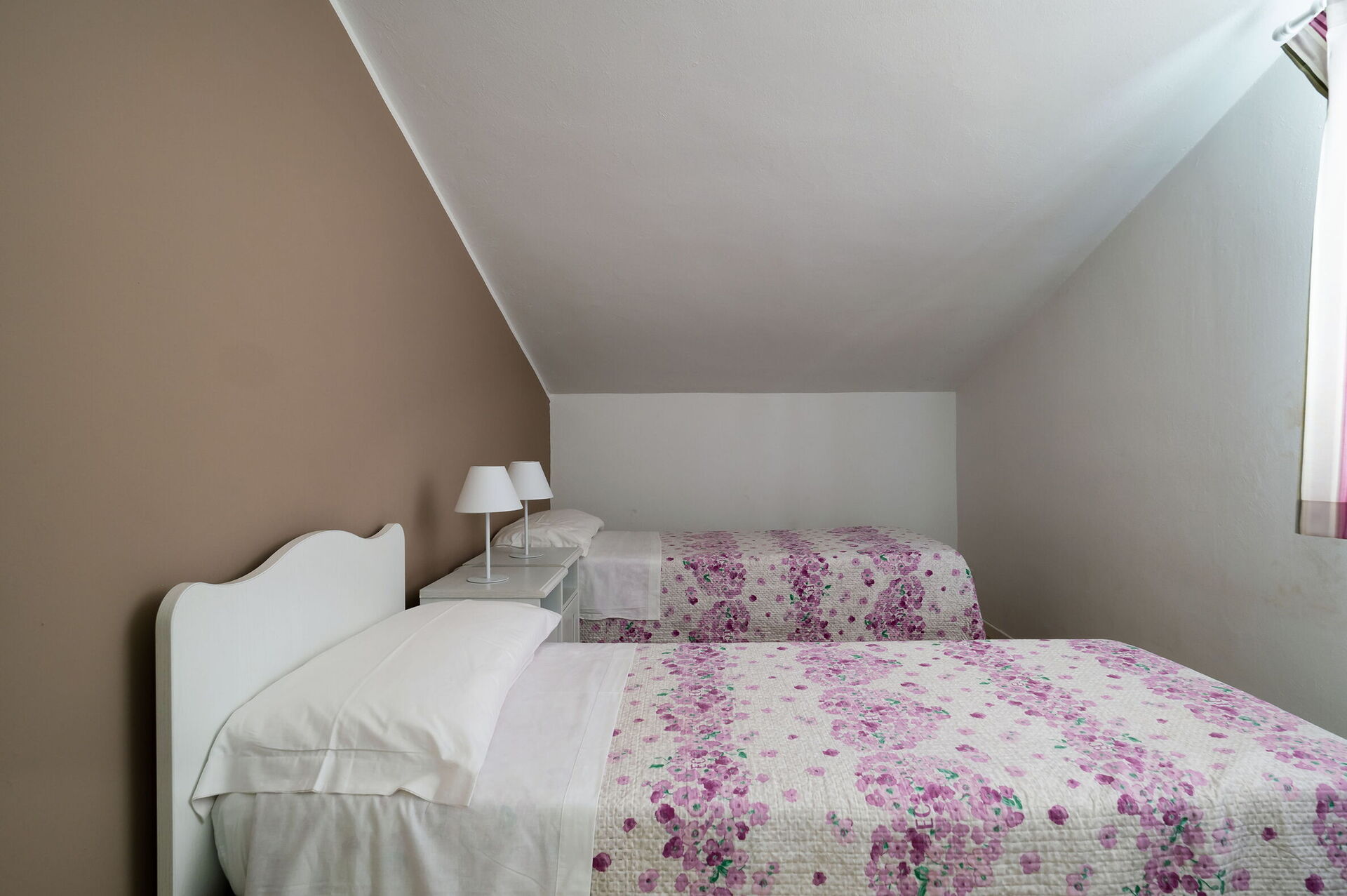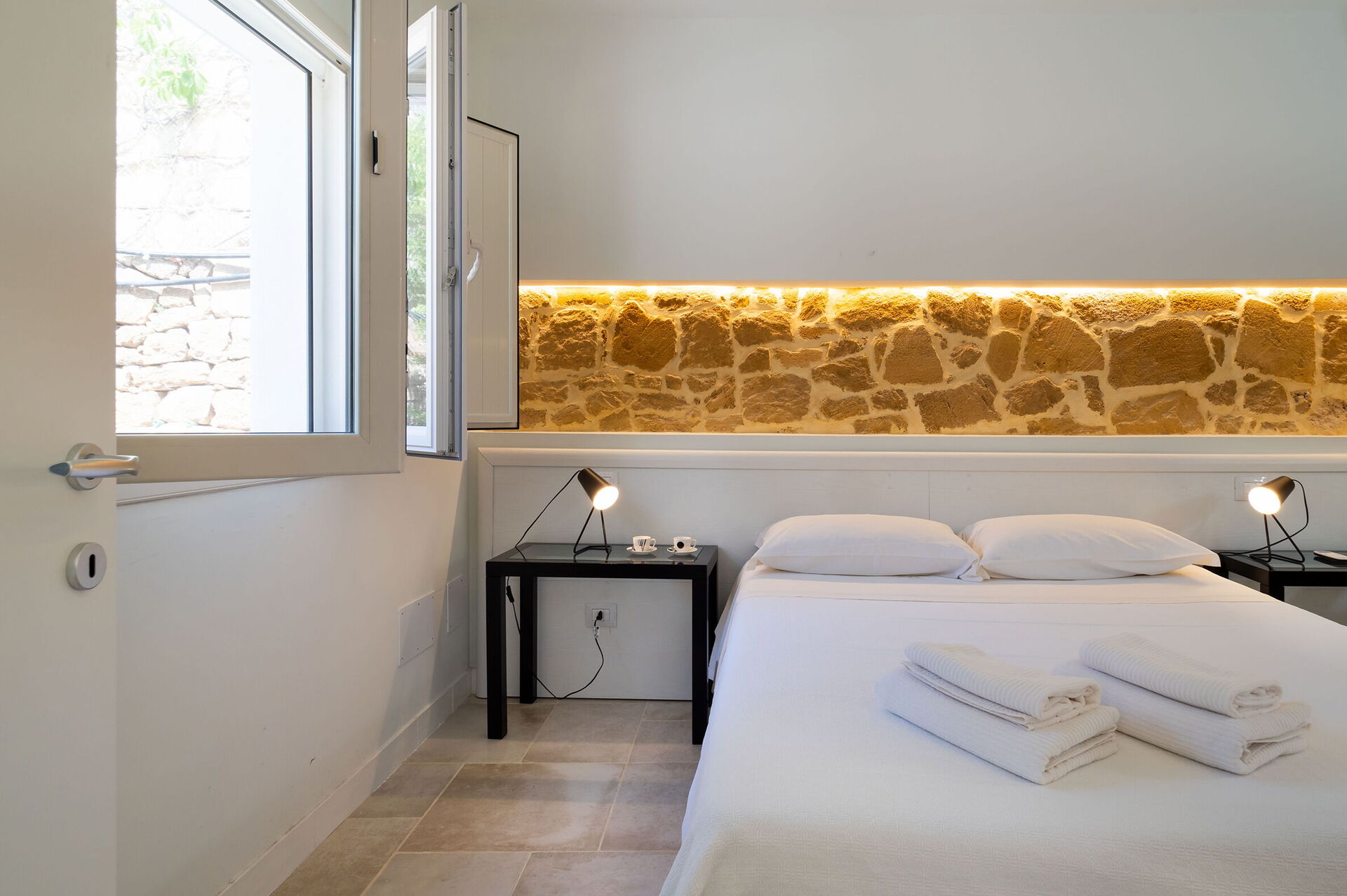 CASA PRINCIPALE: Primo Piano: ampio living con TV e zona pranzo, cucina, 1 camera matrimoniale (letto cm 180x200), 1 bagno con doccia, terrazza. Secondo Piano: 1 camera matrimoniale (letto cm 160x200), 1 camera doppia (letti cm 80x200), 1 bagno con doccia. DEPENDANCE (ingresso dall’esterno): 1 camera matrimoniale (letto cm 180x200) con bagno-doccia e terrazzino, 1 camera matrimoniale (letto cm 180x200) con bagno-doccia, patio.