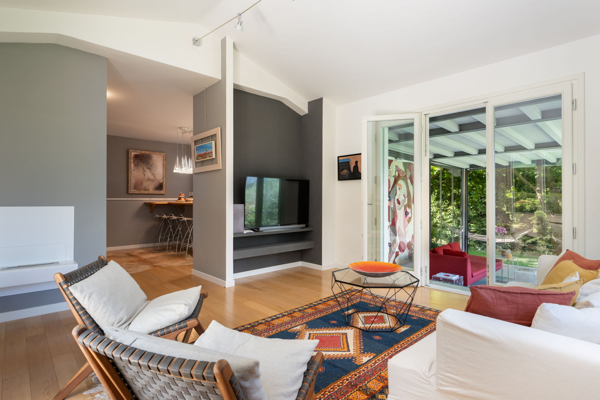 La villa si estende su due livelli ed è stata ristrutturata con gusto ed eleganza dai proprietari.