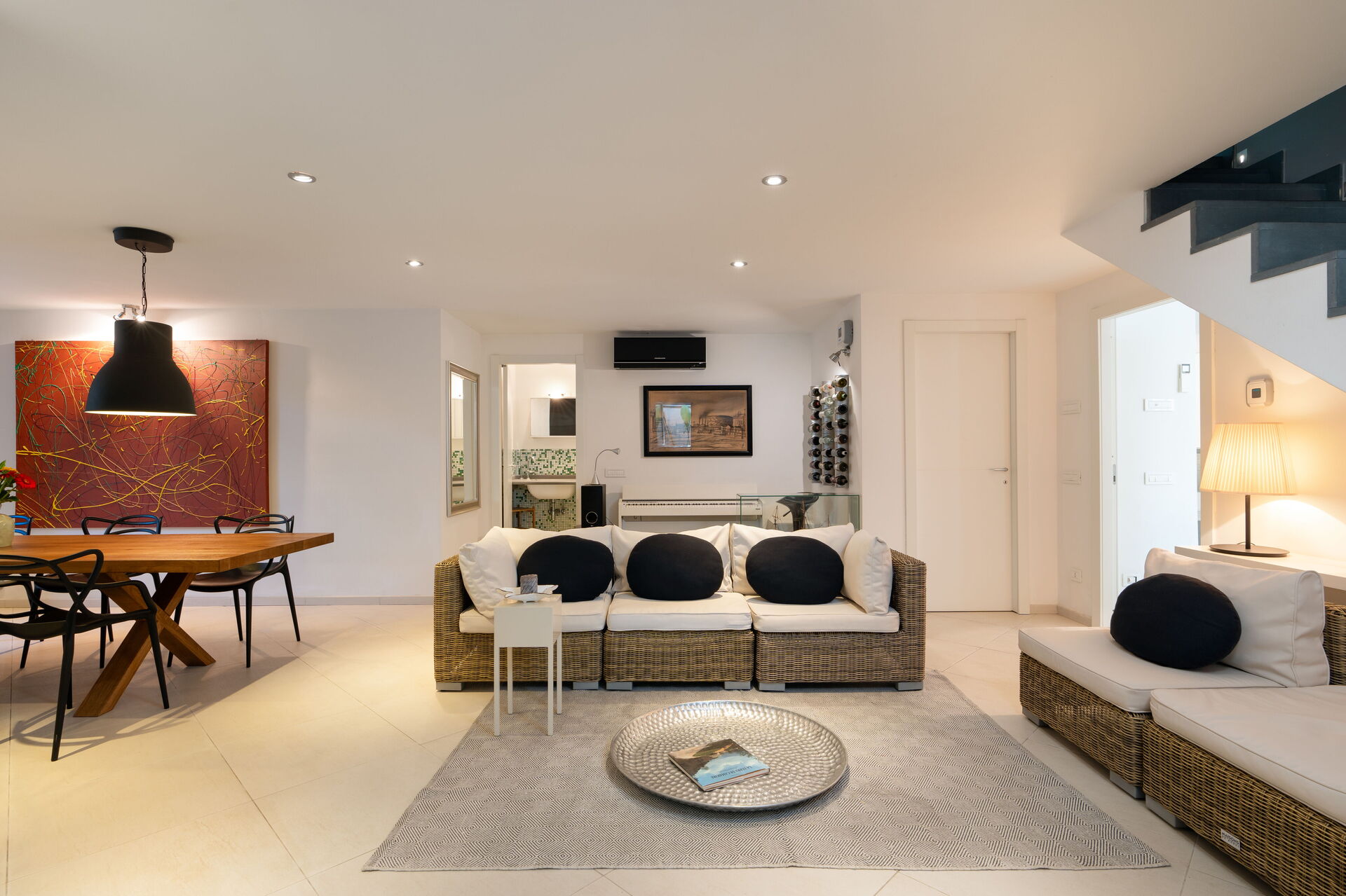Aria condizionata, Cucina ben attrezzata, Divano, Forno, Freezer, Frigo, Internet WiFi, Lavastoviglie, Macchina da caffè (Italiana), Microonde, Piano Cottura, Tavolo da pranzo, TV Satellitare