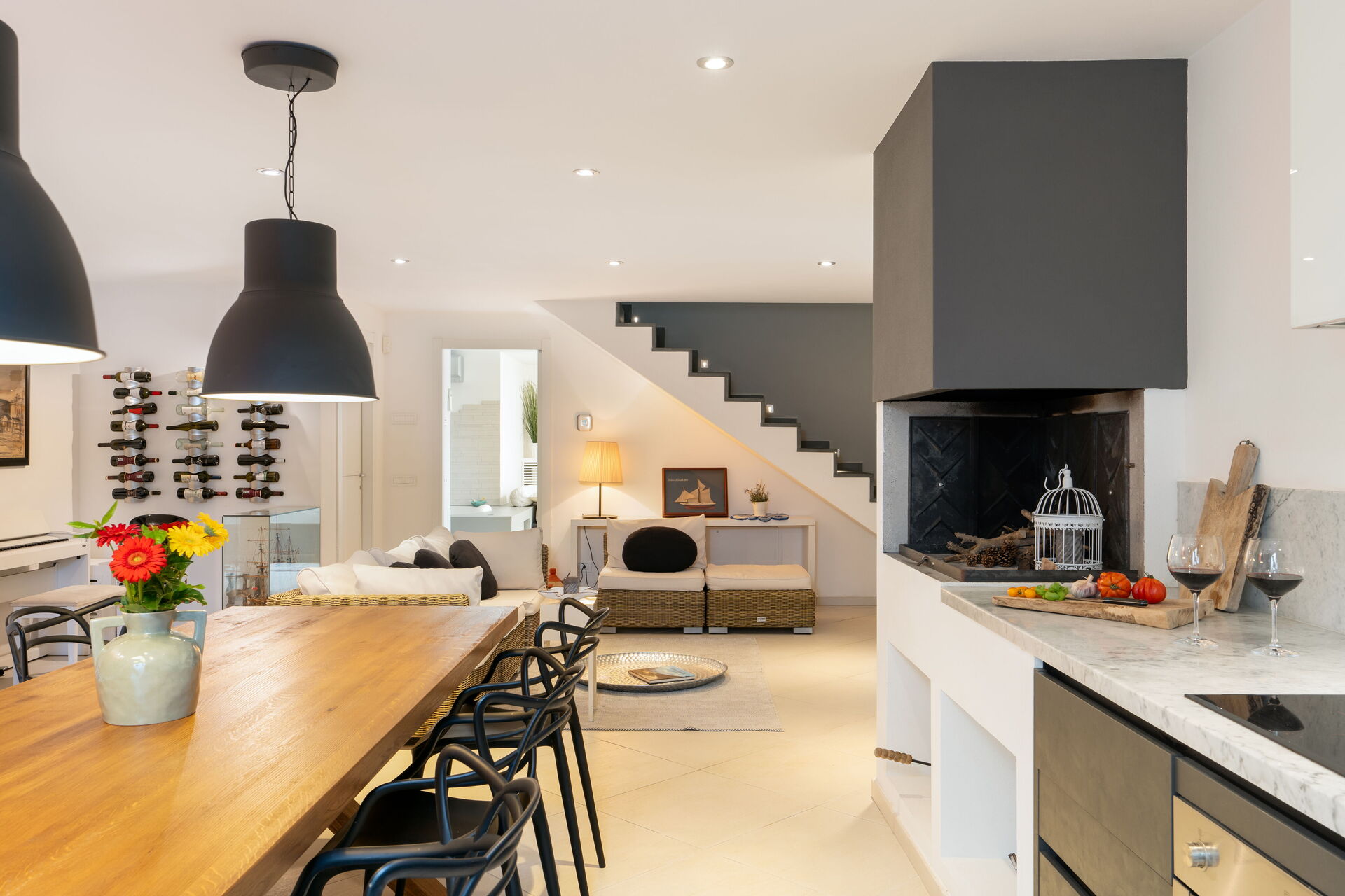 Piano terra: 2 soggiorni di cui uno con TV, cucina con piano a induzione, forno elettrico, lavastoviglie, macchina del caffè americana, macchina del caffè espresso. Lavabo, cappa e frigo.
