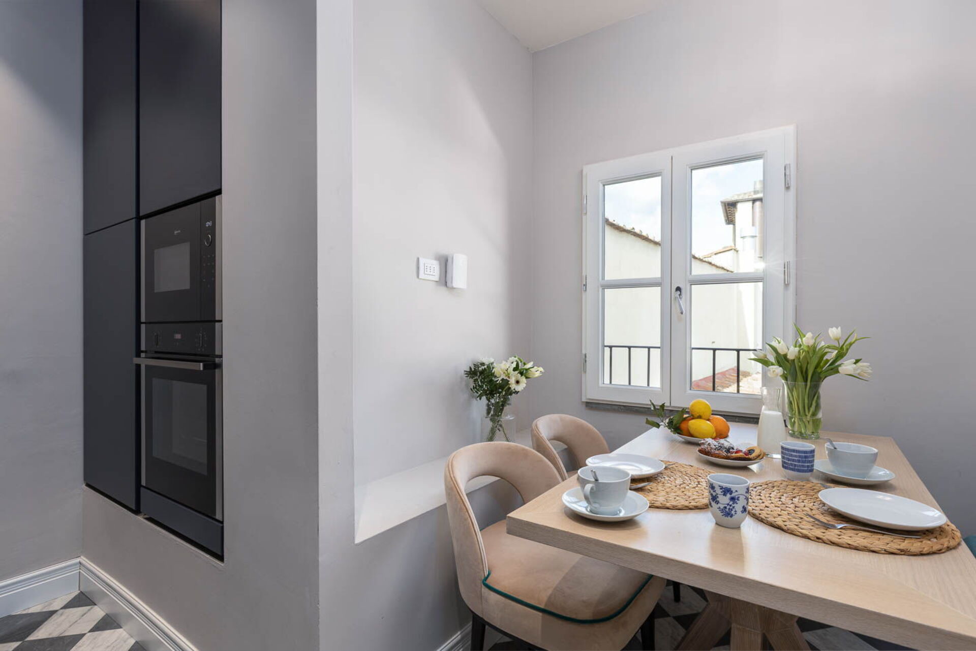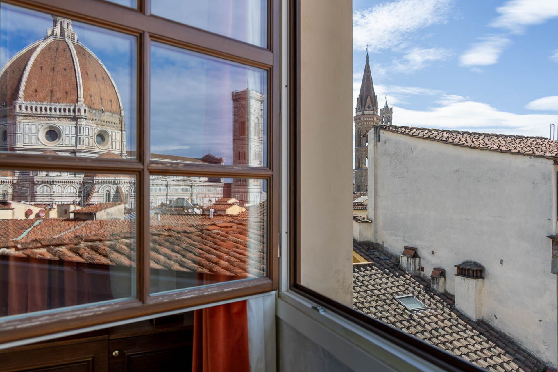 Lussuoso appartamento con vista panoramica sul Duomo di Firenze disposto su 4 piani. L'alloggio, su più piani, dispone di due spaziose suites matrimoniali, ognuna con bagno privato completo di doccia, letti queen-size e SMART TV da 50 pollici. La disposizione delle camere, separata dal suggestivo soggiorno, garantisce la massima privacy durante la vostra permanenza. Doppio soggiorno, di cui uno con questa meravigliosa vista, offre un'atmosfera unica ed elegante, l'altro con il divano letto matrimoniale. La cucina professionale, dal design impeccabile, è dotata di tutti gli elettrodomestici, tra cui forno, microonde, frigorifero e macchina del caffè, oltre a tutti gli utensili necessari.
