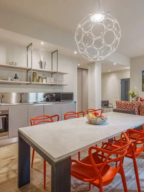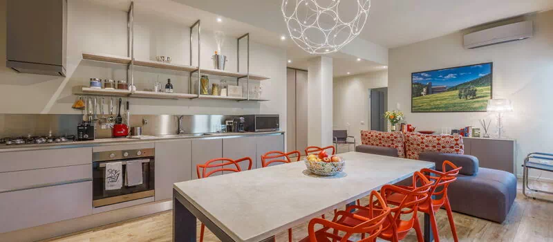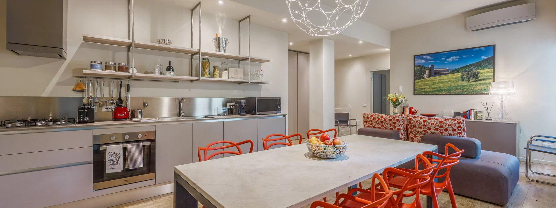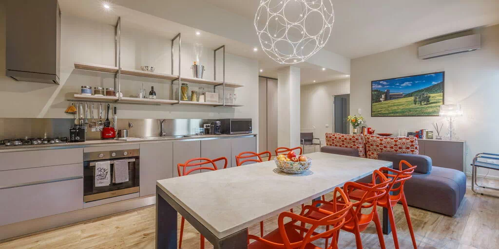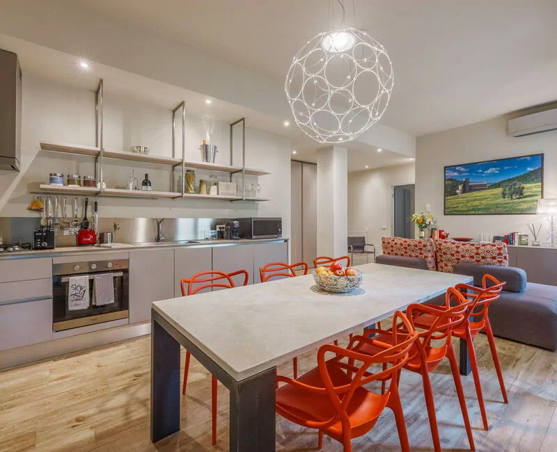 Aria condizionata, Cucina ben attrezzata, Divano, Forno, Freezer, Frigo, Internet WiFi, Lavastoviglie, Microonde, Piano Cottura, Tavolo da pranzo