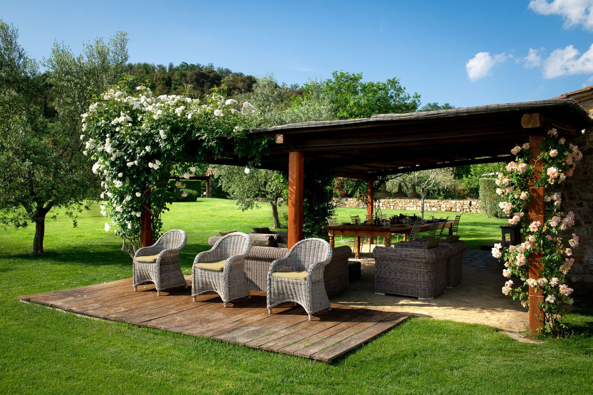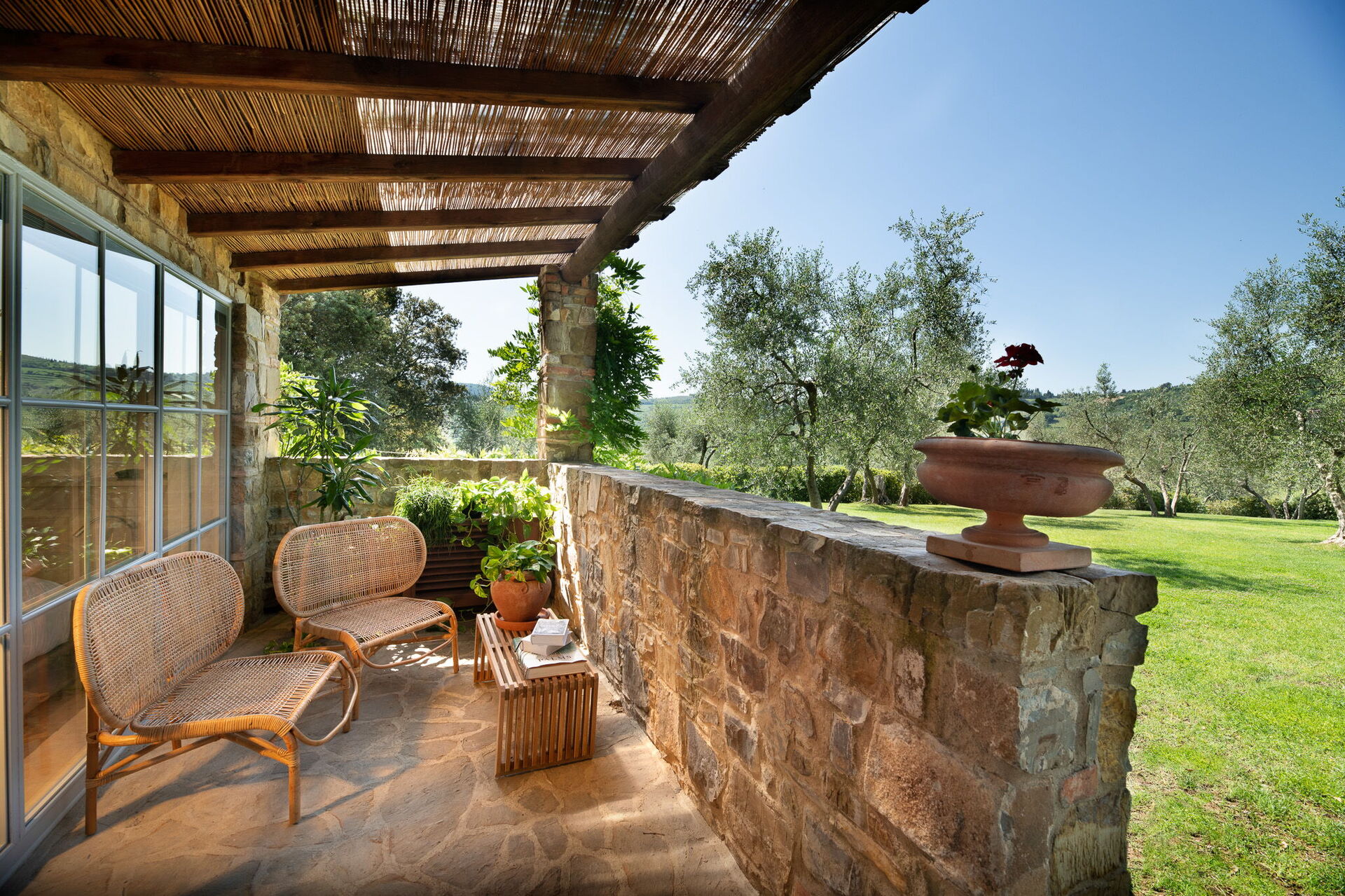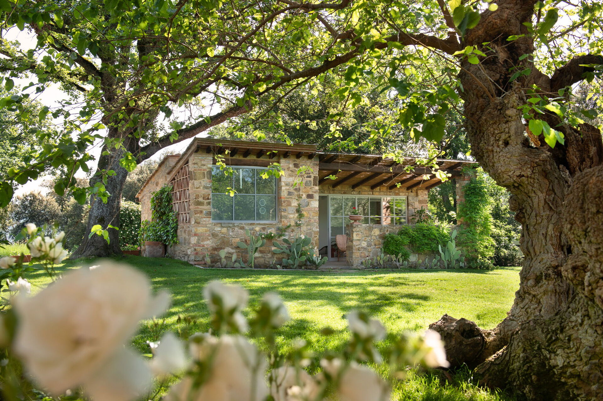 Immerso in una radura incantata, tra boschi di querce e filari di vigneti, sorge il giardino del Prato: un autentico angolo di pace composto da quattro unità abitative in pietra, armoniosamente unite da uno stile di campagna classico ed elegante. Circondato da un rigoglioso giardino fiorito, il complesso offre un'esperienza sensoriale unica: morbidi prati verdi, alberi di fico, piccoli meli, olivi, cespugli di rosmarino e lavanda profumata si intrecciano tra loro, incorniciati da grandi querce che regalano ombra e frescura.