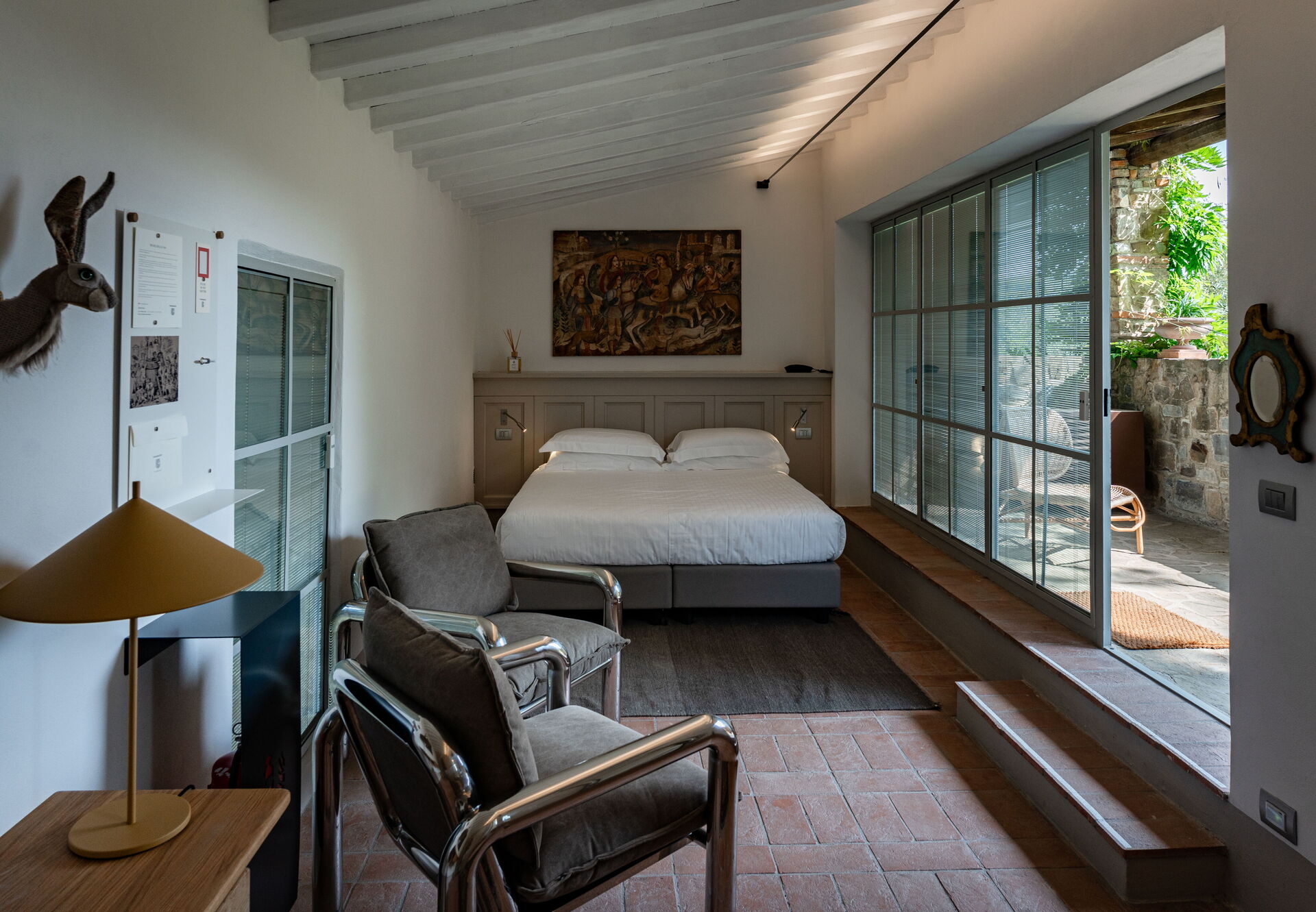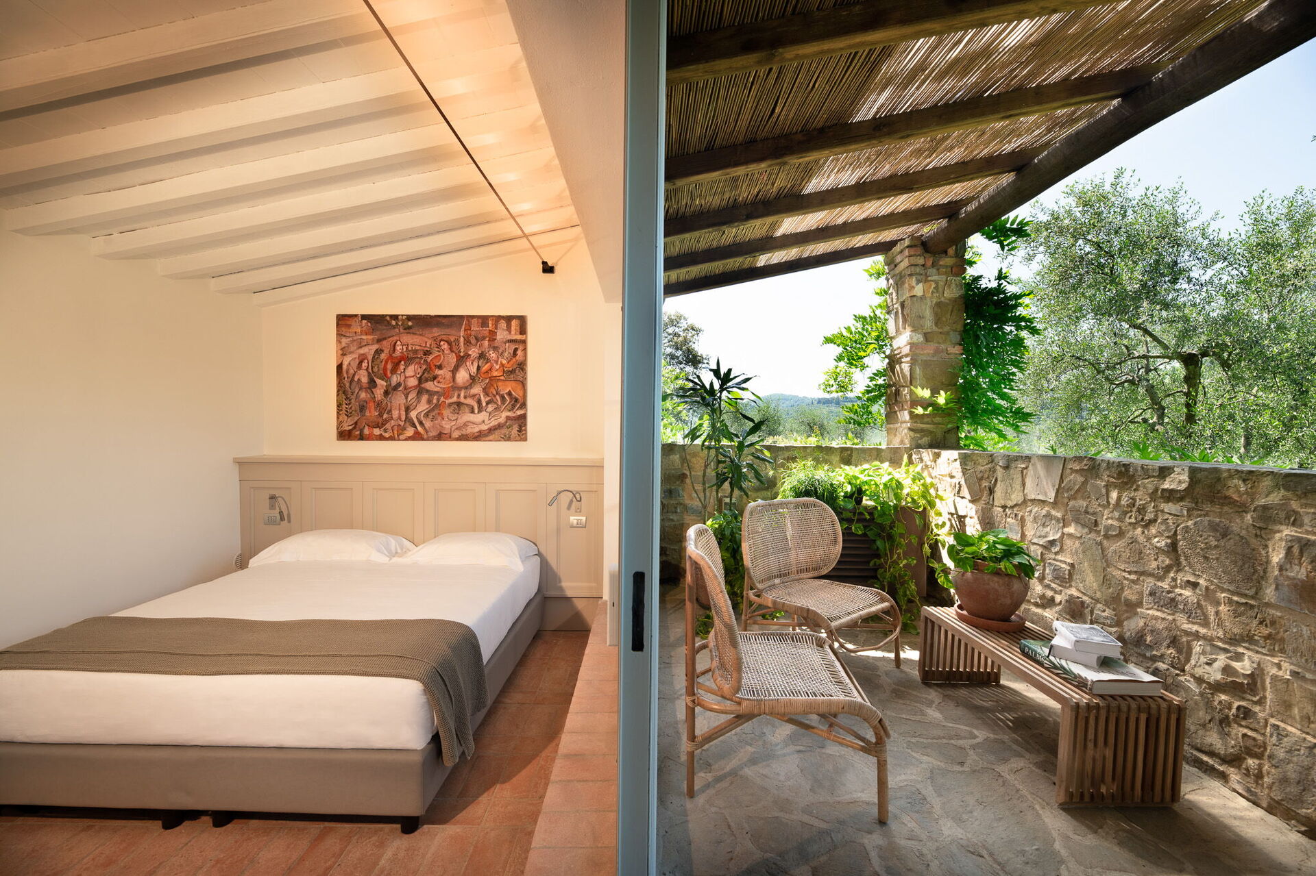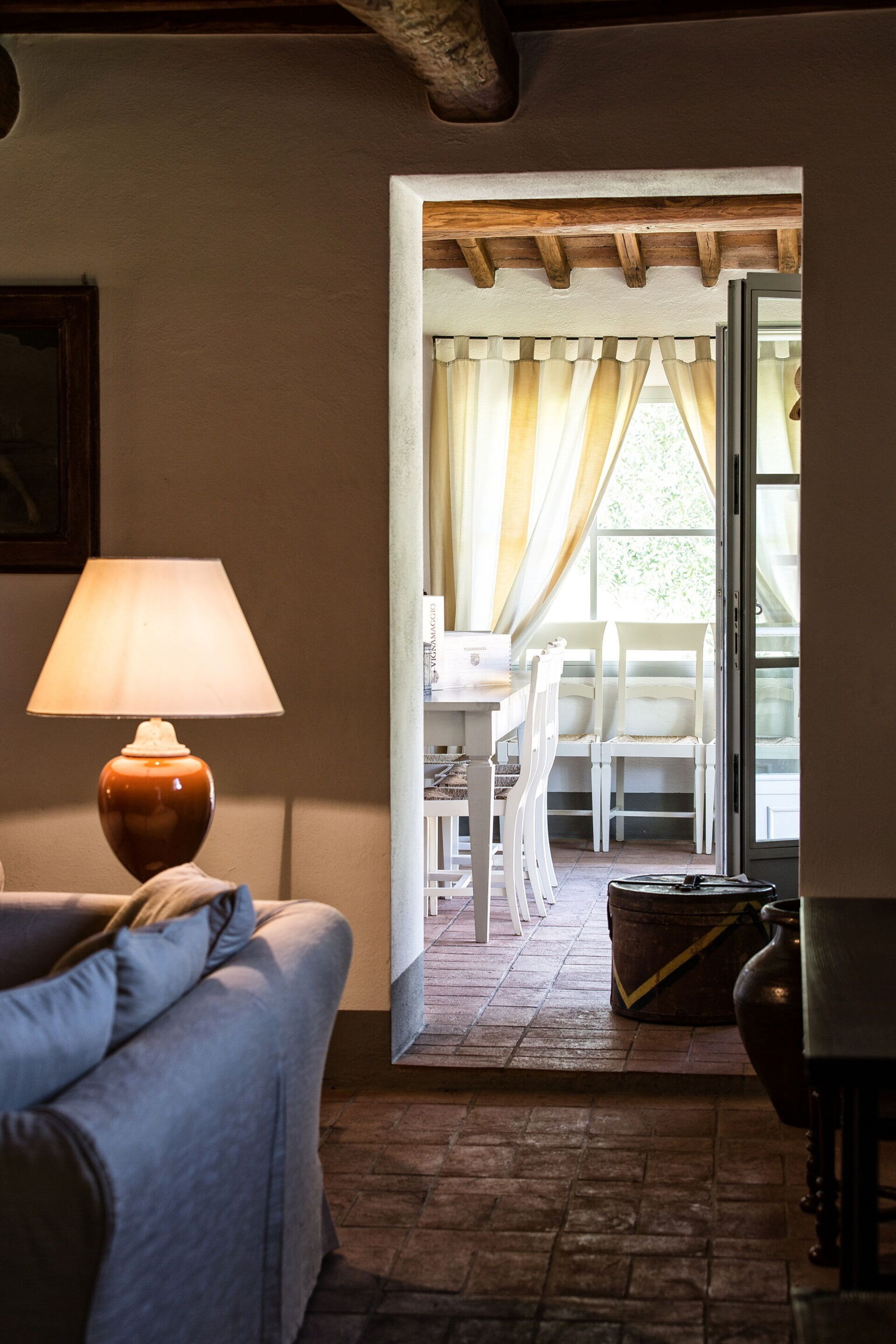 Immerso in una radura incantata, tra boschi di querce e filari di vigneti, sorge il giardino del Prato: un autentico angolo di pace composto da quattro unità abitative in pietra, armoniosamente unite da uno stile di campagna classico ed elegante. Circondato da un rigoglioso giardino fiorito, il complesso offre un'esperienza sensoriale unica: morbidi prati verdi, alberi di fico, piccoli meli, olivi, cespugli di rosmarino e lavanda profumata si intrecciano tra loro, incorniciati da grandi querce che regalano ombra e frescura.