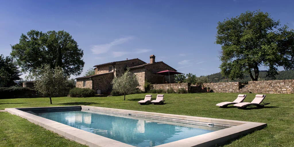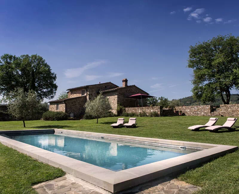Un sentiero in pietra collega le tre abitazioni principali a una splendida piscina panoramica, ideale per rilassarsi al sole su comodi lettini. Poco distante, una palestra attrezzata completa l’offerta di benessere, con docce e bagno turco per un’esperienza rigenerante a contatto con la natura. Un rifugio esclusivo dove il tempo rallenta e la bellezza del paesaggio toscano si fonde con comfort e autenticità. Spazio per cucinare all'aperto.