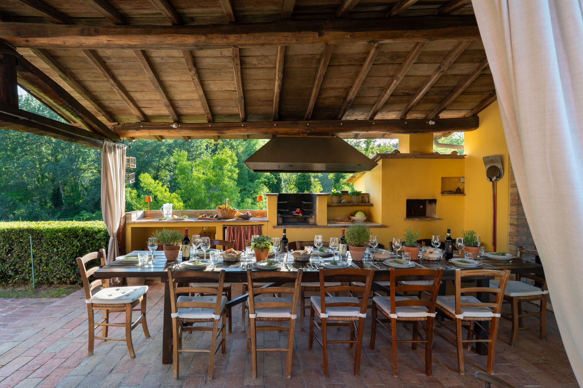 Per concludere la giornata nel migliore dei modi siediti a tavola nella piacevole area barbecue con forno a legna, proprio davanti alla villa, e gusta i prodotti tipici della tradizione gastronomica Toscana nella magica atmosfera della sera.