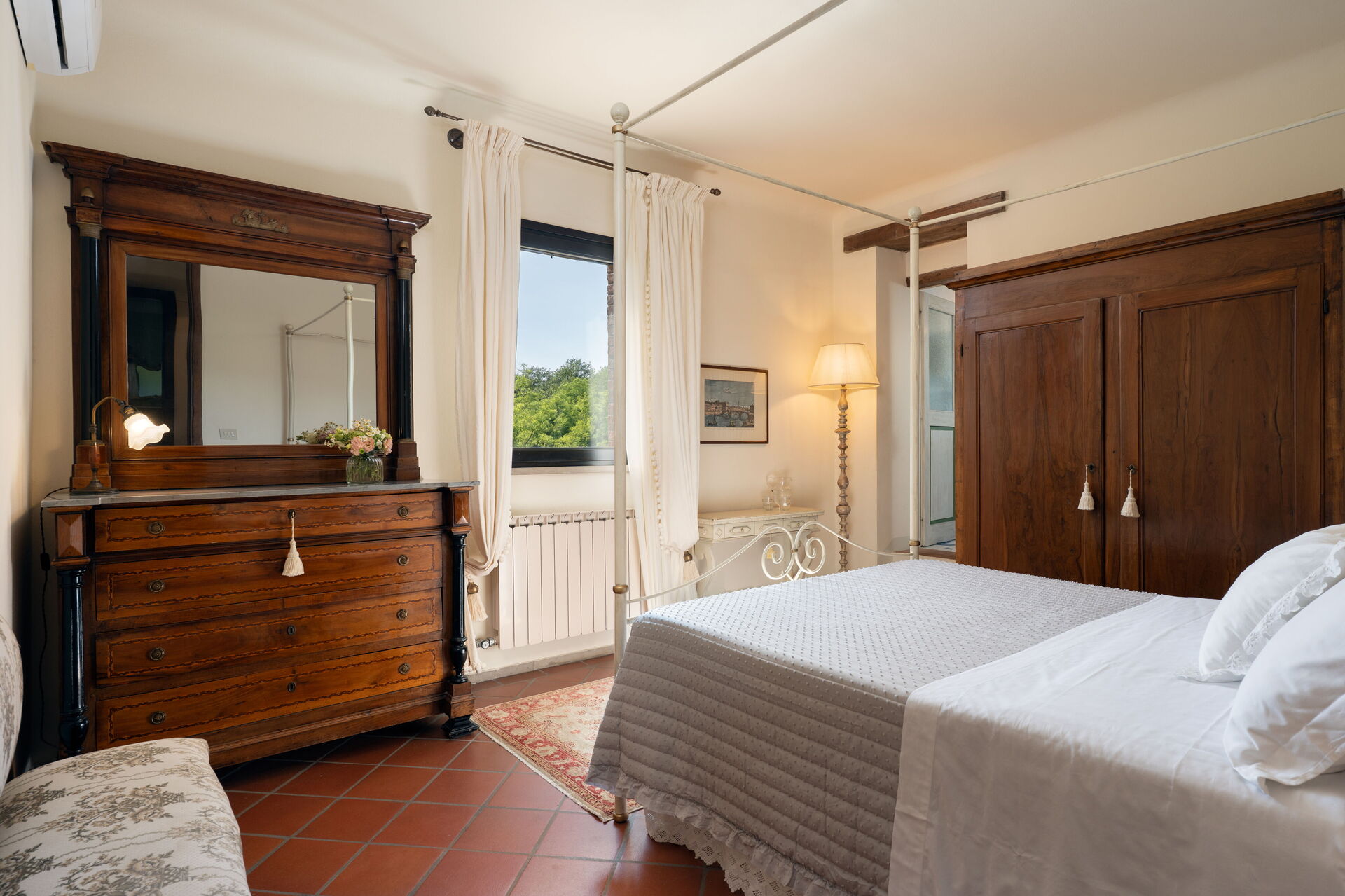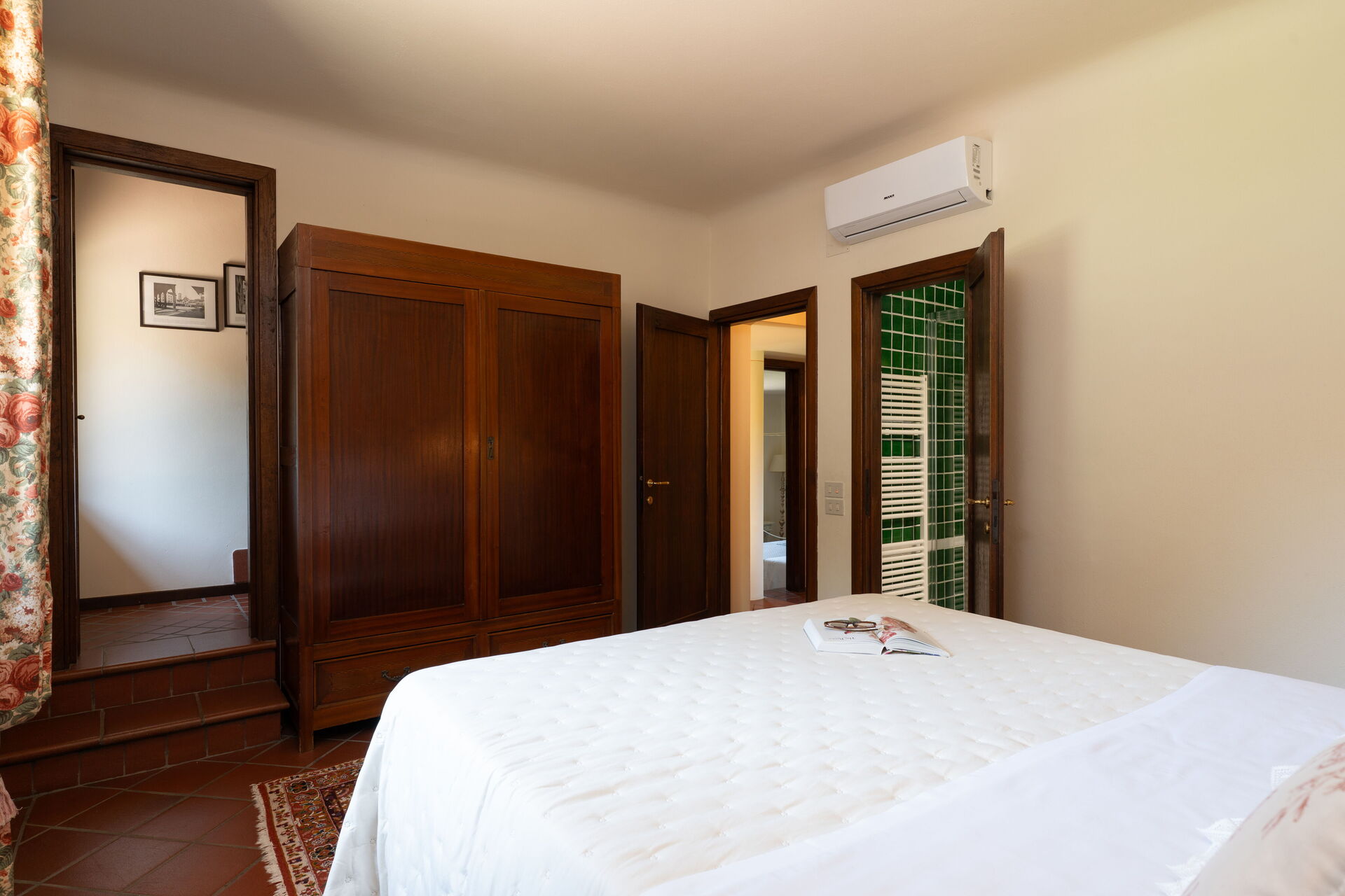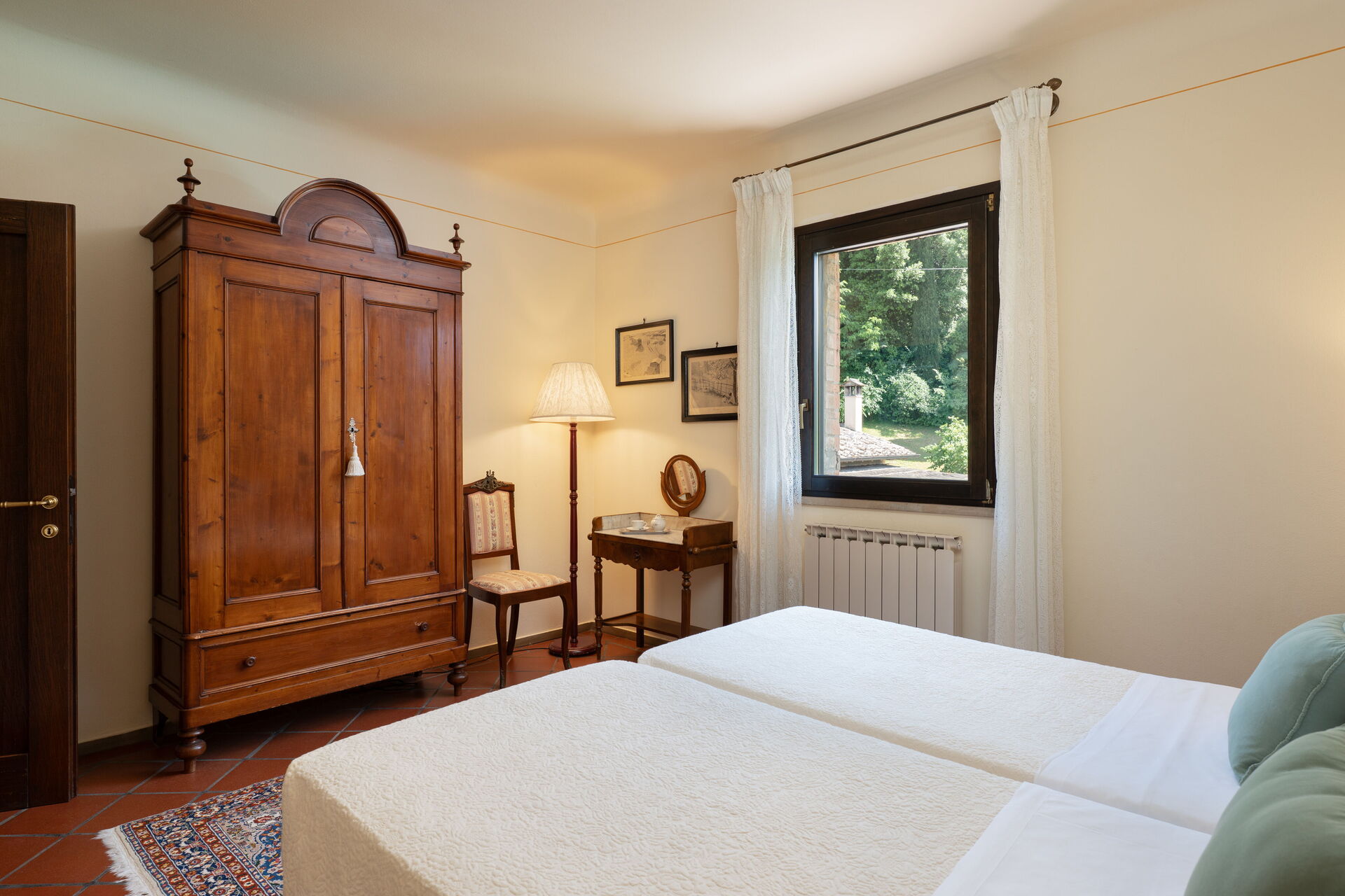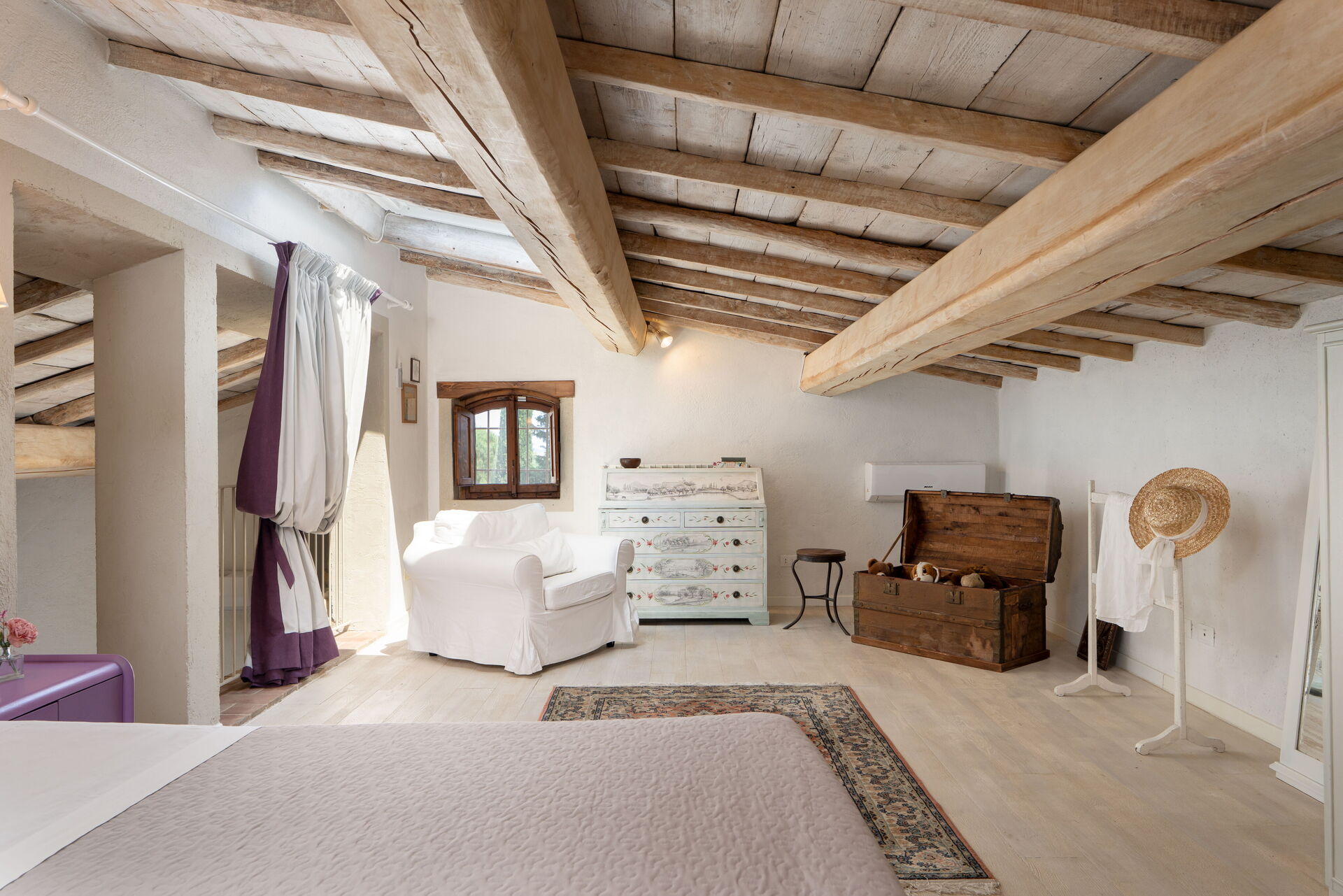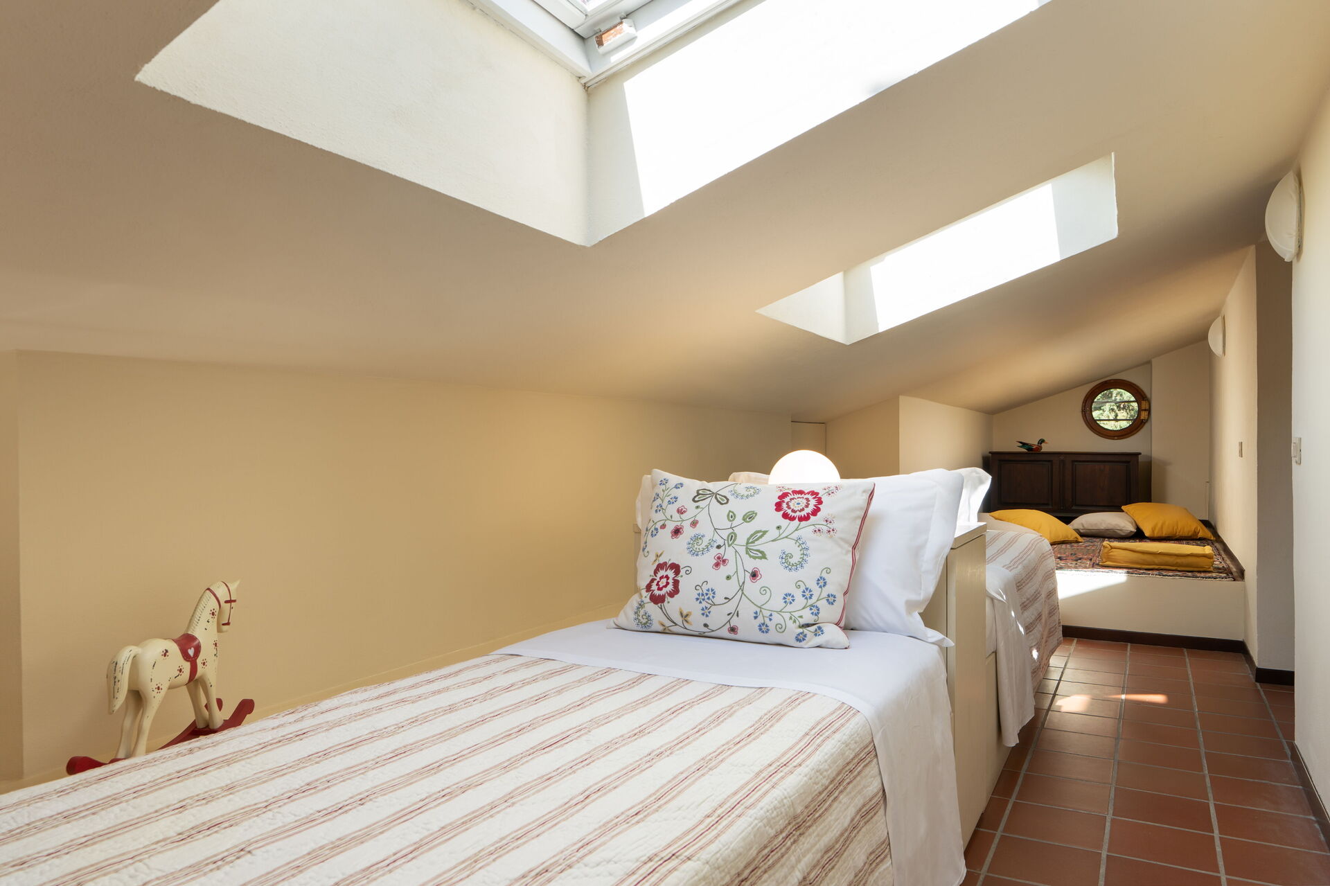 Ai piani superiori ti aspettano cinque camere da letto, arredate in modo raffinato, di cui 4 con bagno privato. Da una delle camere matrimoniali è possibile accedere alla quinta camera con due letti singoli, che si trova nel caratteristico sottotetto della villa dove i più piccoli rimangono sempre affascinati dalla sua magica atmosfera.
