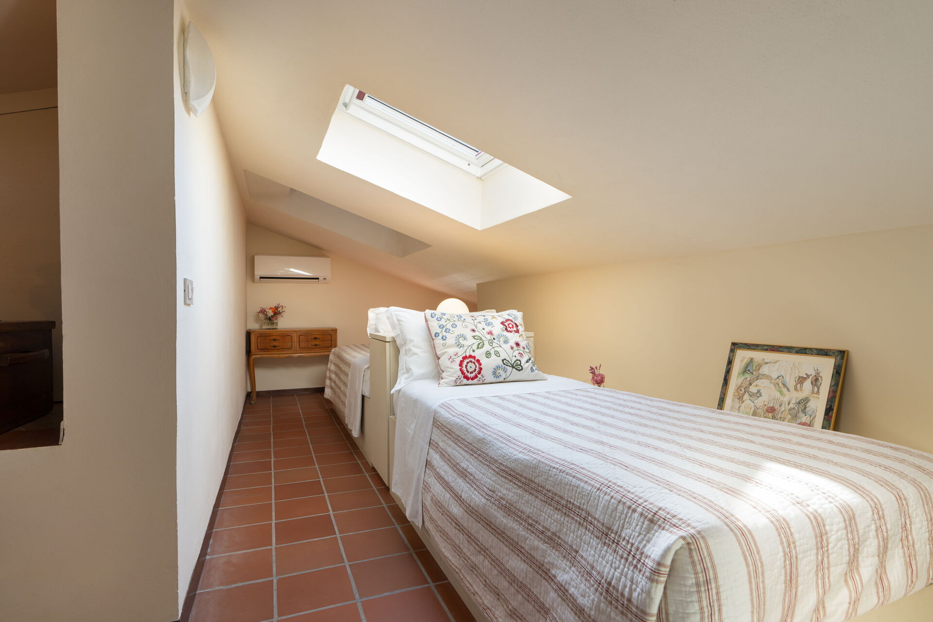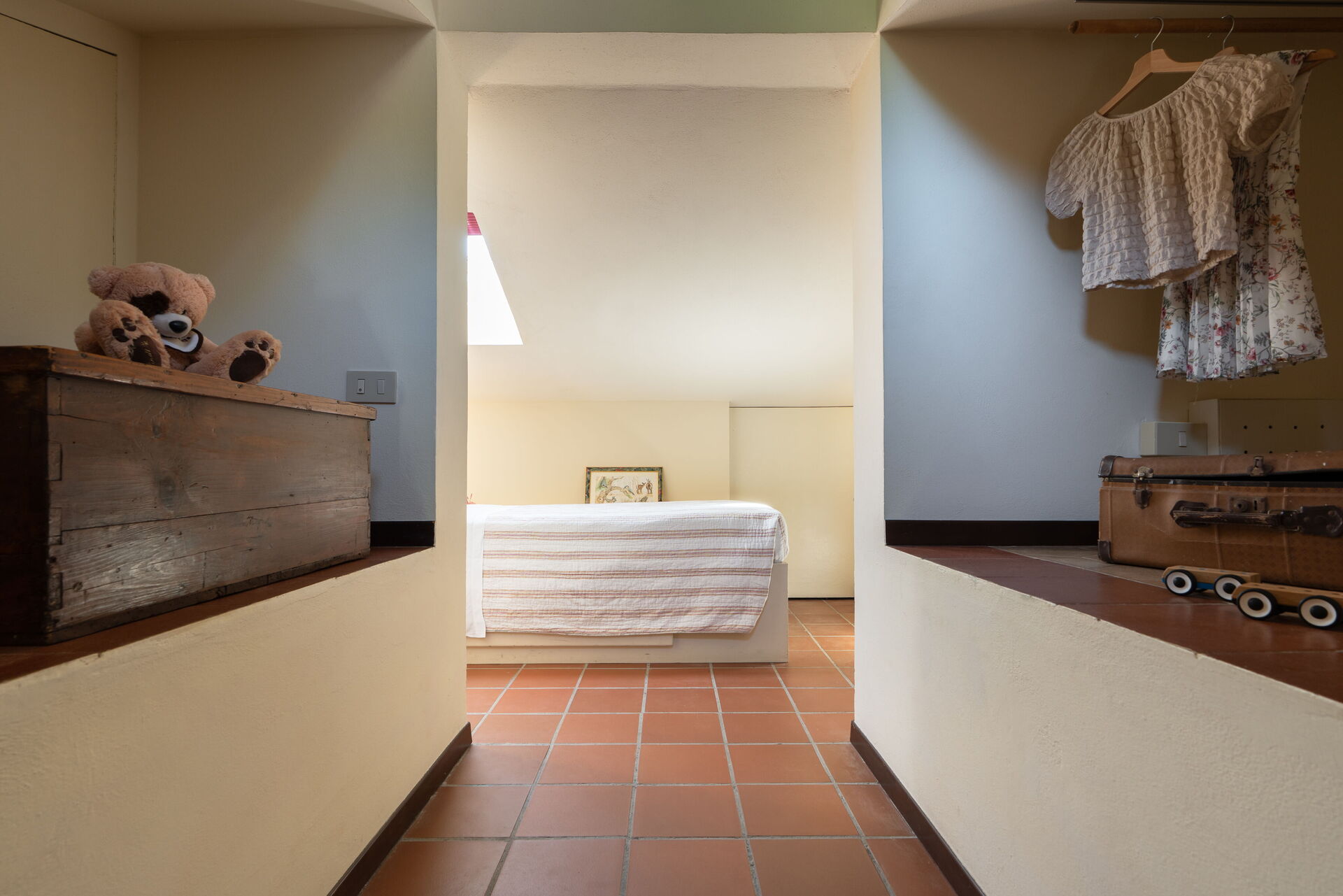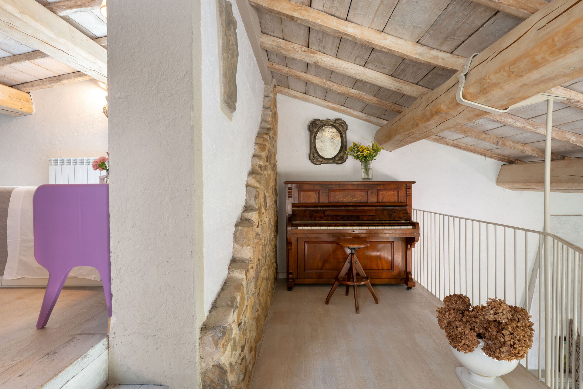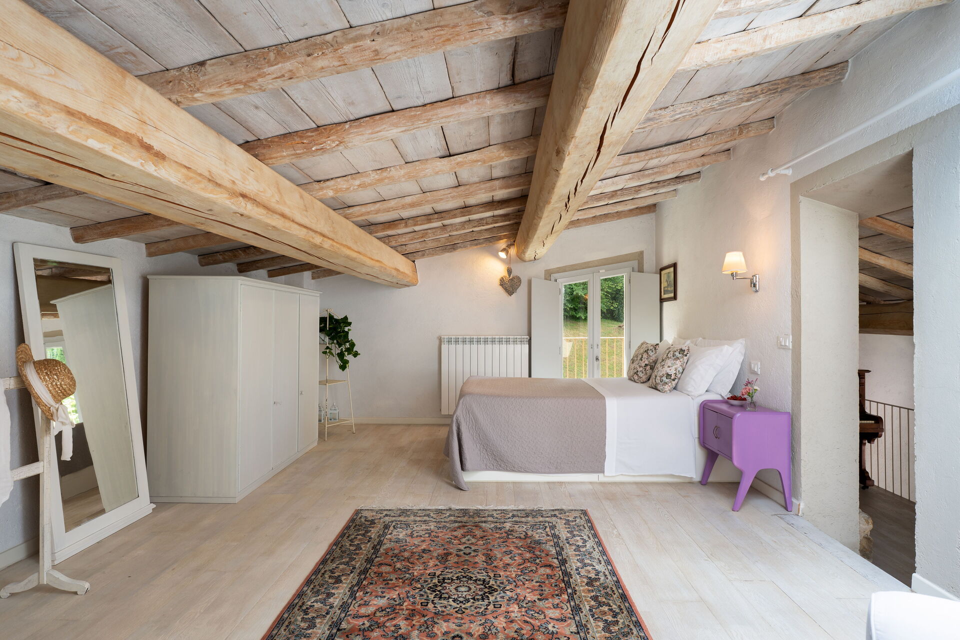 Ai piani superiori ti aspettano cinque camere da letto, arredate in modo raffinato, di cui 4 con bagno privato. Da una delle camere matrimoniali è possibile accedere alla quinta camera con due letti singoli, che si trova nel caratteristico sottotetto della villa dove i più piccoli rimangono sempre affascinati dalla sua magica atmosfera.