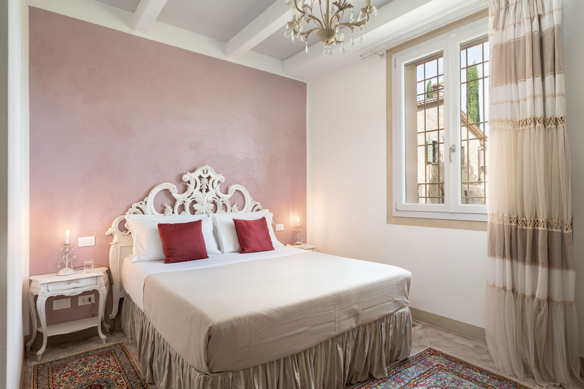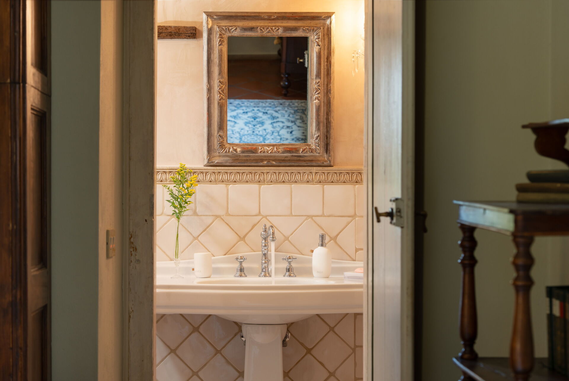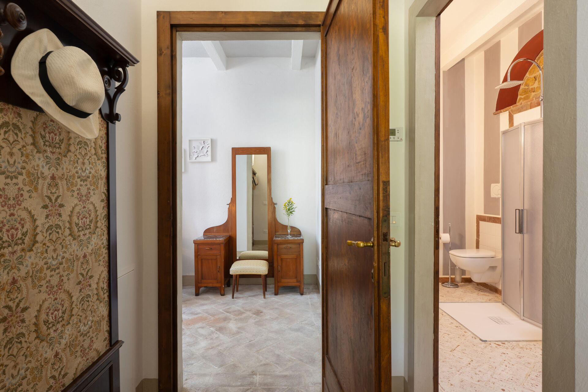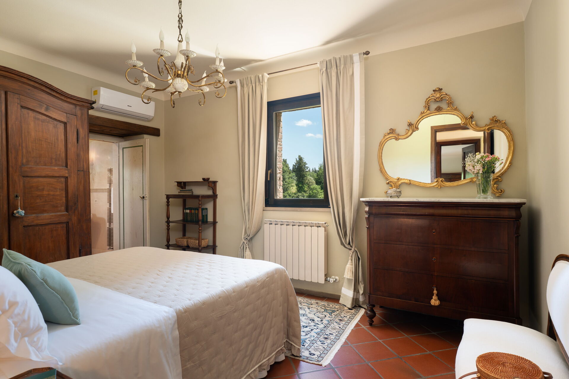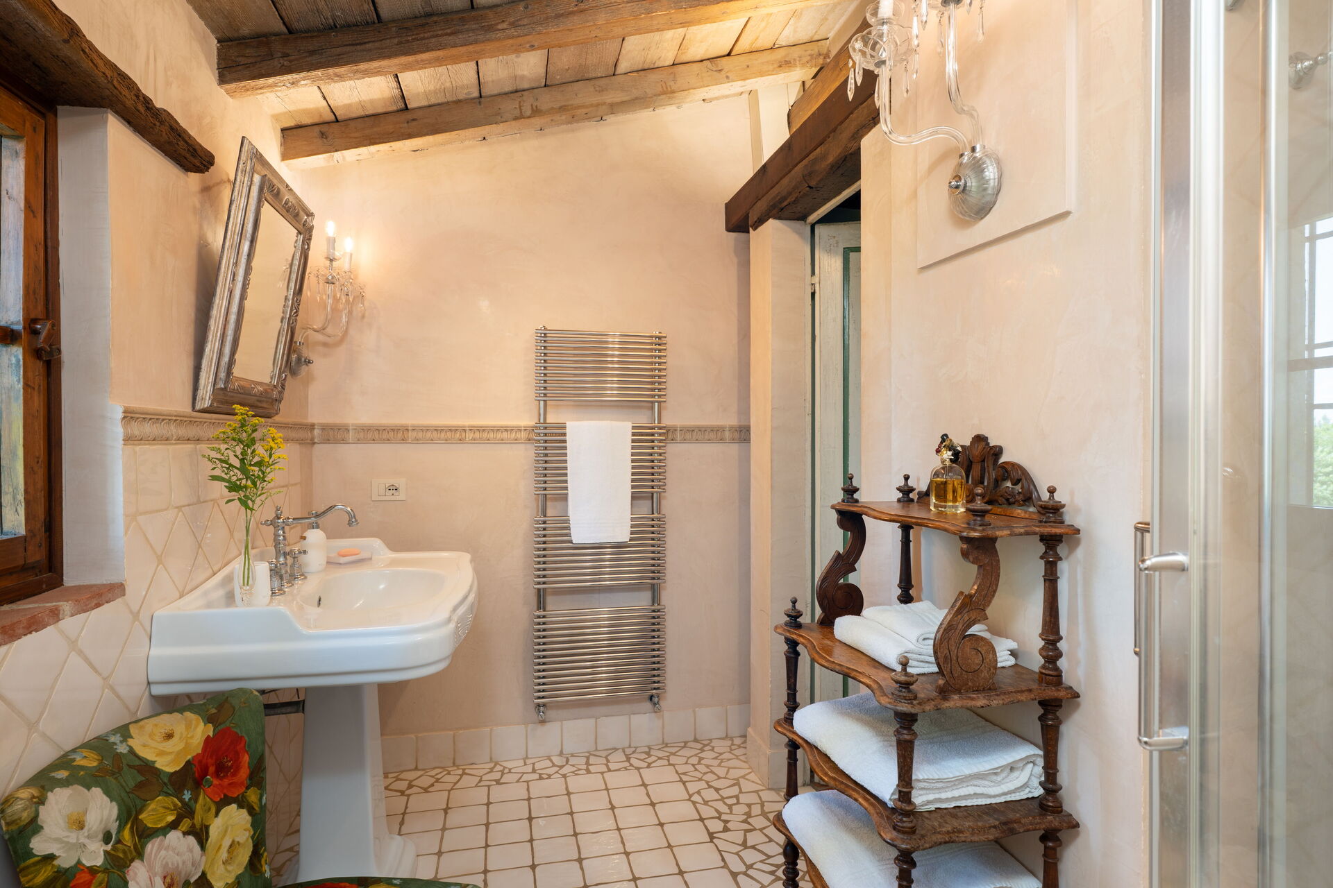 Ai piani superiori ti aspettano cinque camere da letto, arredate in modo raffinato, di cui 4 con bagno privato. Da una delle camere matrimoniali è possibile accedere alla quinta camera con due letti singoli, che si trova nel caratteristico sottotetto della villa dove i più piccoli rimangono sempre affascinati dalla sua magica atmosfera.