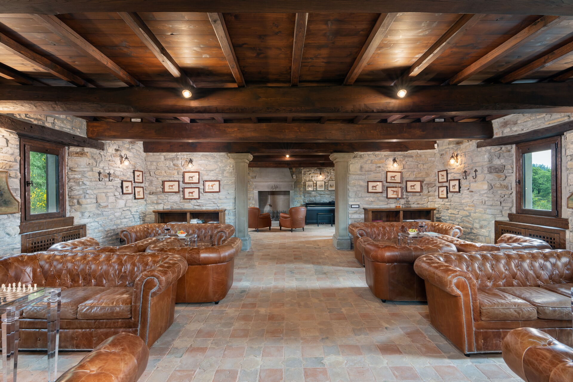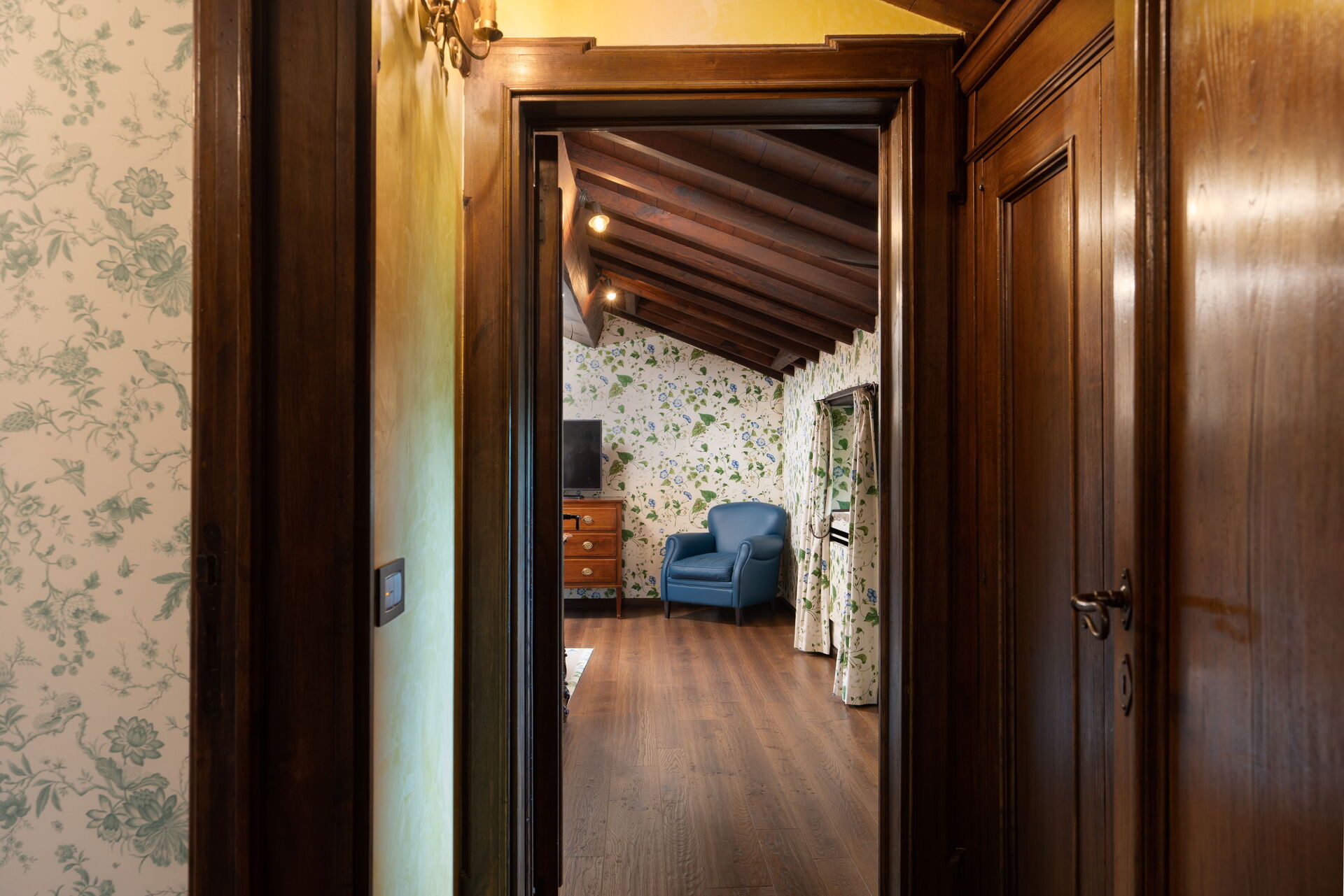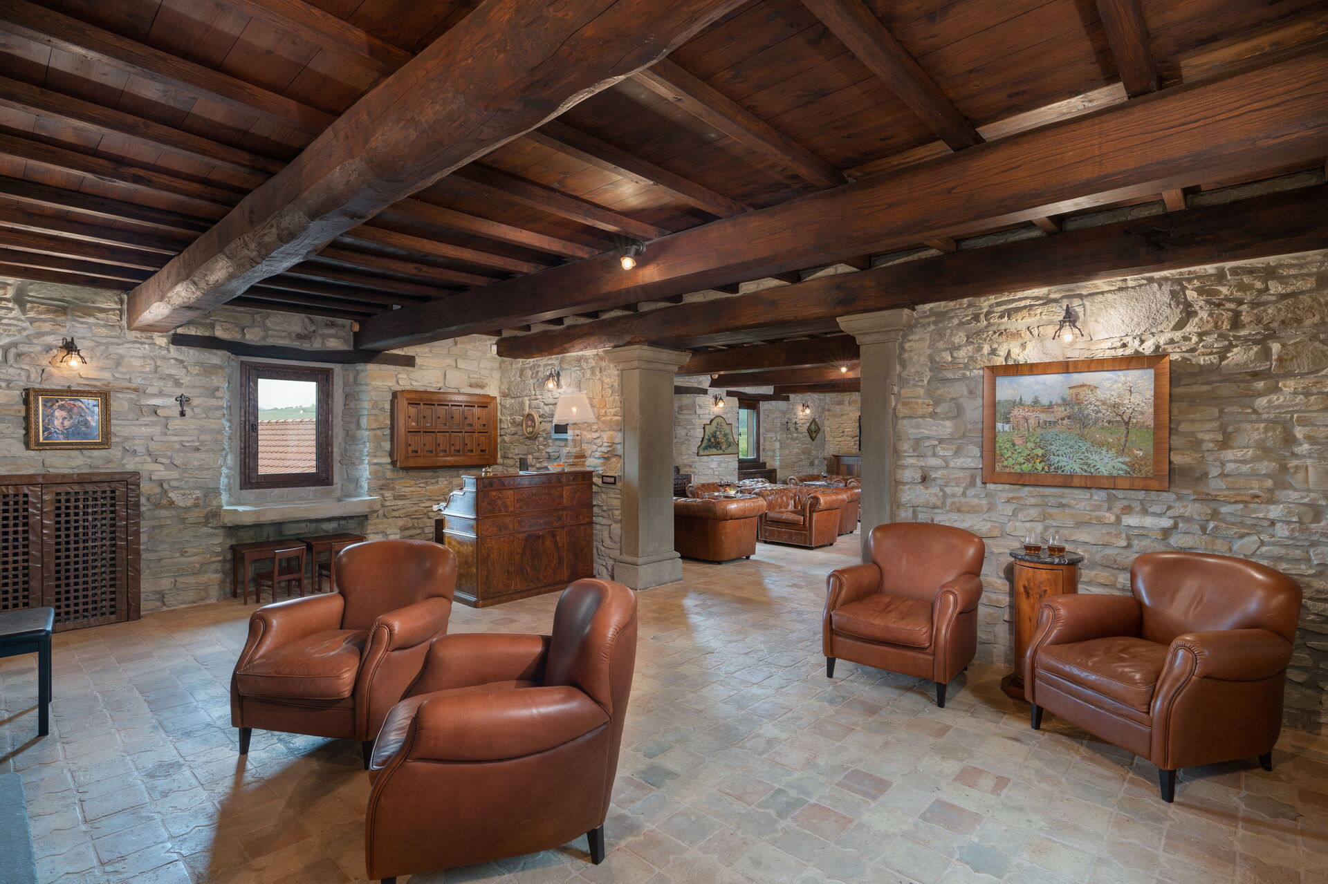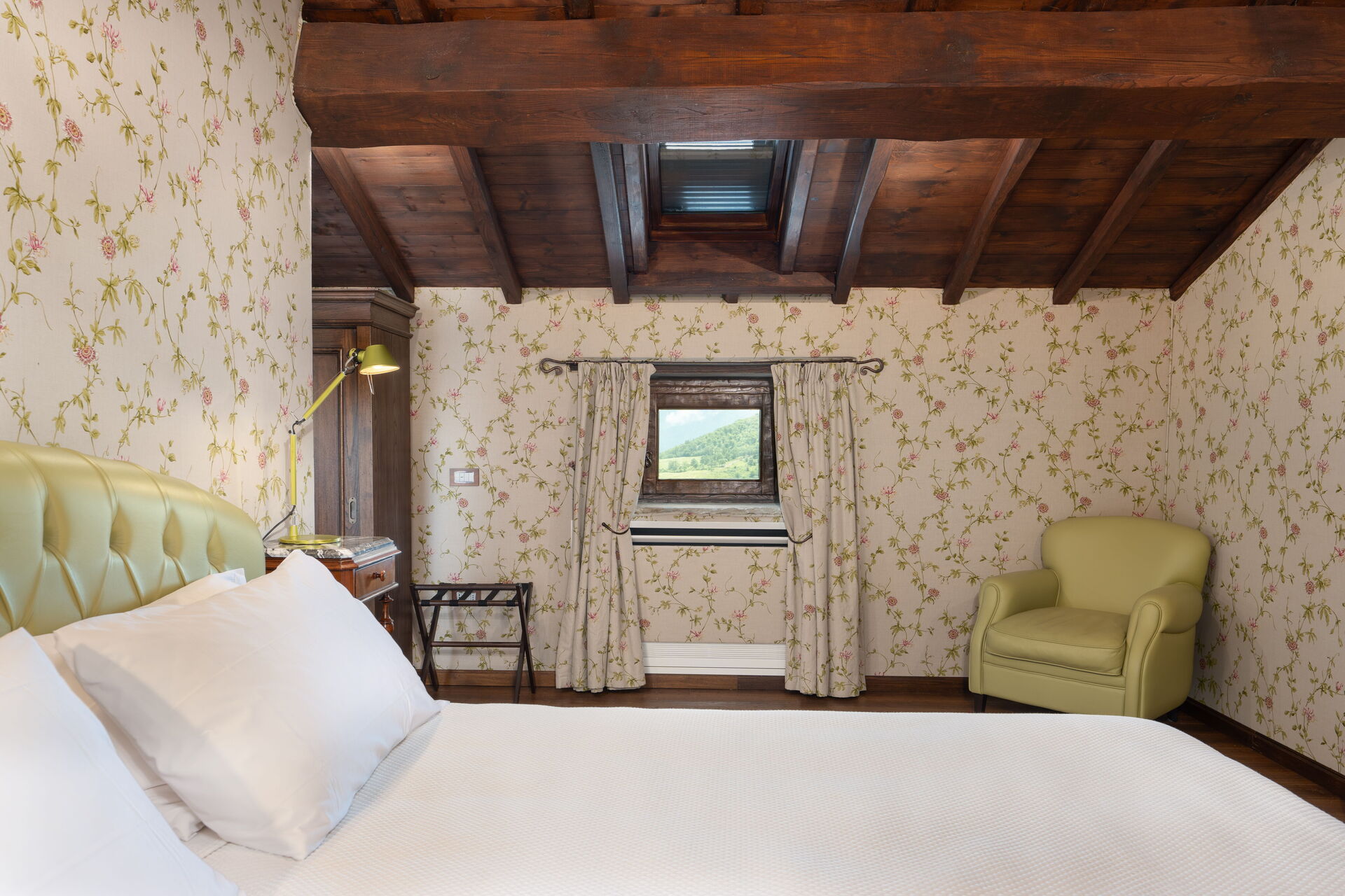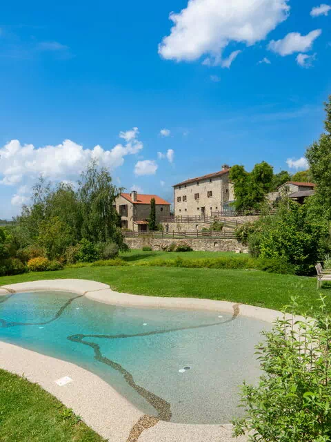 Composta da quattro edifici. Al piano terra del corpo principale troviamo il soggiorno, poltrone e scrittoio, un secondo soggiorno con divani, poltrone e due televisioni, sala da pranzo, due cucine comunicanti una con isola centrale con il caminetto, l'altra in acciaio con piano cottura con fuochi, bagno. Al secondo piano si trovano due camere da letto comunicanti (una con letto matrimoniale e una con due letti singoli) con un bagno in comune, oltre a due camere da letto matrimoniali con il proprio bagno. Un altro edificio ha una cucina con camino al piano terra, un soggiorno con camino, due camere da letto con bagno privato al primo piano (accesso all'esterno). Un ex fienile ospita un soggiorno con divano letto e un armadio con angolo cottura, al primo piano c'è una camera con letto matrimoniale e bagno. La casa più piccola, ma molto graziosa, ha una zona con divano, un bagno e due letti singoli al primo piano.