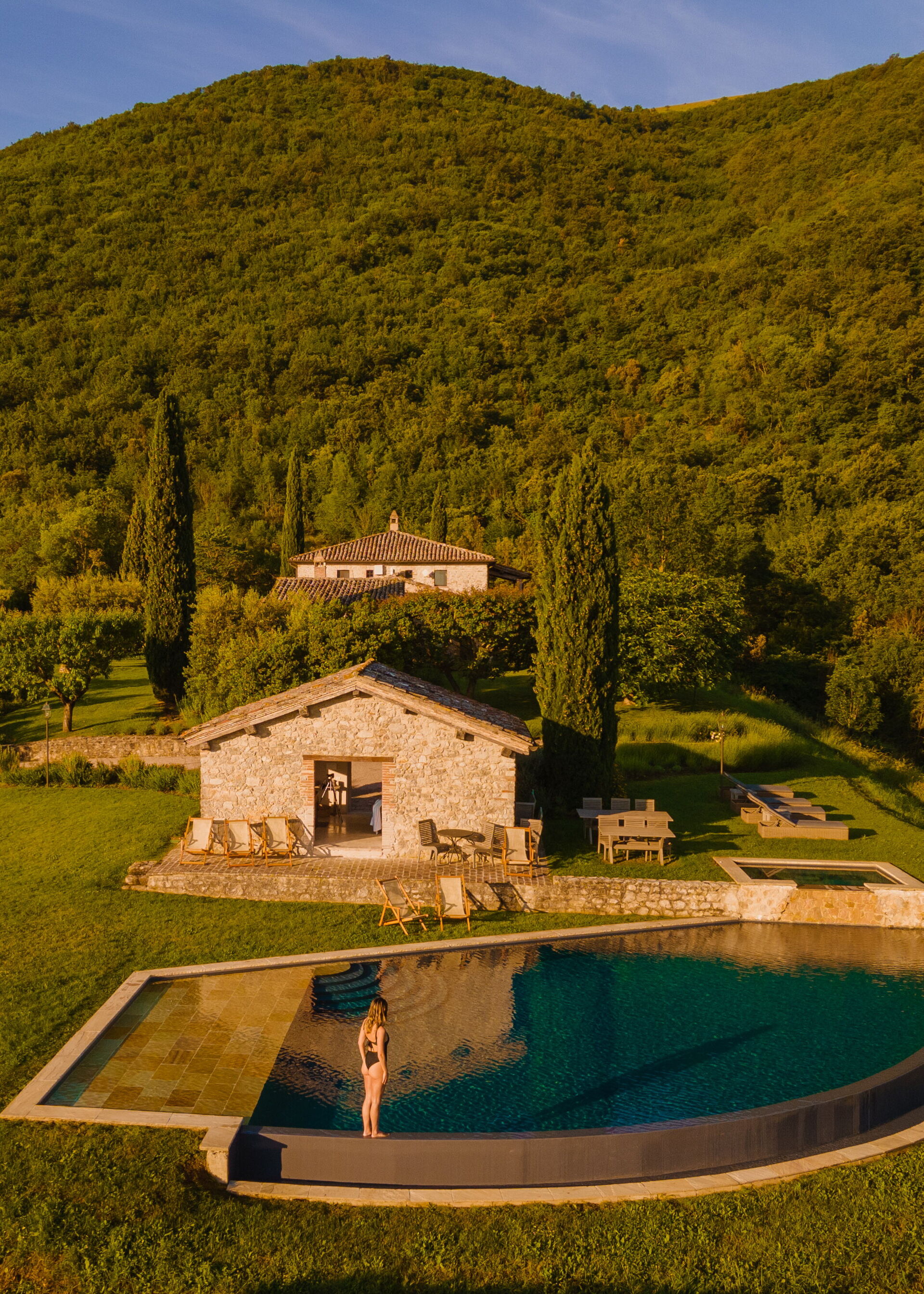 I nostri ospiti possono infatti richiedere vari servizi durante il loro soggiorno come consegne di colazione/pranzo/cena in villa da parte del nostro ristorante Il Caldaro, corsi di cucina, degustazioni di vini, cene in villa con chef e cameriere, massaggi e trattamenti estetici in villa, lezioni di pilates o yoga, wine tours, noleggio mountain bike (anche elettrica) per tour della Tenuta, giri turistici con guida nelle più belle città umbre tutte nell'arco di 20-30 minuti dalla Tenuta. Invio in allegato la brochure di servizi e attività del 2023 per darle un’idea di ciò che possiamo organizzare.