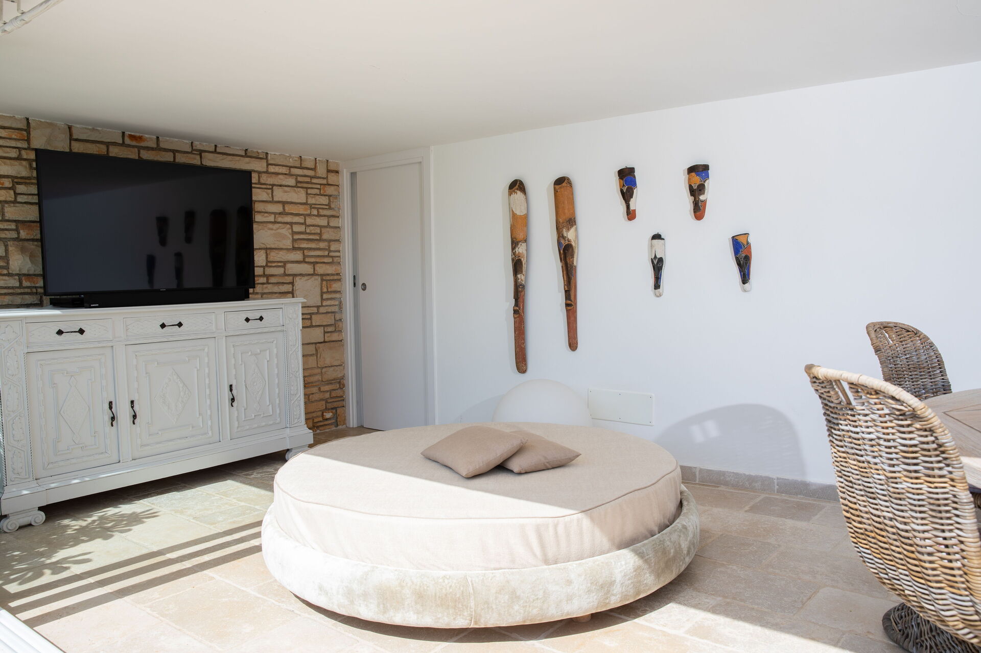 The sleeping area with objects and paintings in ethnic style, precious furnishings, comfortable and large queen size beds are also highly sought after. The bedrooms are also equipped with wardrobes or wardrobes and air conditioning.