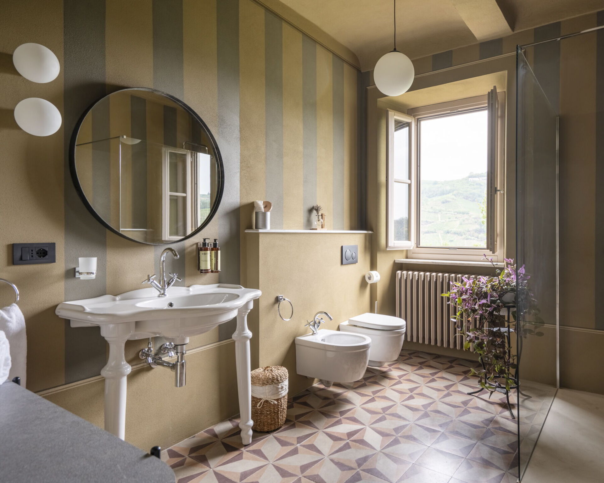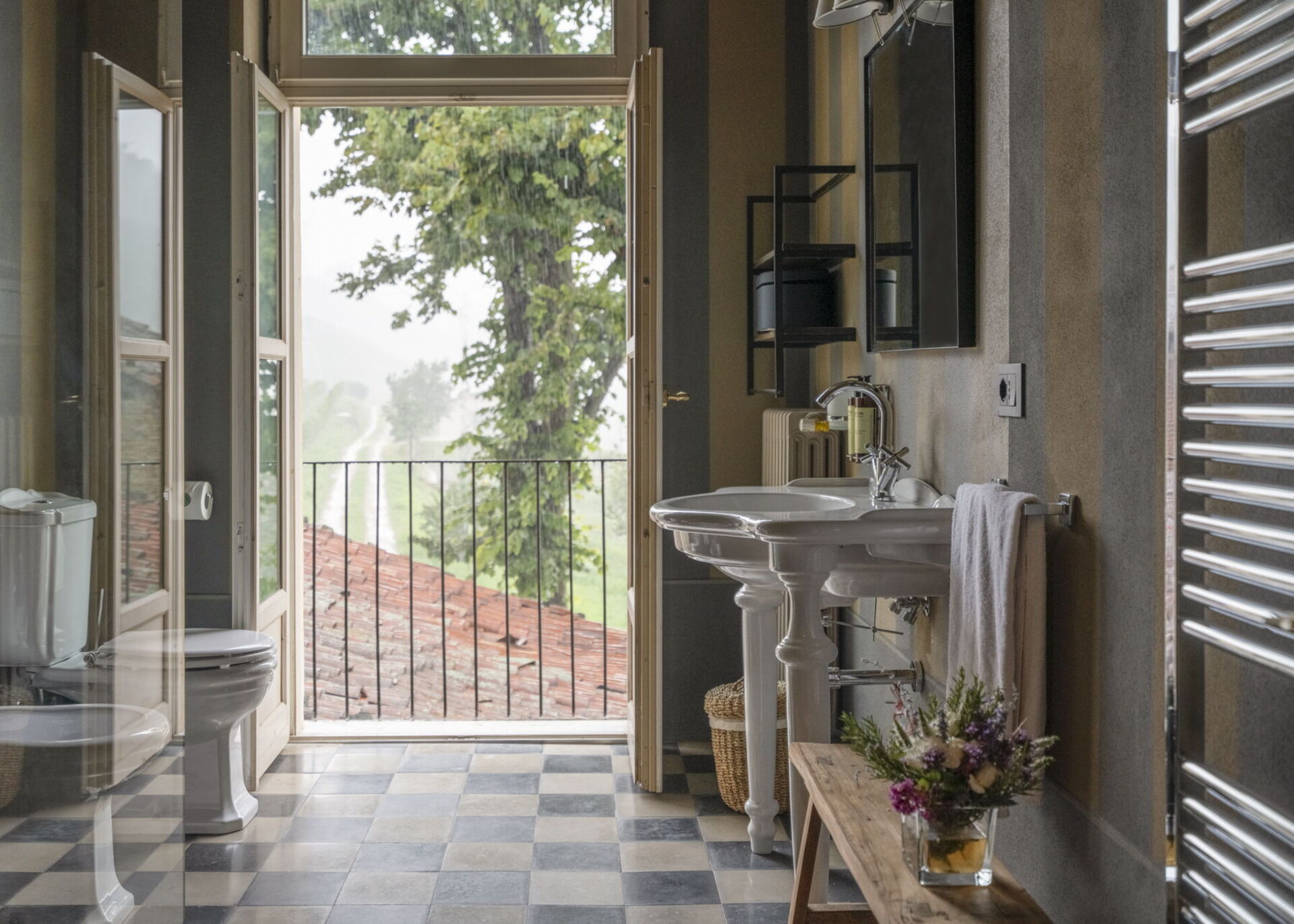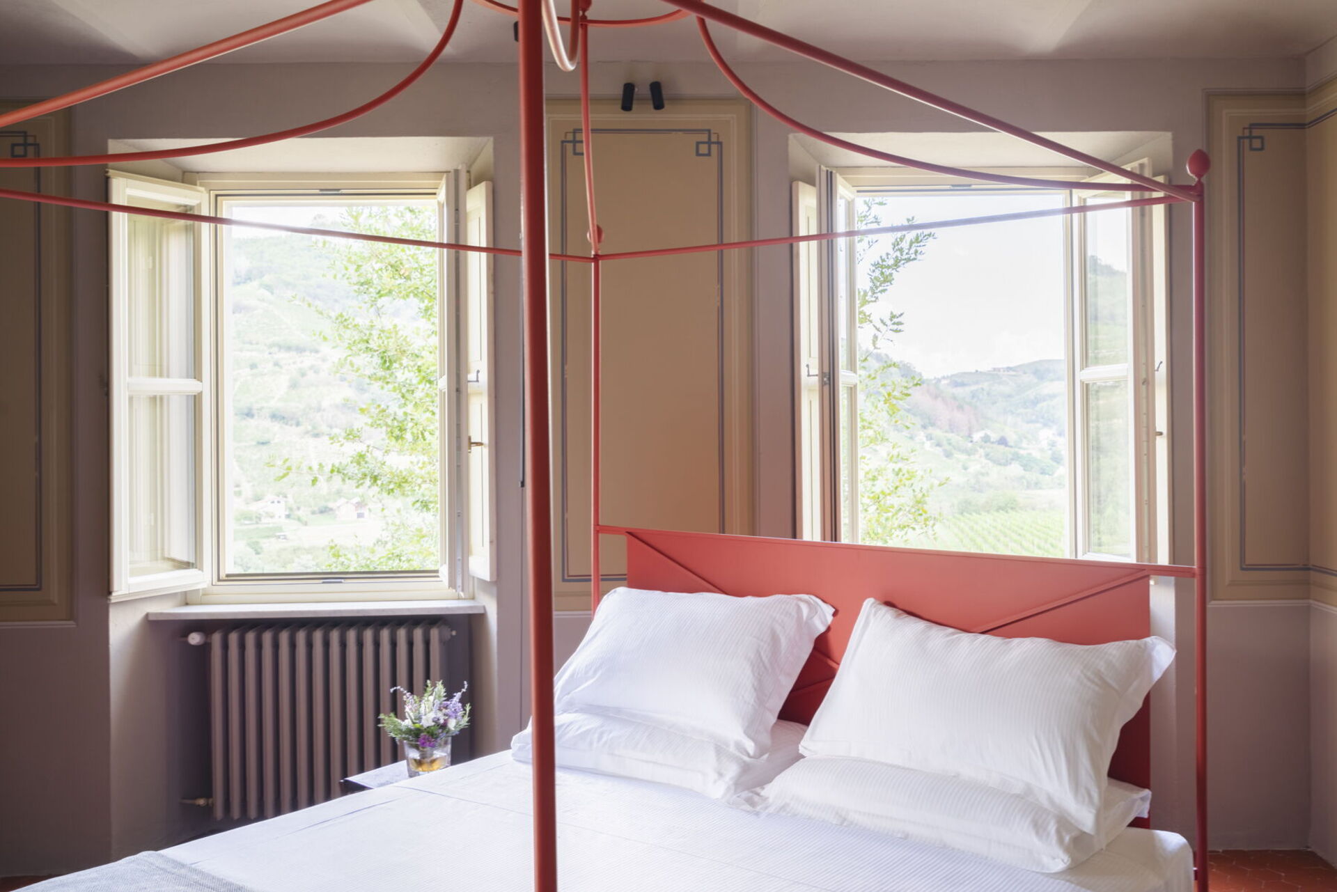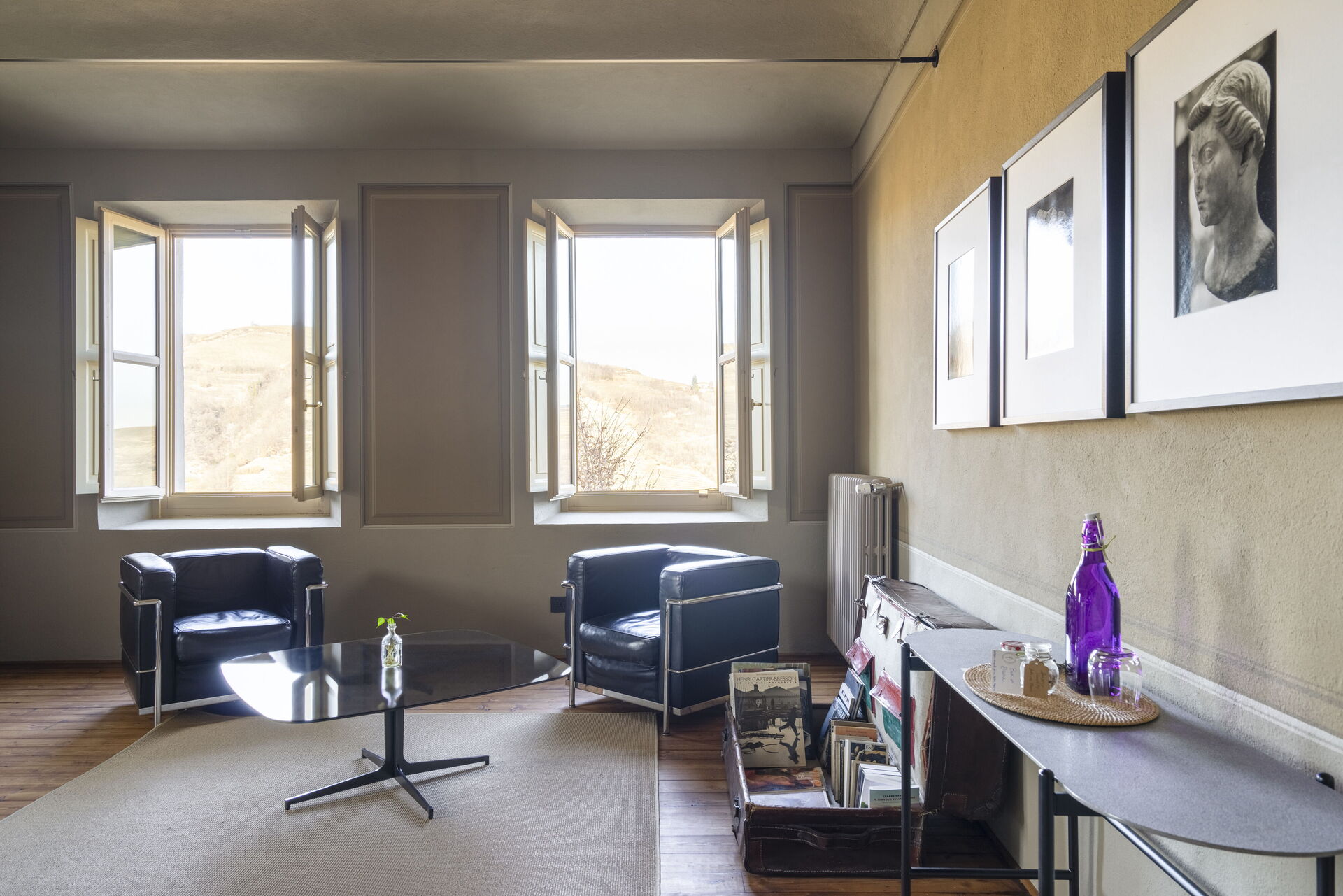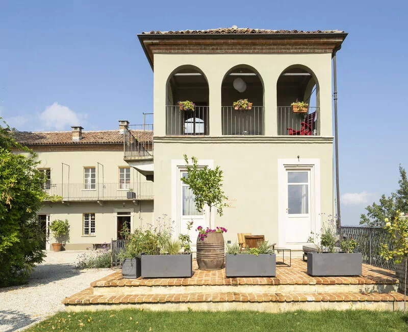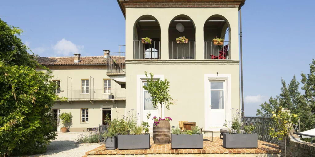 The structure houses 6 exclusive suites, each one different, enhanced by enchanting views over the gentle hills of the Langhe. The rooms, refined and cosy, offer a stay under the banner of authenticity, refinement and charm. The communal areas, designed for relaxation and conviviality, include a large historic courtyard, a swimming pool surrounded by greenery, a Technogym-equipped gym, charming wine cellars and cosy lounges for events, reading or moments of leisure.