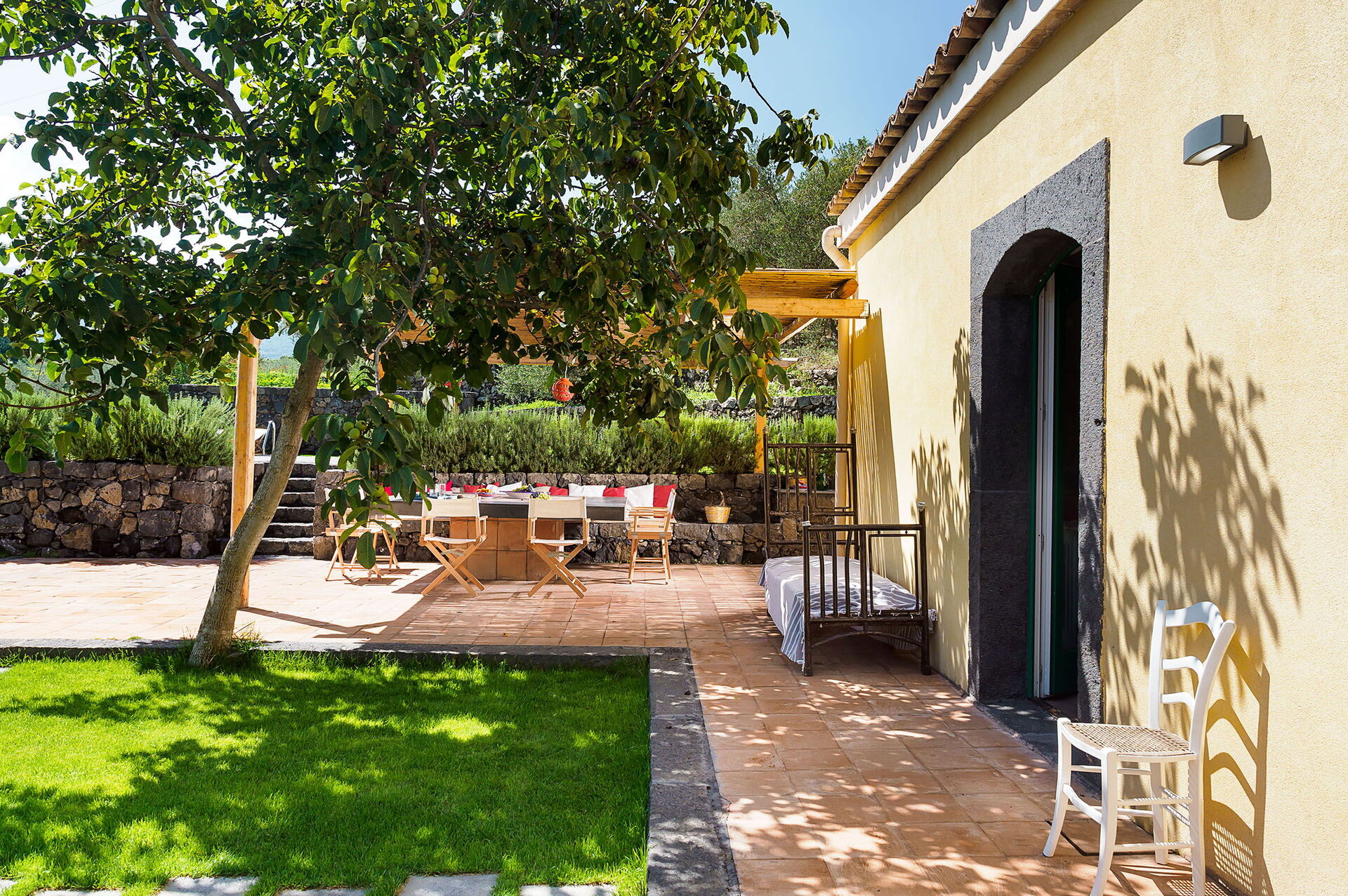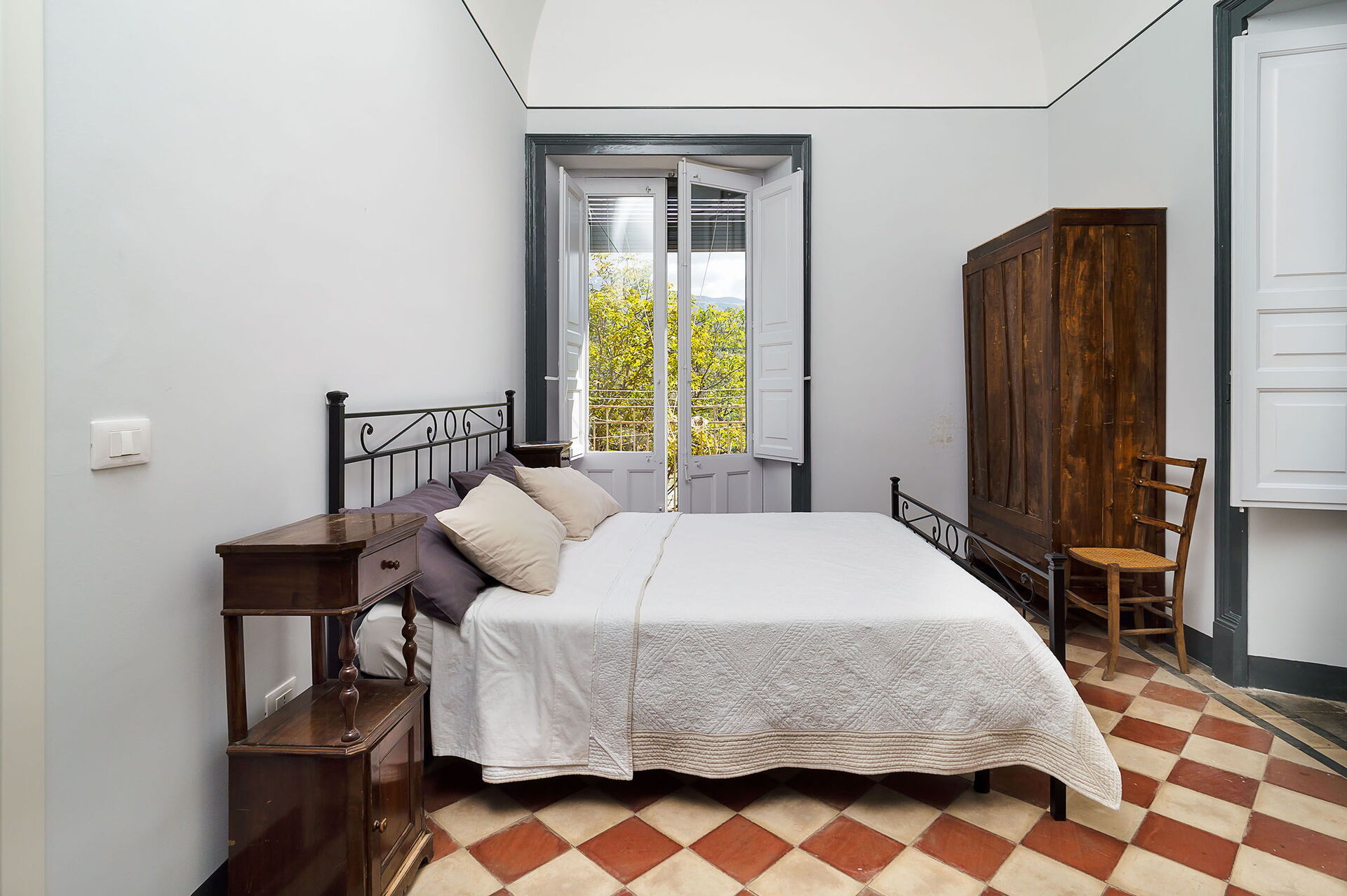 Villa Tranquilla is an ancient country residence with a private heated swimming pool (24°) (4x7 m, depth 1.50 m), surrounded by a well-kept garden with dry stone walls and terraces, located in the surroundings of Randazzo, a characteristic village on the northern slope of the Etna volcano in Sicily. After a recent and careful restoration, the villa has been restored to its original charm and today offers an authentic atmosphere of the Sicilian homes of the past with modern comforts. The house is divided into the main house, accessible via an external staircase, and an outbuilding. Excellent base for exploring Etna, with its extraordinary natural scenery and picturesque foothill villages rich in traditions and food and wine. Tourist destinations such as Taormina, Catania and Syracuse are also easily reachable. Possibility to book only 6 sleeps at a reduced price, closing the outbuilding.