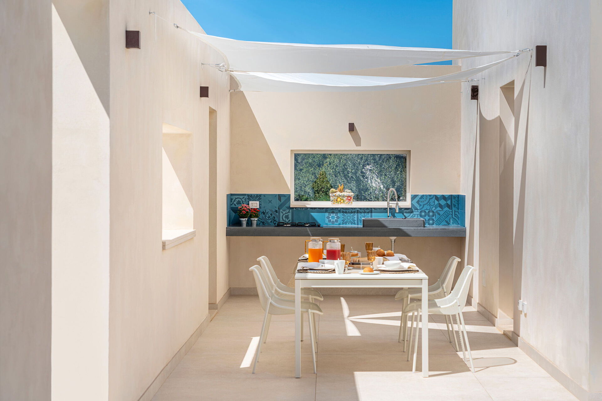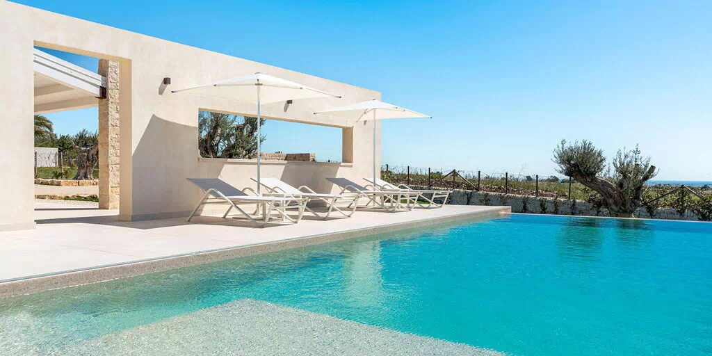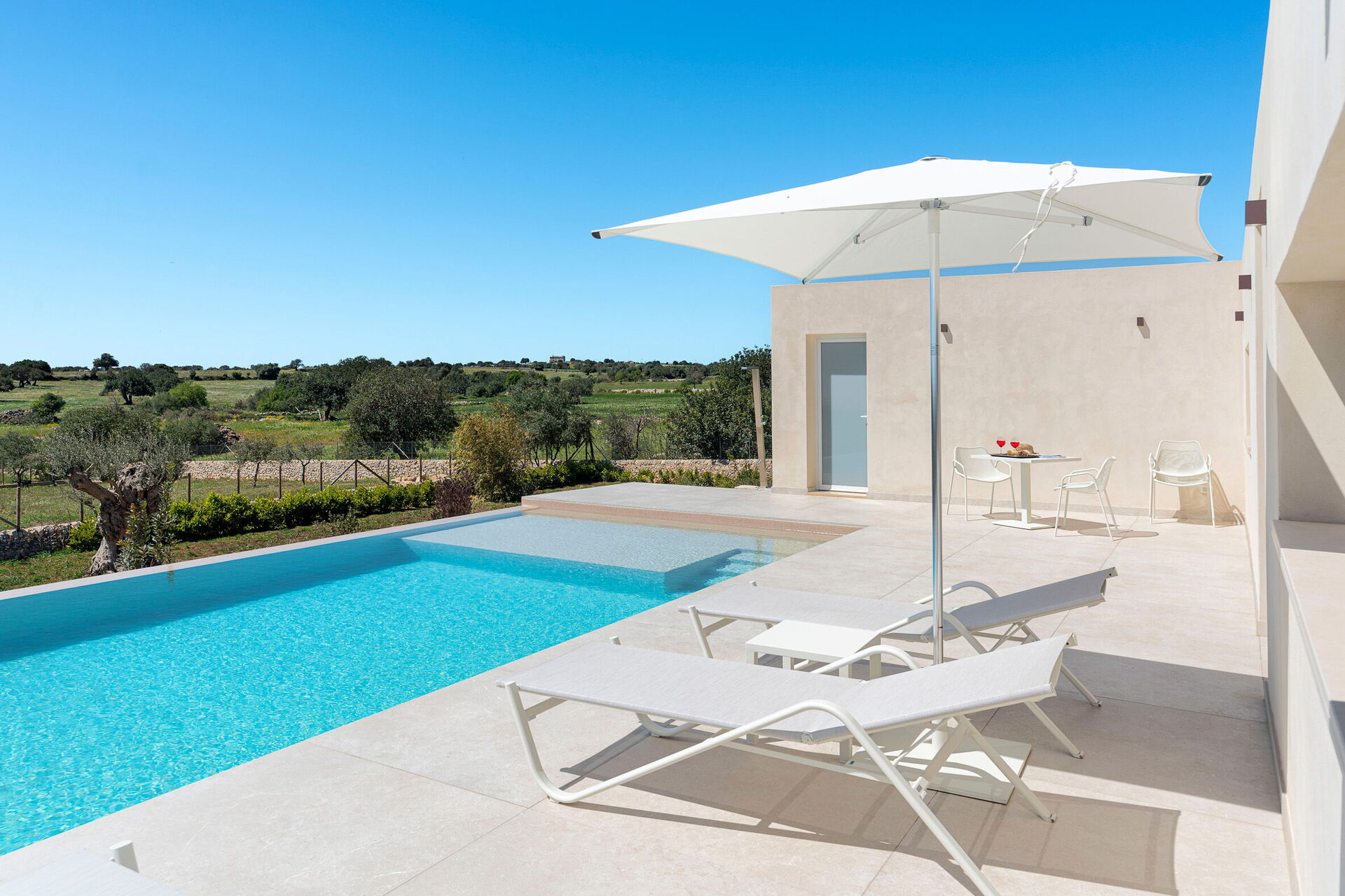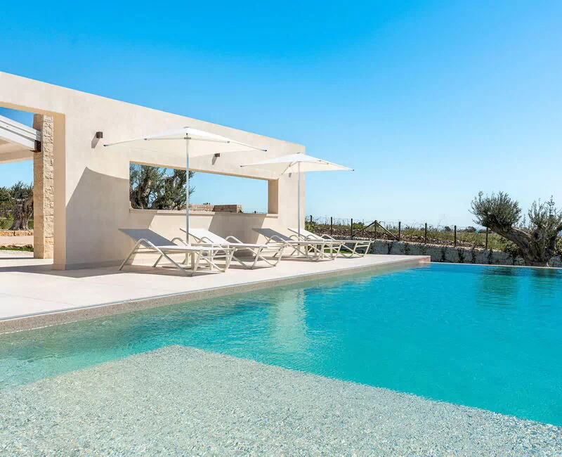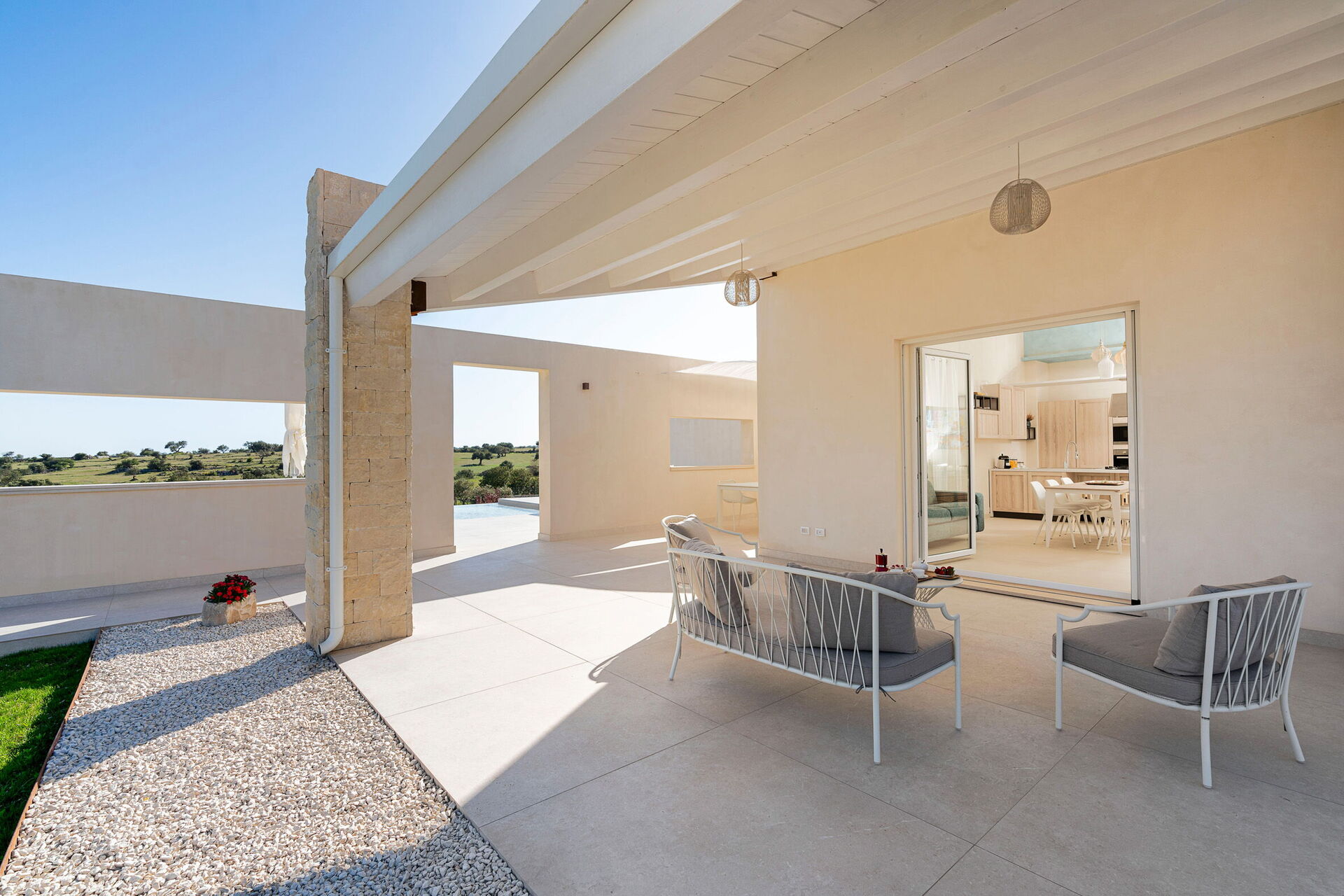 Villa Argento is a splendid residence with a salt infinity pool (5x12 m, depth 0.40-1.40 m) with panoramic views, located near Rosolini, in south-eastern Sicily. The villa offers large terraces equipped for relaxation and with an outdoor kitchen for outdoor dining with a view of a landscape characterized by olive trees, carob trees and typical dry stone walls. The villa is located a short distance from the main baroque cities of the Val di Noto, such as Modica, Ragusa-Ibla, Scicli and Noto. Furthermore, the proximity to the splendid beaches of Pozzallo, the Vendicari nature reserve and Portopalo di Capo Passero offers the possibility of exploring both the cultural heritage and the natural beauty of the area.