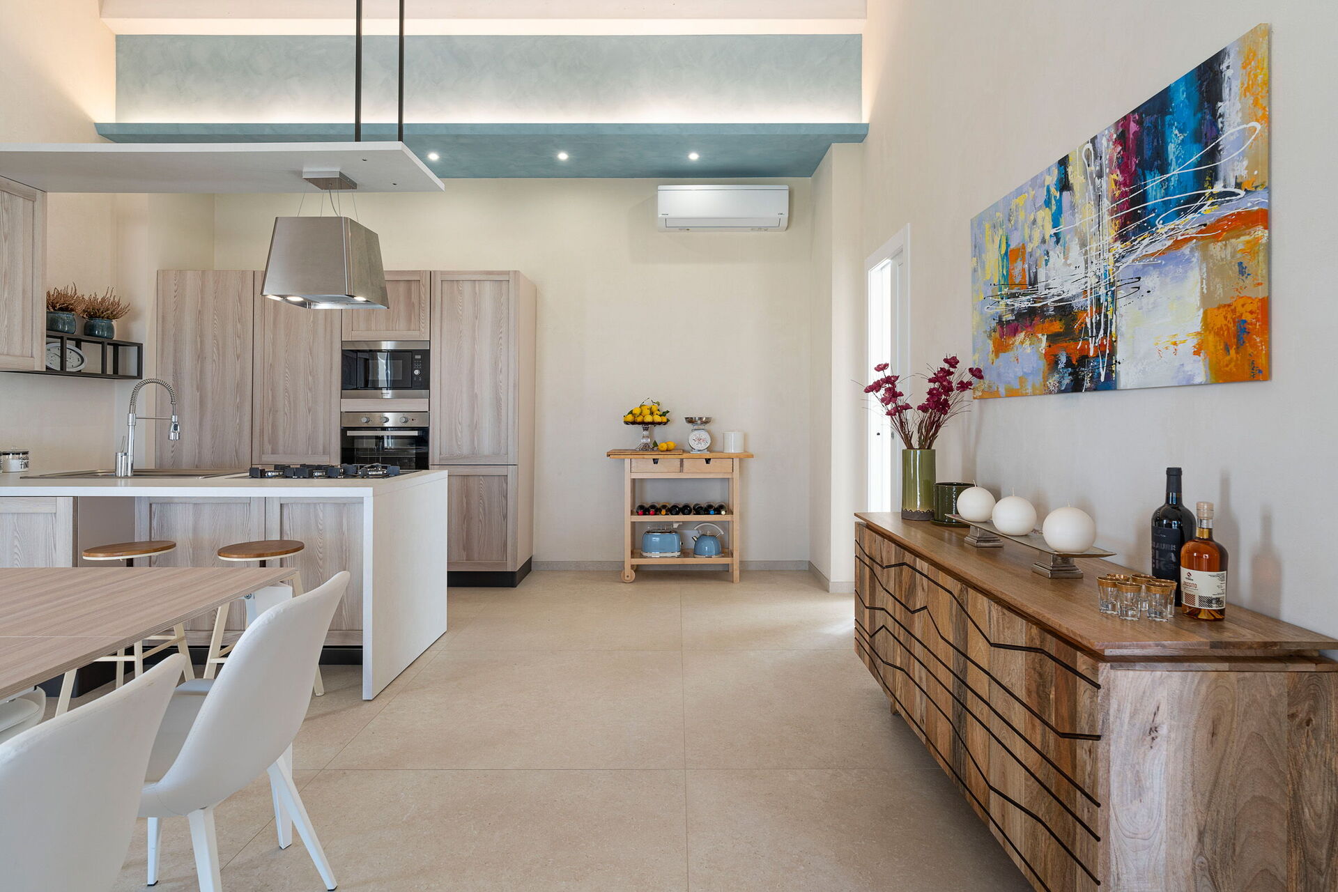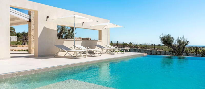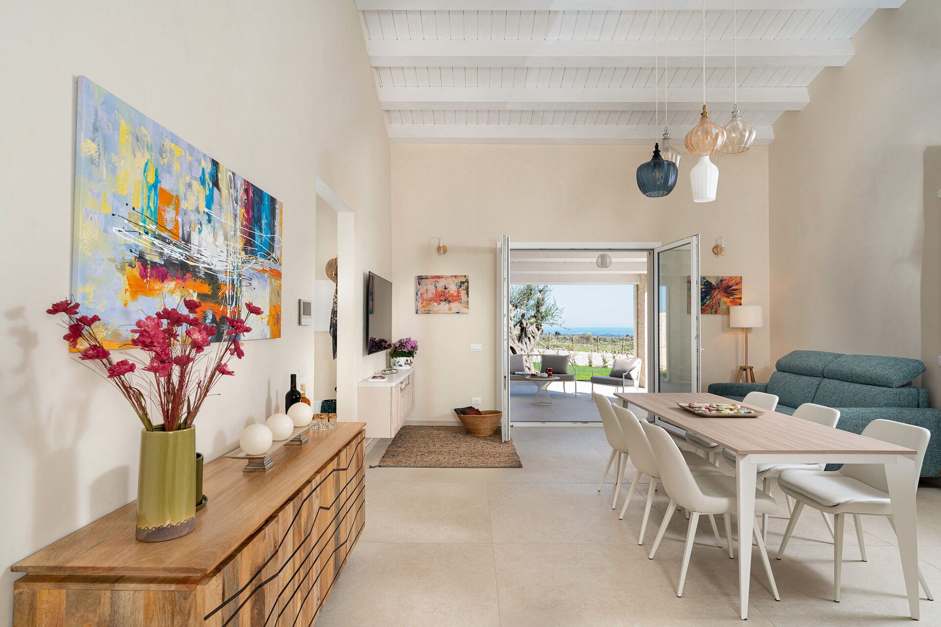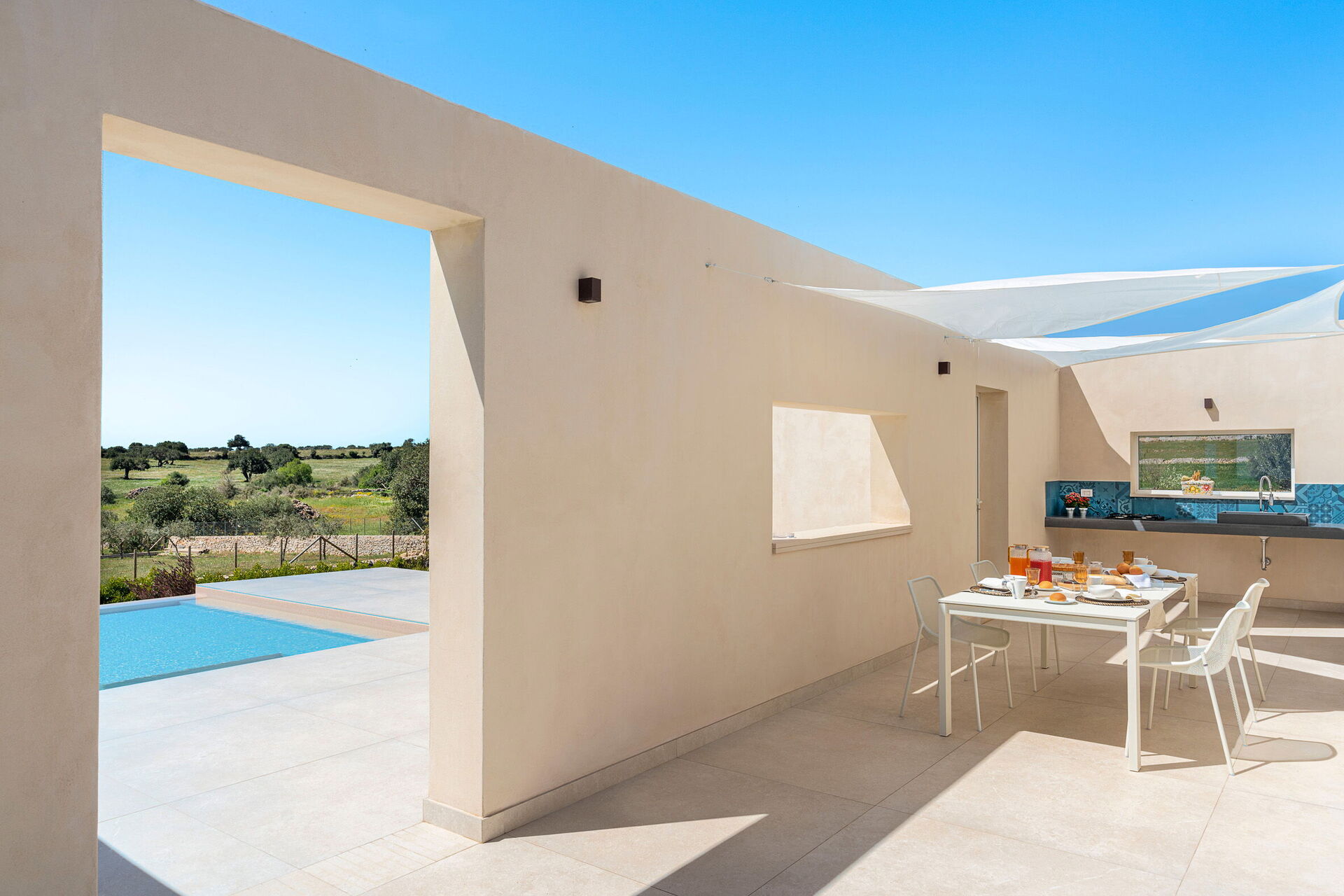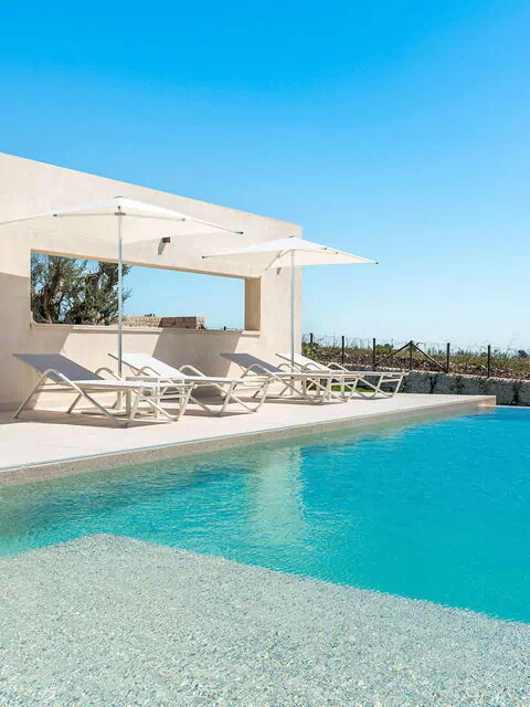 Villa Argento is a splendid residence with a salt infinity pool (5x12 m, depth 0.40-1.40 m) with panoramic views, located near Rosolini, in south-eastern Sicily. The villa offers large terraces equipped for relaxation and with an outdoor kitchen for outdoor dining with a view of a landscape characterized by olive trees, carob trees and typical dry stone walls. The villa is located a short distance from the main baroque cities of the Val di Noto, such as Modica, Ragusa-Ibla, Scicli and Noto. Furthermore, the proximity to the splendid beaches of Pozzallo, the Vendicari nature reserve and Portopalo di Capo Passero offers the possibility of exploring both the cultural heritage and the natural beauty of the area.